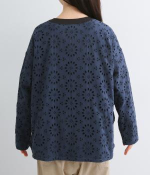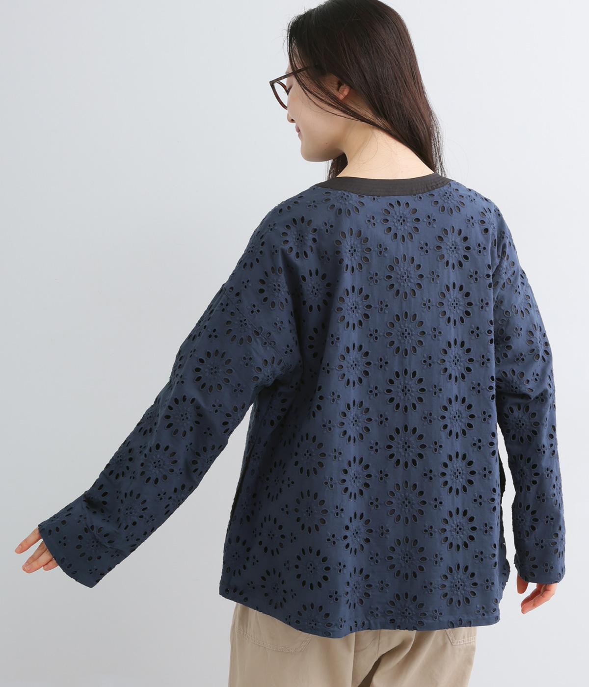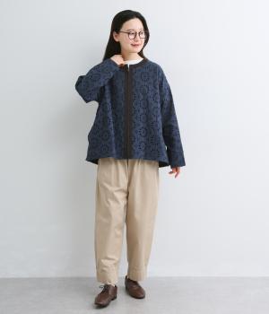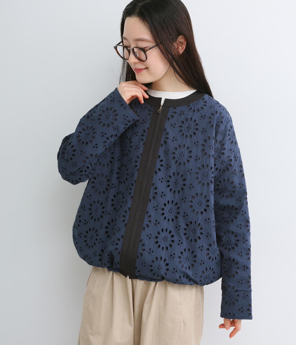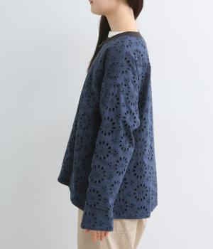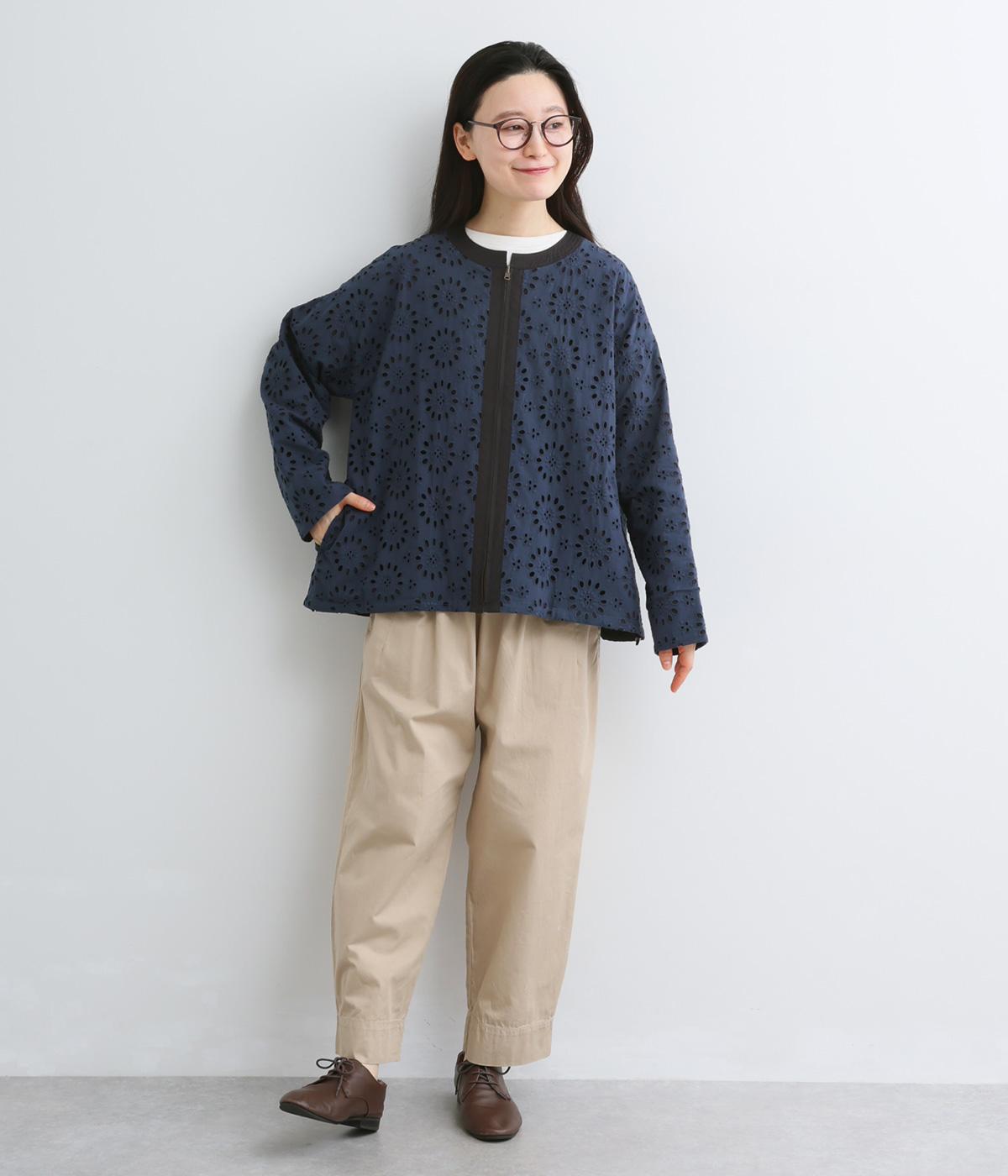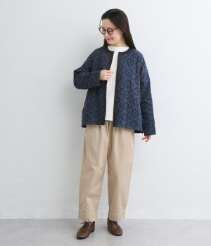 表は綿素材にカットワーク刺しゅうを。裏はコットンポリエステルのエステネージュを採用。品のいい光沢があり、UVカット・接触冷感・抗菌防臭・防シワなど高機能素材になっています。