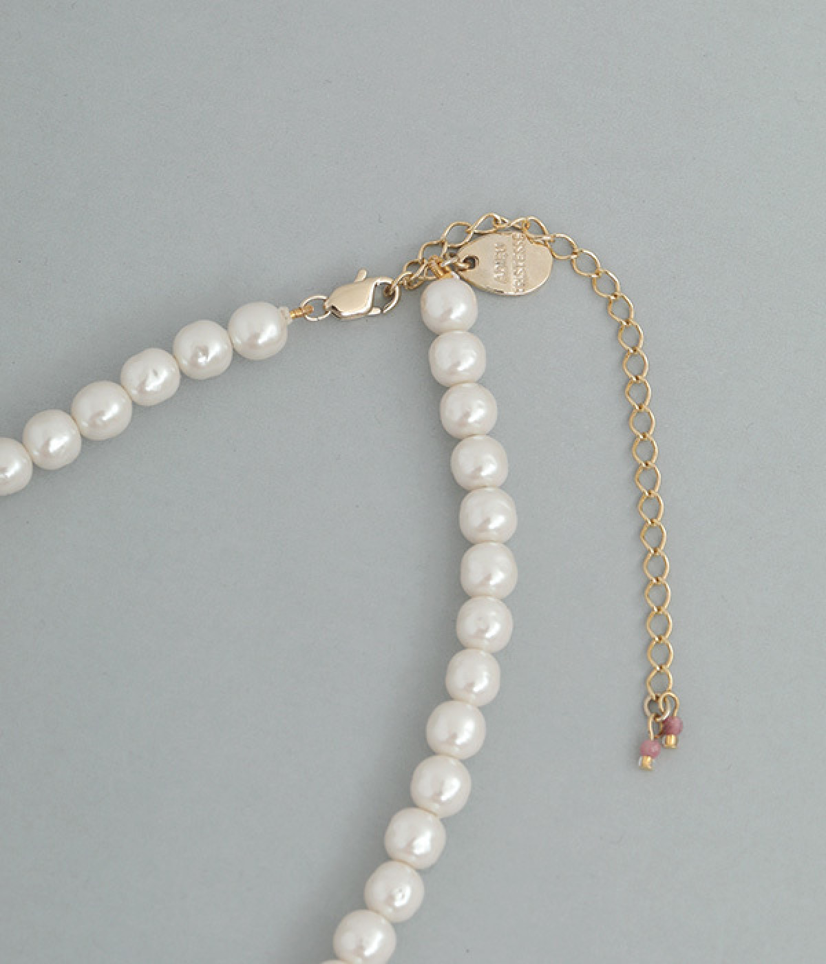 エンドパーツにはピンクトルマリンを二粒あしらって
