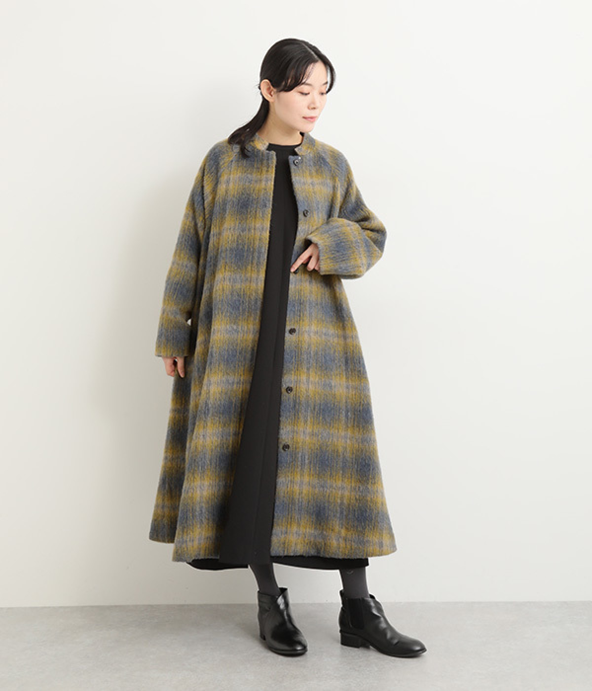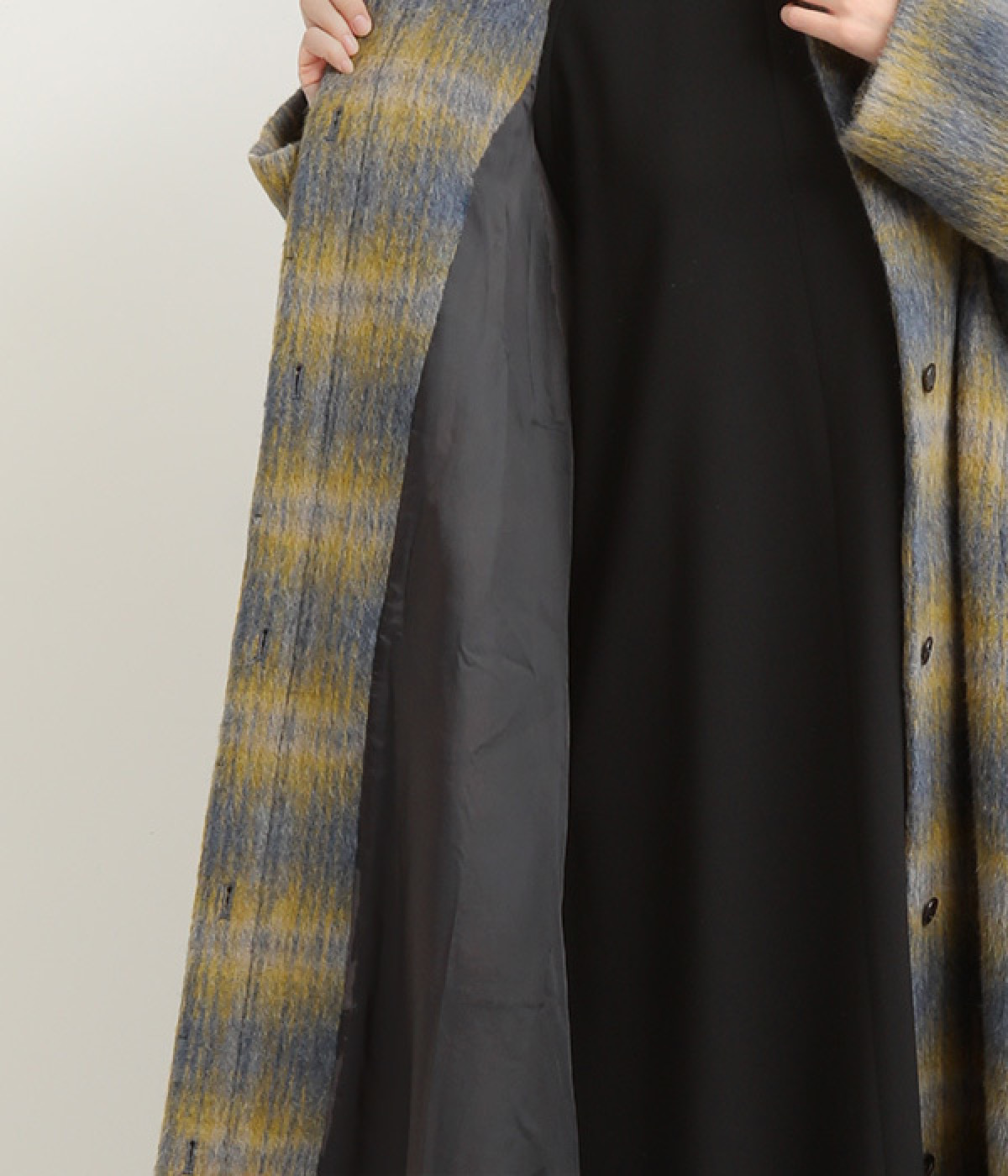 イエロー系:イタリア、BALLI社のエアリーでソフトなシャギーチェックを使用