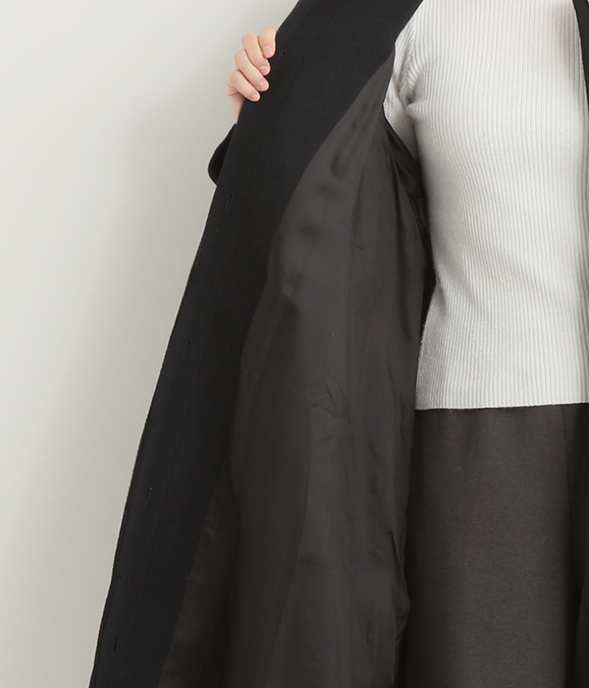 ポリエステル39% アクリル26% 毛22% アルパカ9% レーヨン2% ナイロン2% (裏地)キュプラ100%