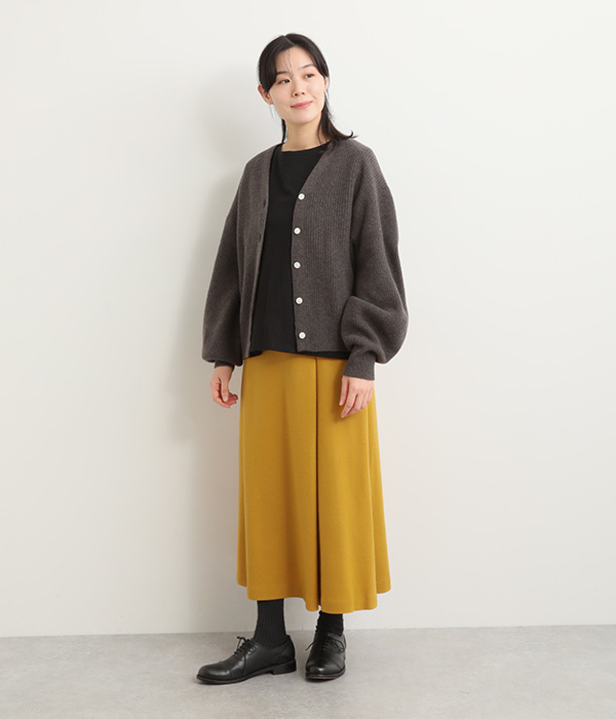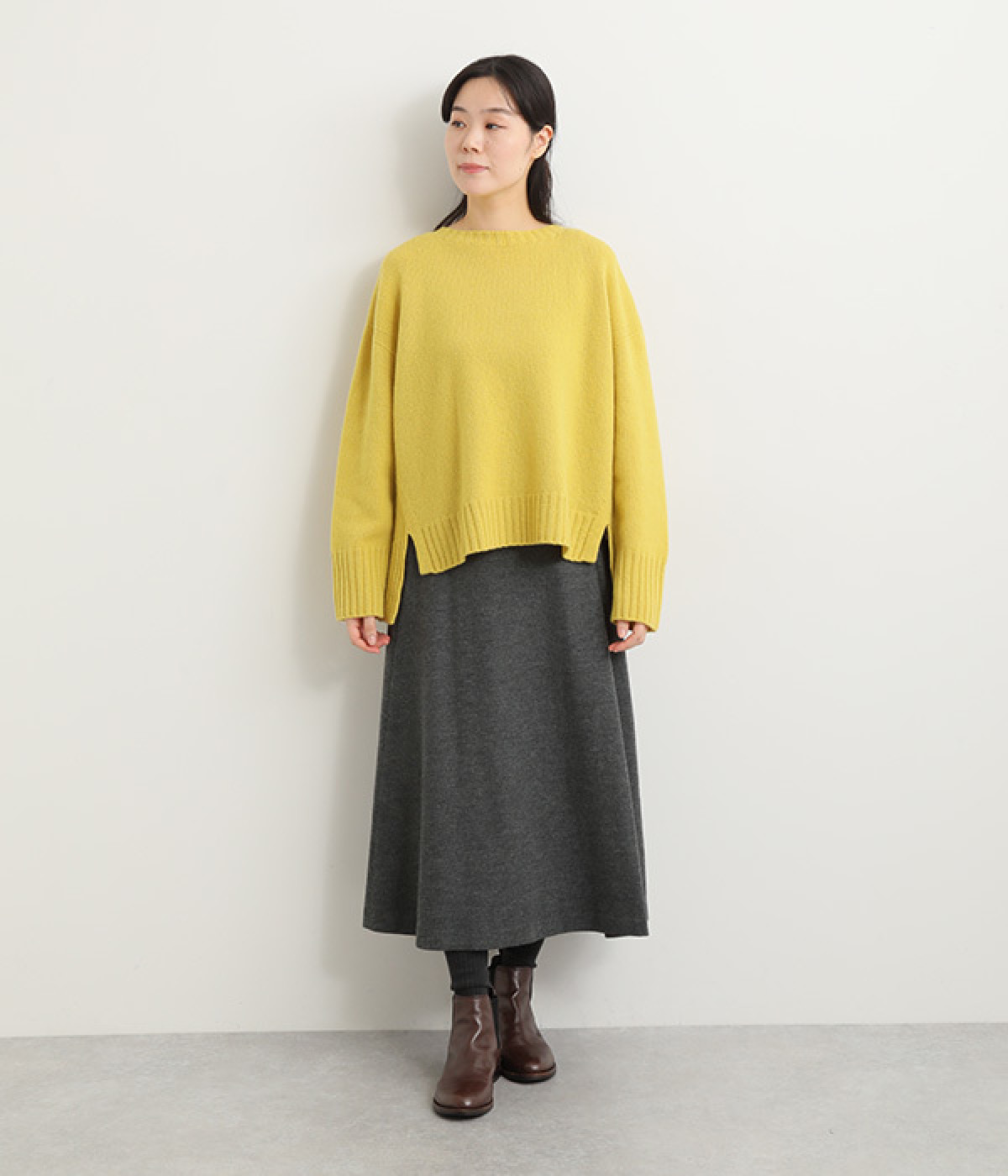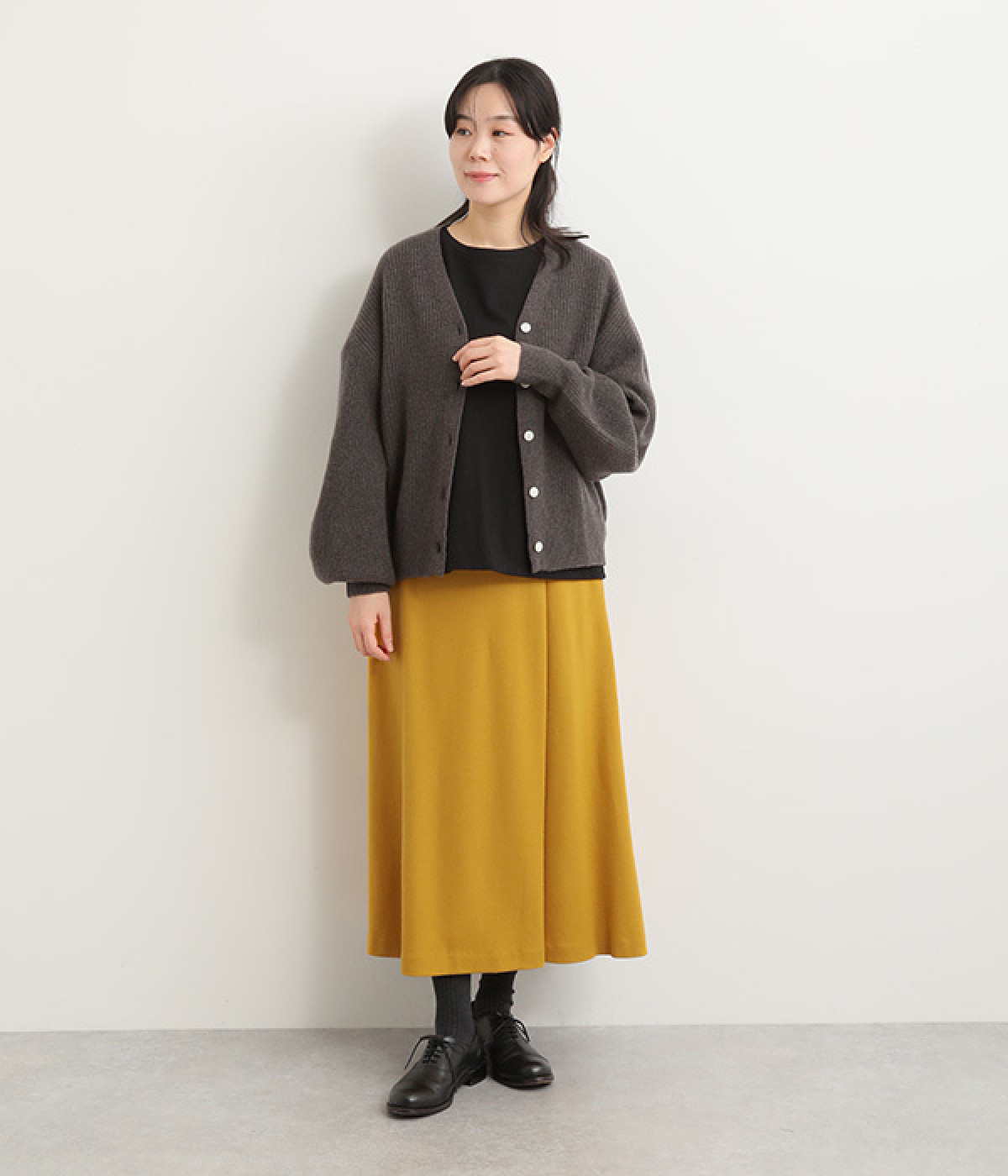 ゆるやかなフレアラインが大人の装いにぴったり