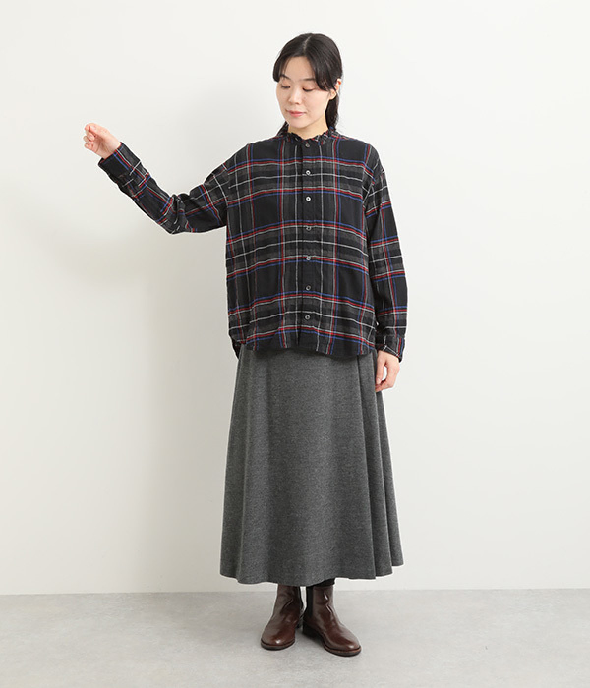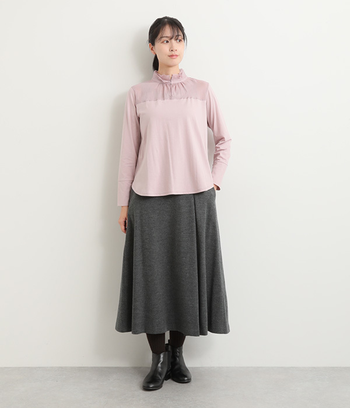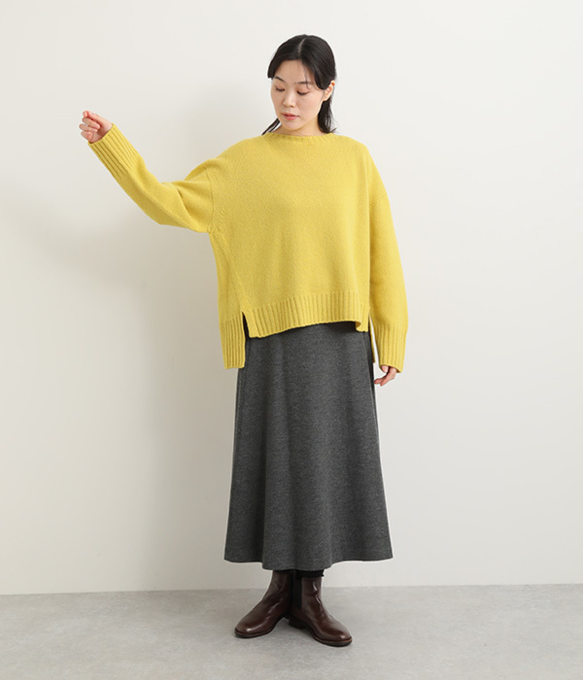 ゆるやかなフレアラインが大人の装いにぴったり