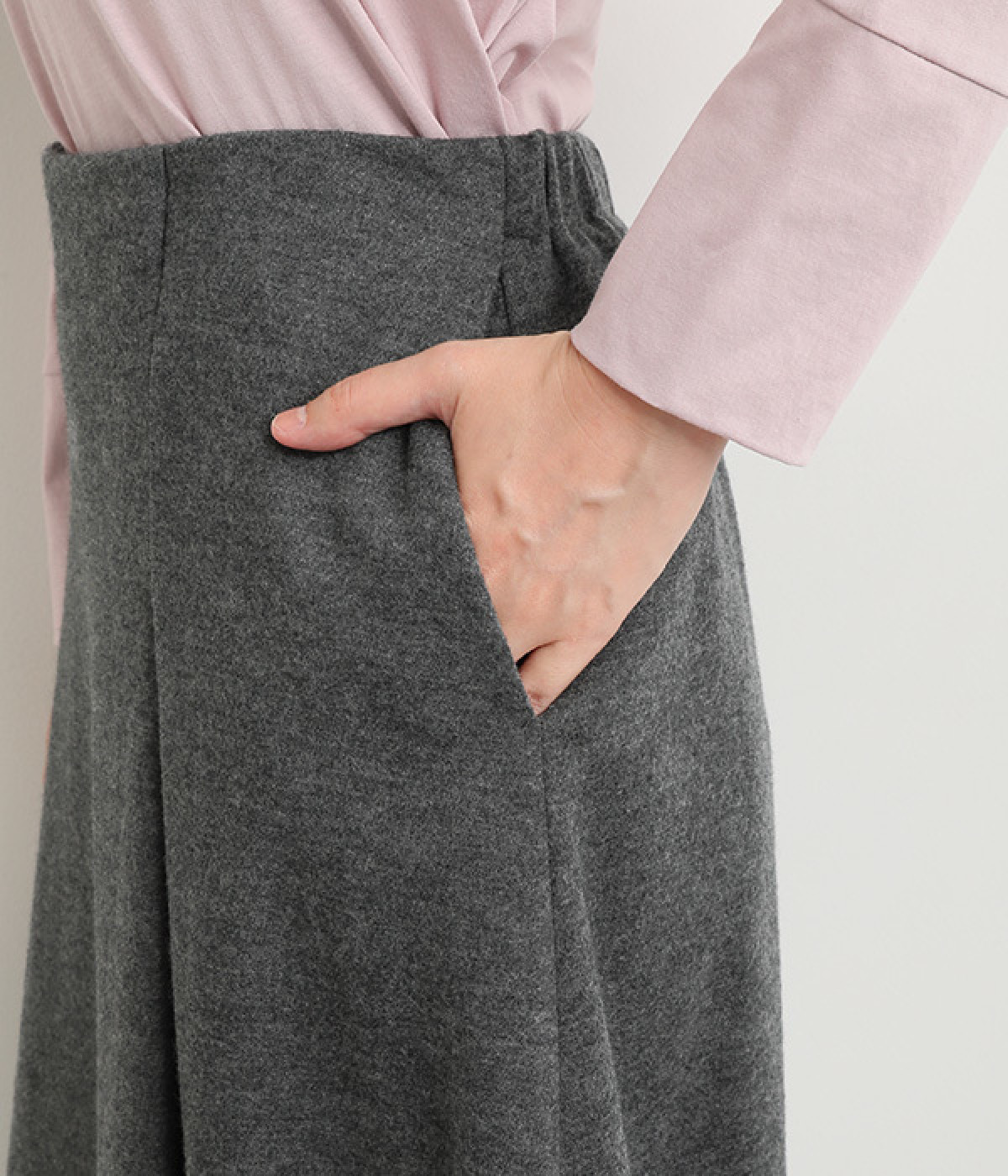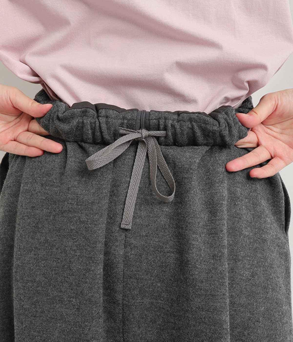 後ろのみウエストゴムを入れ、前はきれいめな佇まい