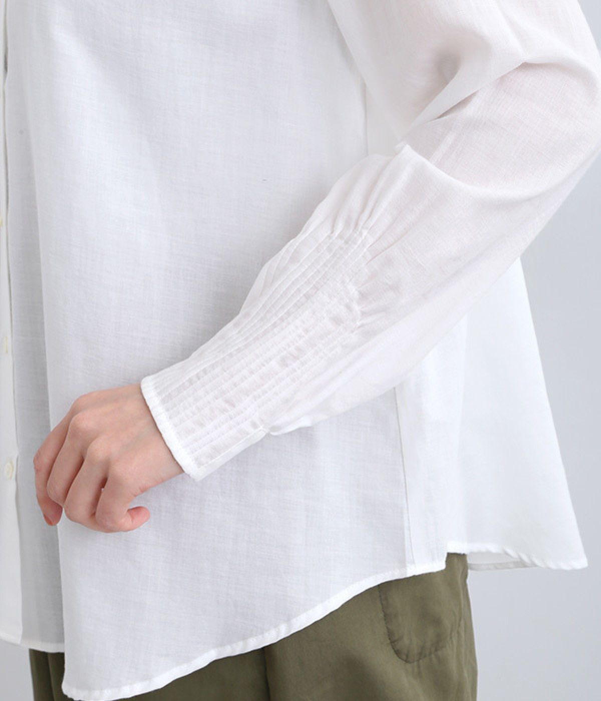 袖口は細かくダーツを入れてメリハリよく