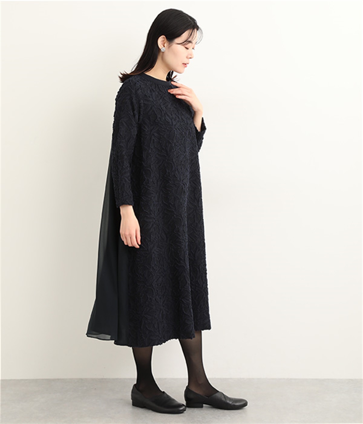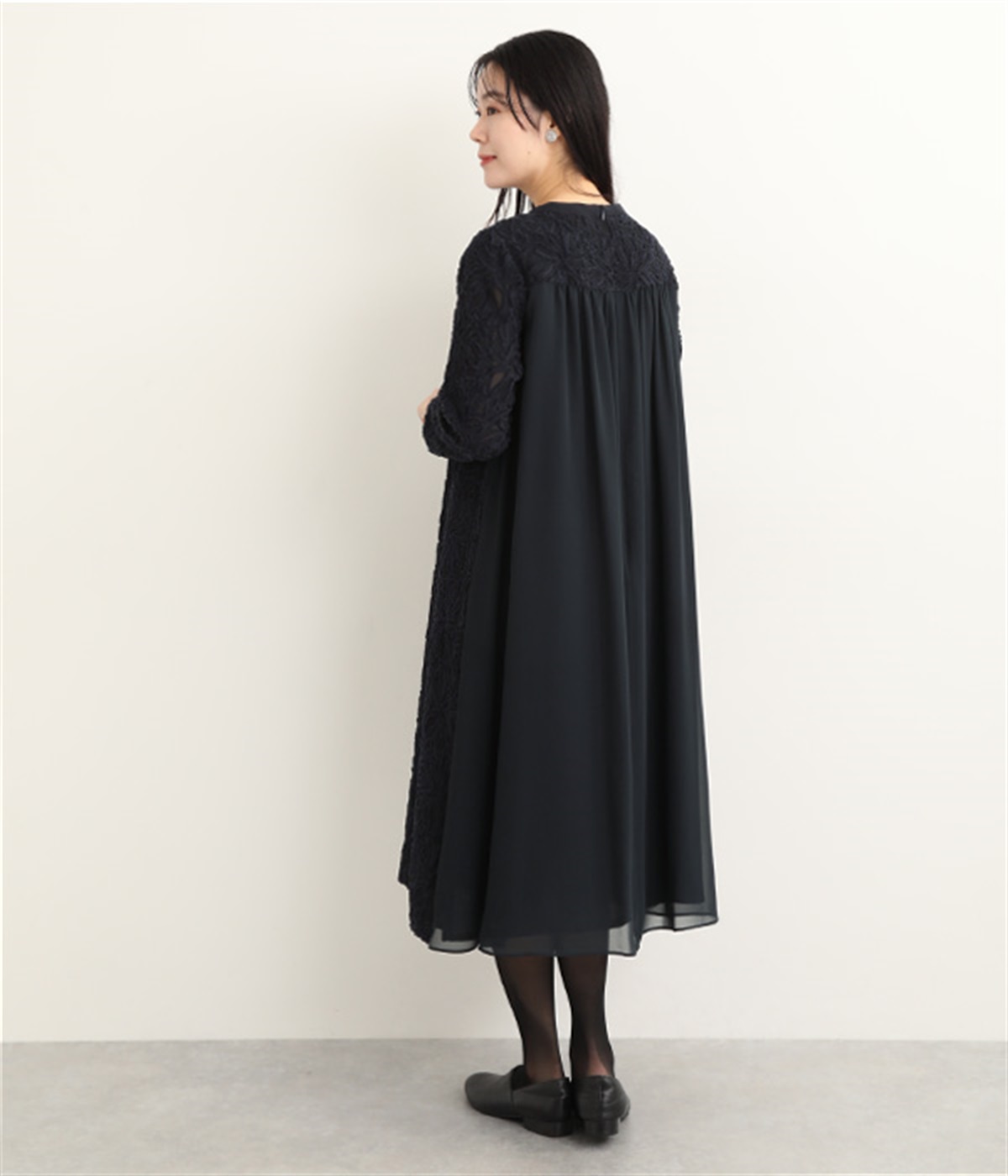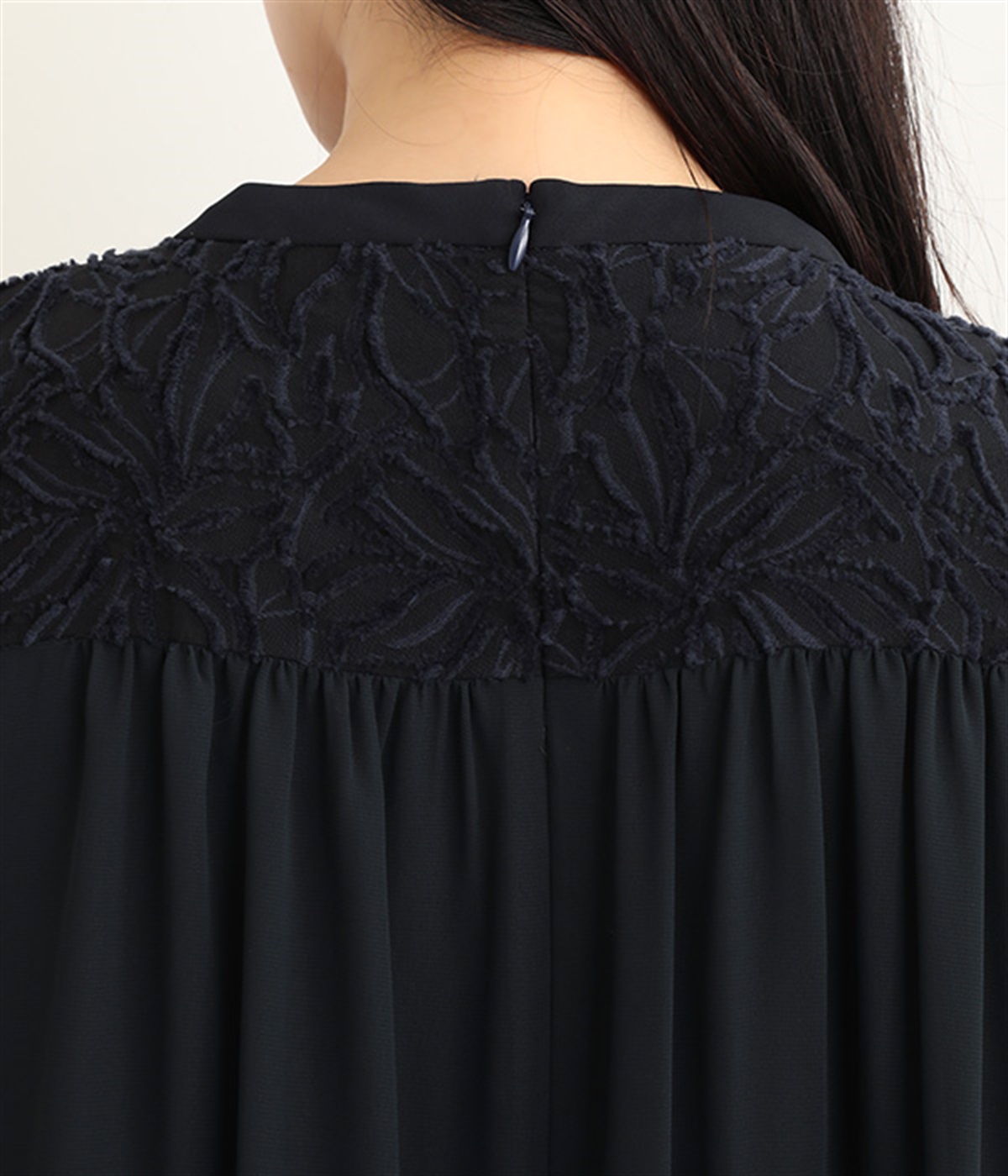 バックヨーク下はシアーシフォンで軽やかさをプラス