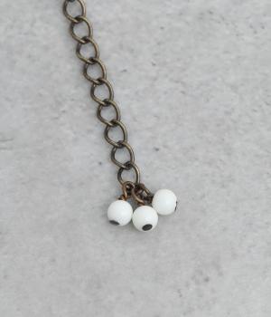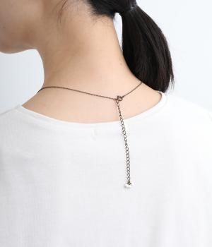 チェーンにはアンティーク調の真鍮を使用。小さめのパーツで重さを感じにくいのもうれしいポイントです。光沢をおさえたマットな質感が、大人らしい雰囲気に。