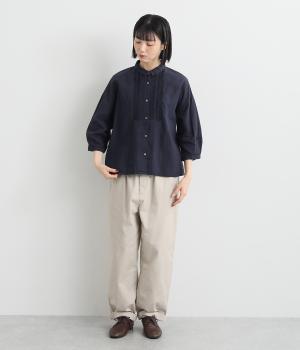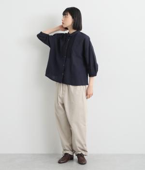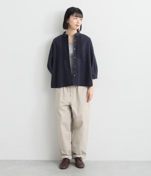 コットンのやわらかな風合いにリネンの清涼感を加えました。ネップの見えるナチュラルな佇まいが大人の装いを品よく仕上げてくれます。