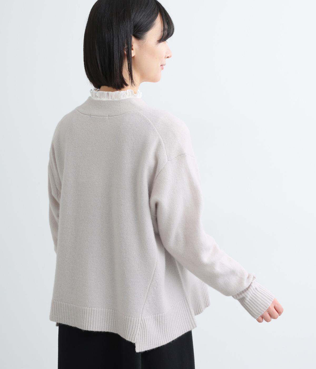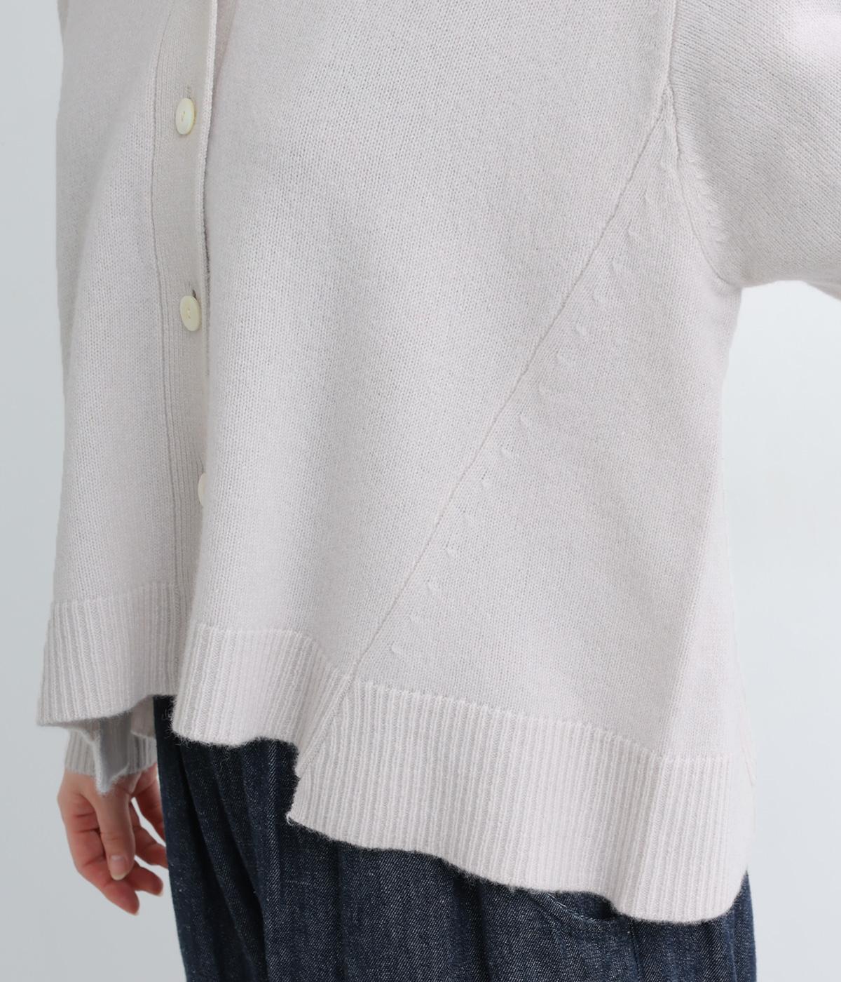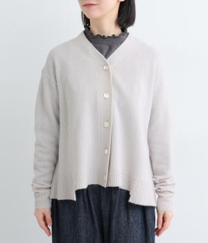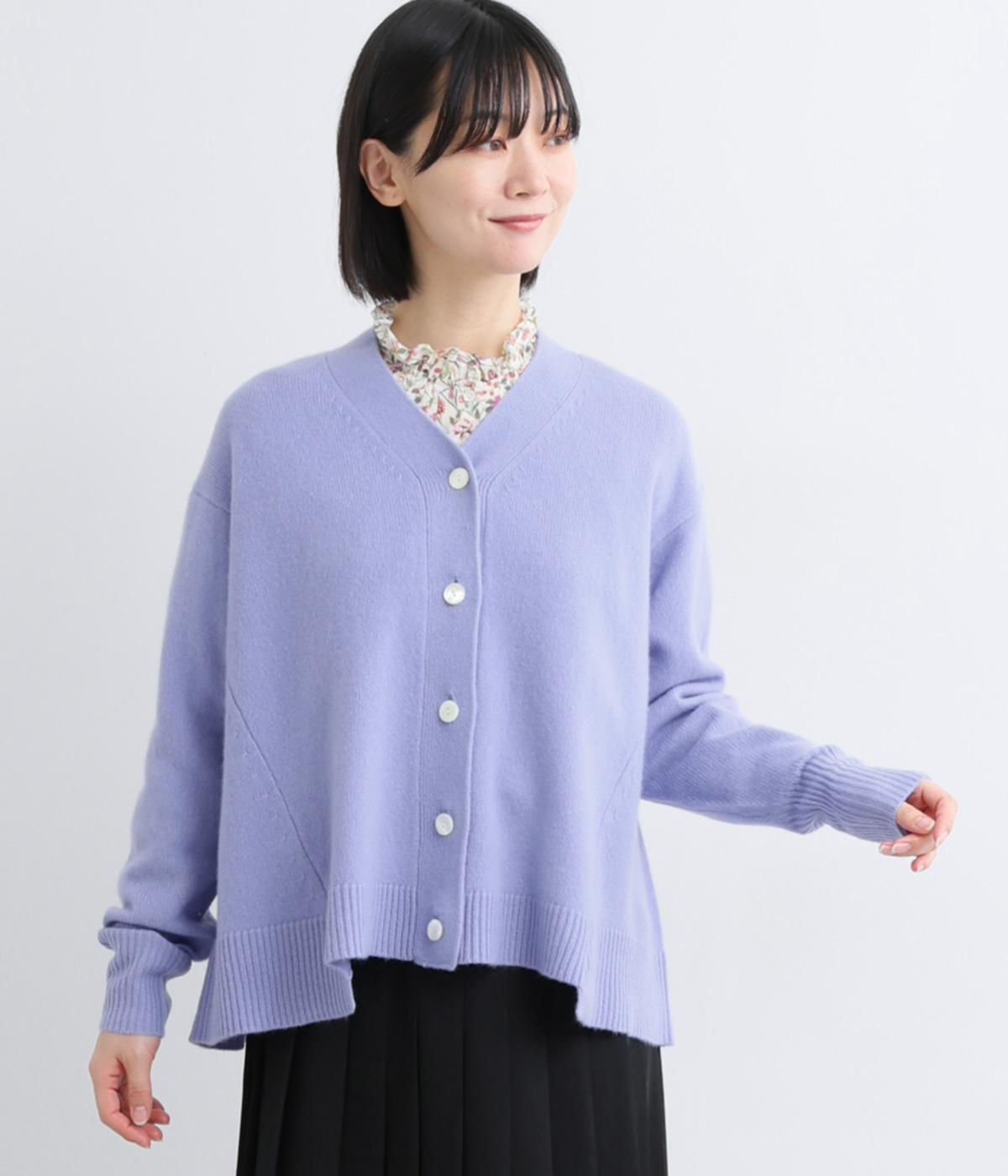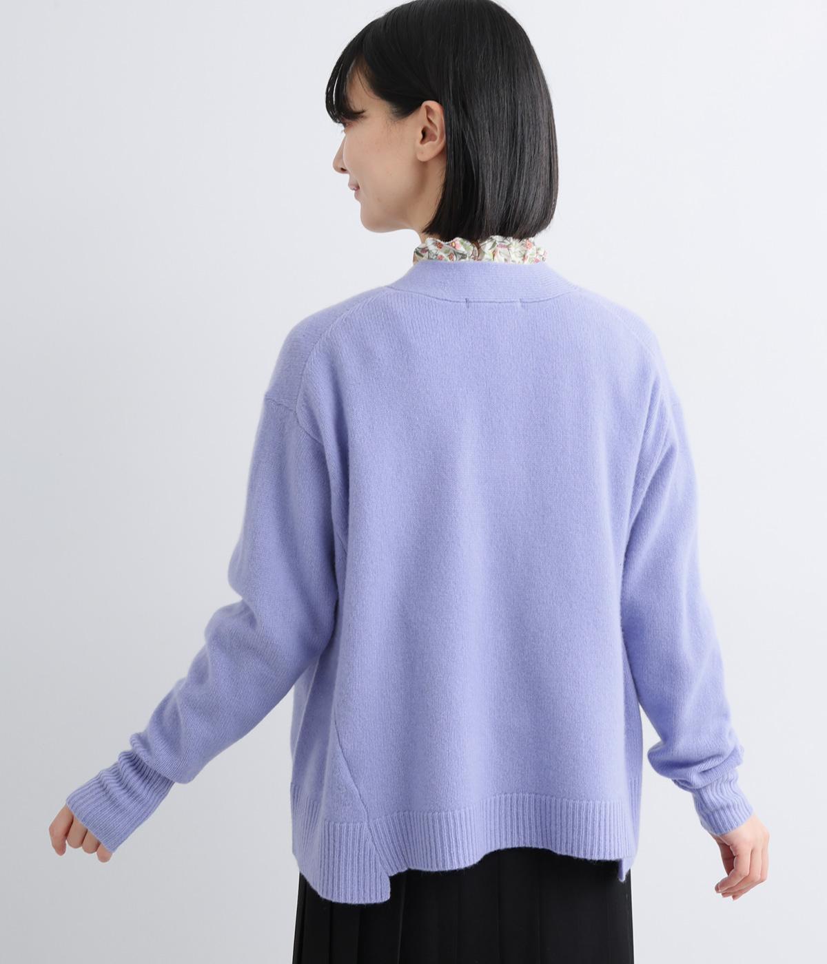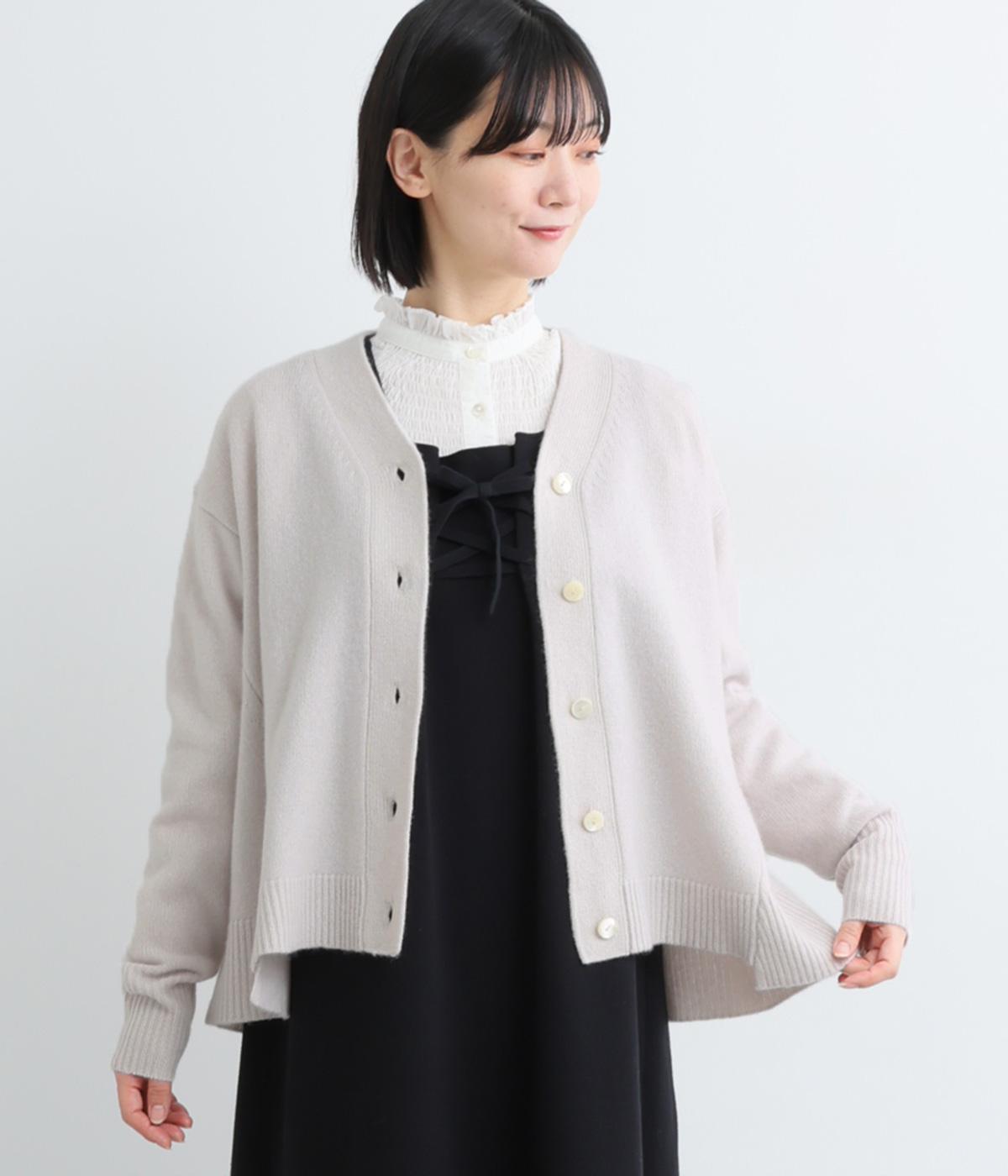 ADIEU TRISTESSEらしい、Aラインシルエットのカーディガン。前後の中央裾部分のみ少し丈が短くなっており、自然とゆれるようなシルエットがつくれます。ゆとりあるサイズ感でボトムスを選ばず、淡いカラーがきれいめコーディネートに映える一枚です。