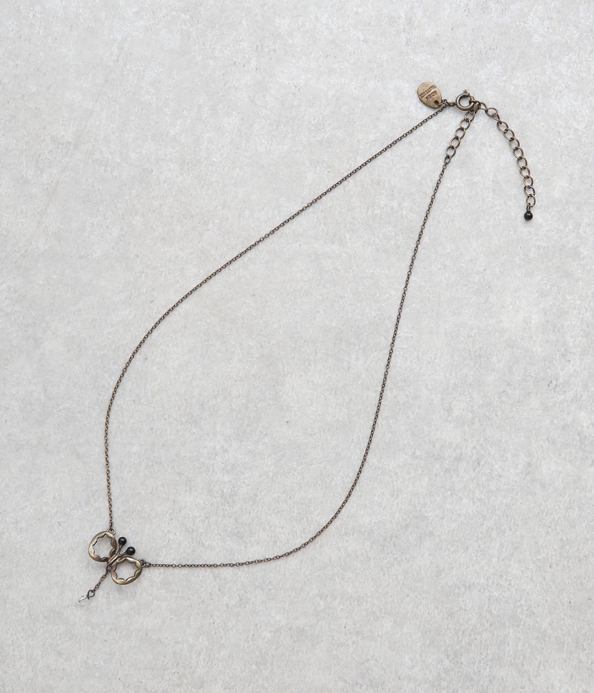 どこかレトロな雰囲気の真鍮でニュアンスのある蝶々のシルエットを描きました。目にはオニキスと揺れる水晶をあしらい、ささやかに存在感を放ちます。