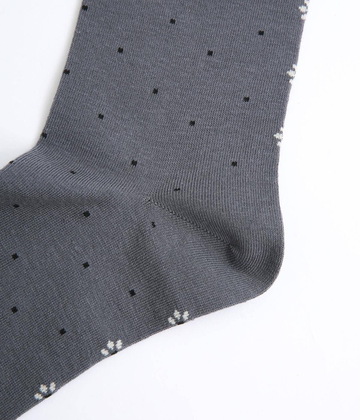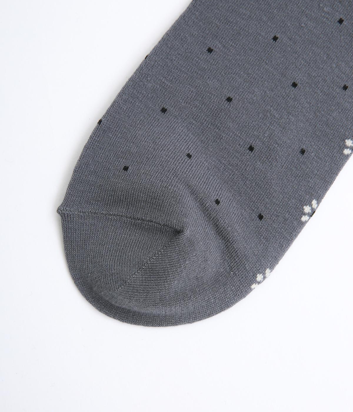 細やかで上品なドットの背面にかわいらしい花柄をあしらいました。シンプルなスタイリングにもかわいらしいアクセントを添えるアイテムです。