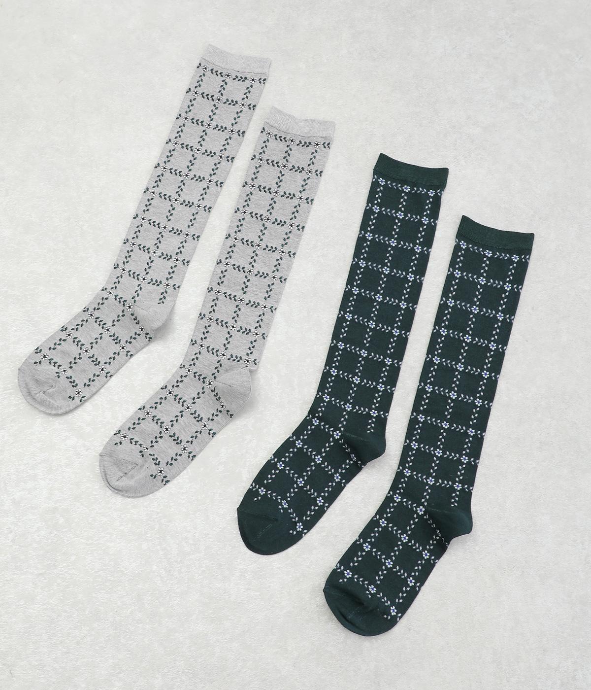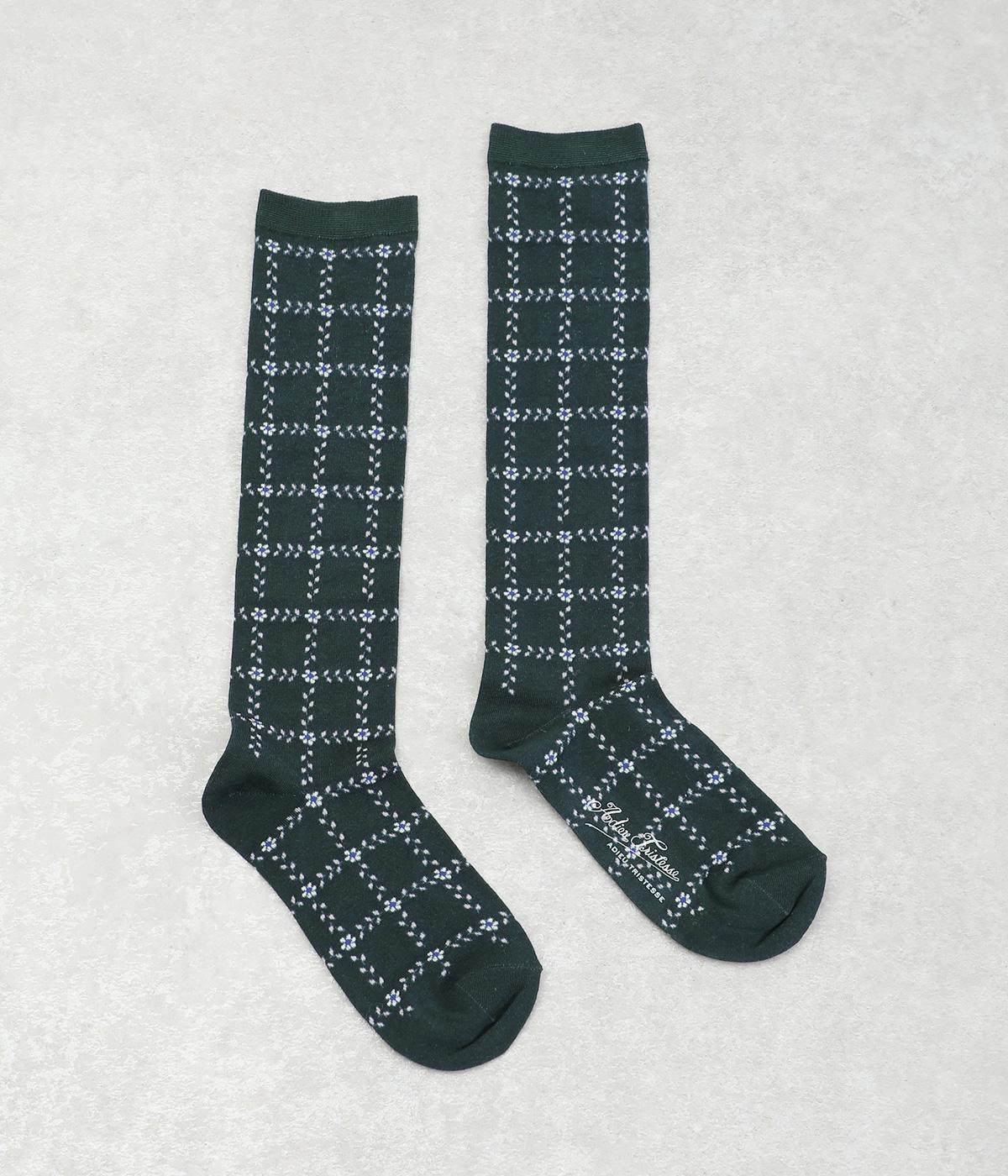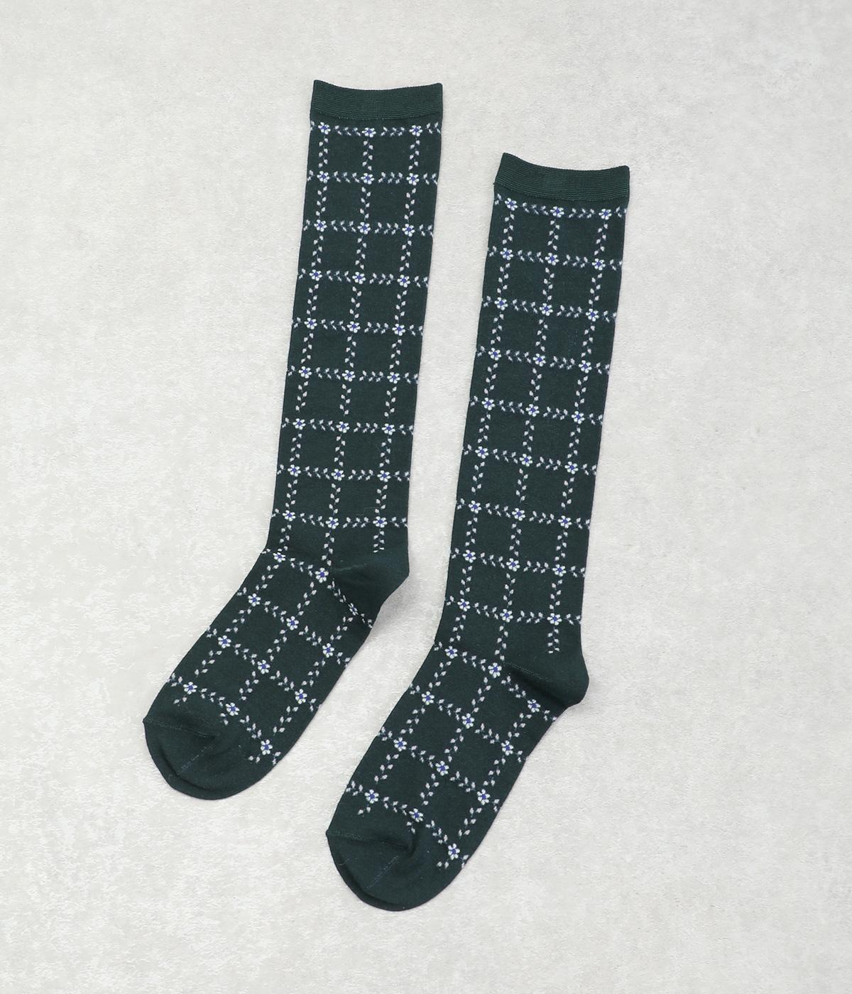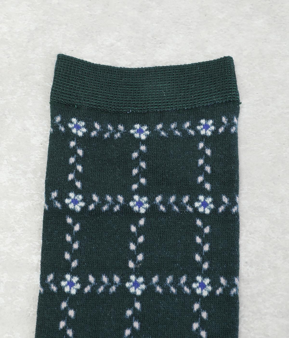 格子のなかに小さな花と葉を描いた、クラシカルな柄が印象的。どこかノスタルジックな雰囲気を漂わせつつも、色のトーンで大人らしさを演出しています。シンプルな装いに合わせるだけで、足元にやわらかな華やかさをプラス。ナチュラルコーデにもなじむ、上品な一足です。