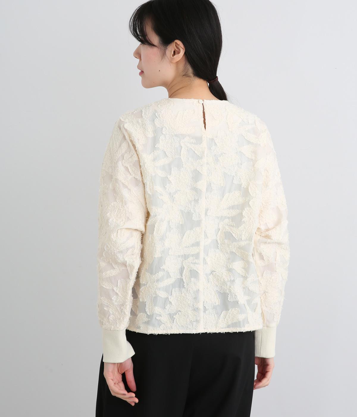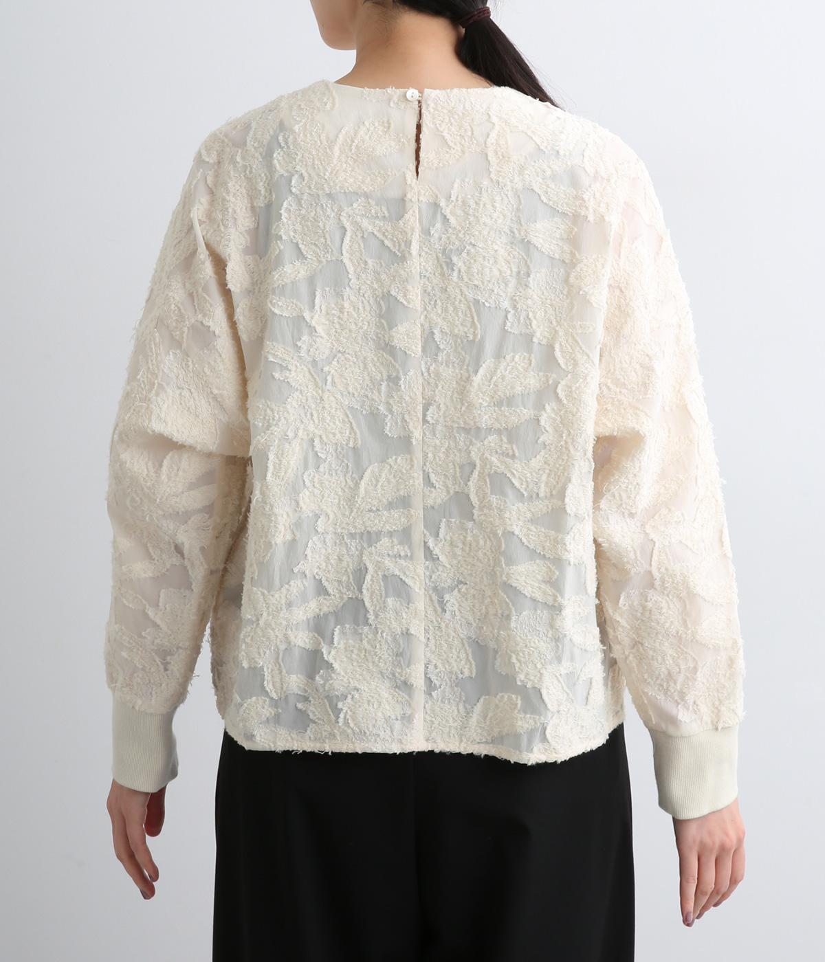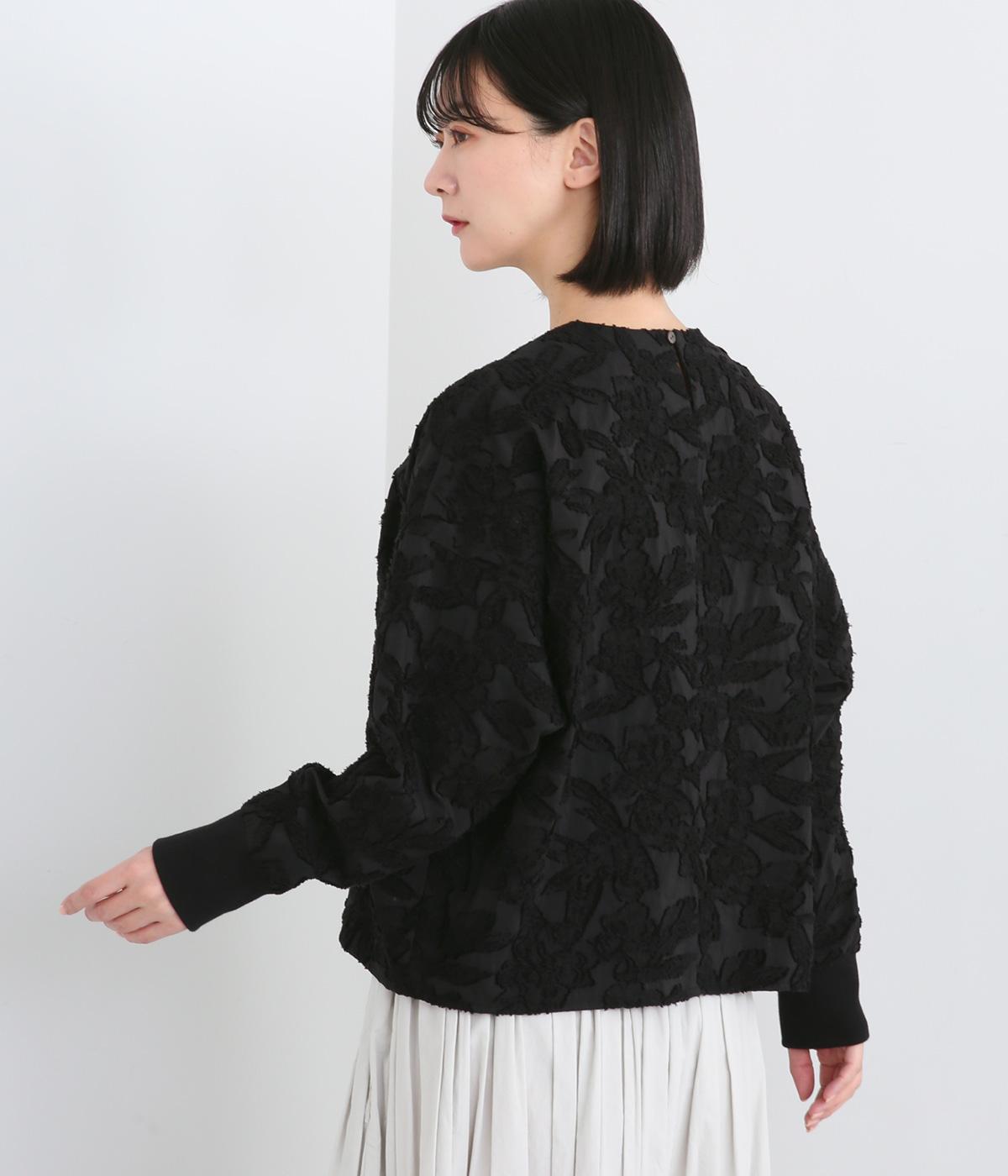 一枚で着るだけでパッと華やかな印象を添えるジャカードブラウス。袖口にはリブを合わせて着やすさも確保しました。オケージョンにはもちろん、デニムなどと合わせてカジュアルダウンするスタイリングもおすすめです。