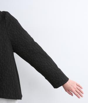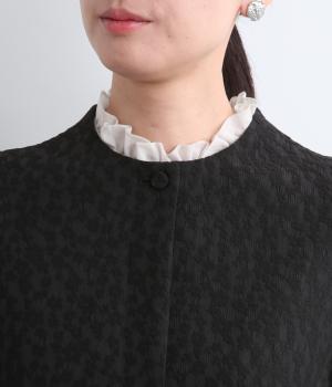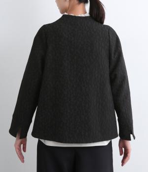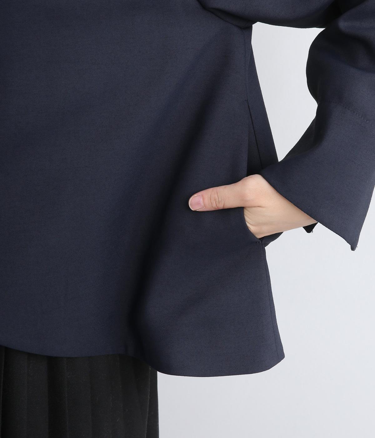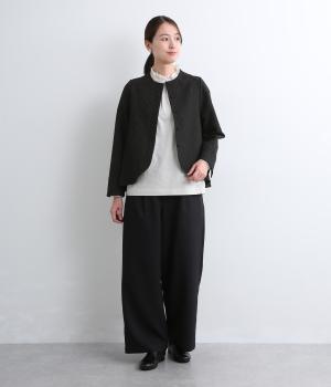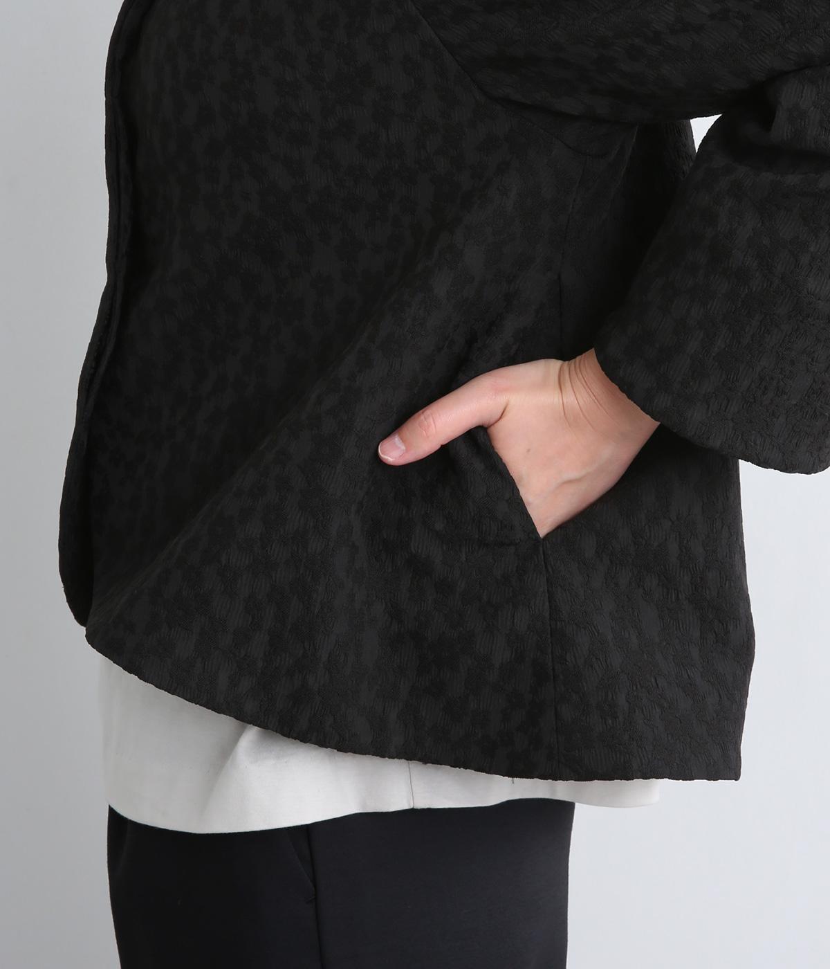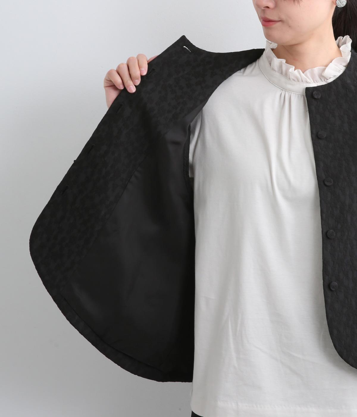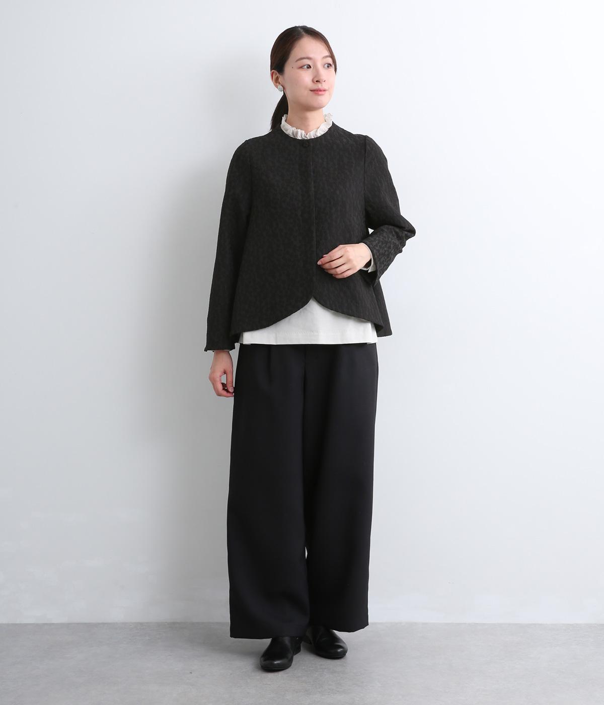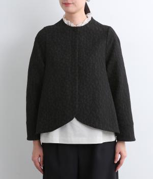 前中心から裾に向けてカーブさせたヘムラインが特徴的なジャケット。品のいいノーカラーできちんとした装いが得意ながらも適度に抜け感があり、袖口を折り返せばこなれ感も演出。同素材のボトムを合わせたセットアップスタイルもおすすめです。