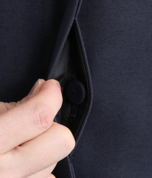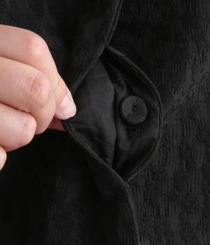 ほんのりとした光沢に落ち着きのある表情が特徴的なポリエステル生地を使用。重厚感がありながらも速乾性が良く仕上がりは軽やかです。身頃のみすべりのいい裏地つき。