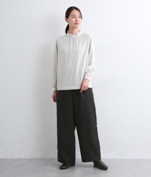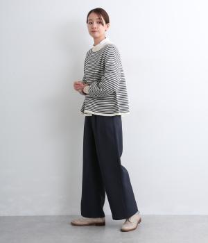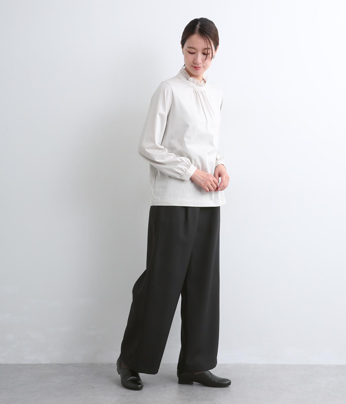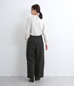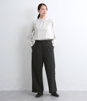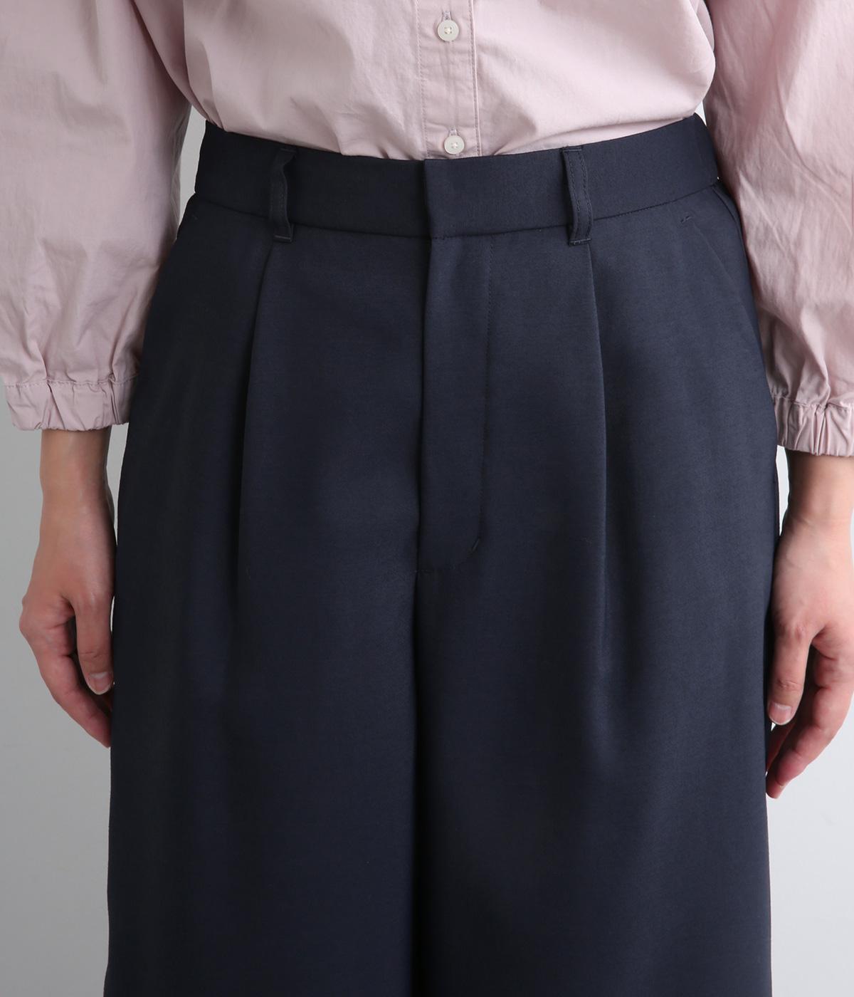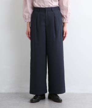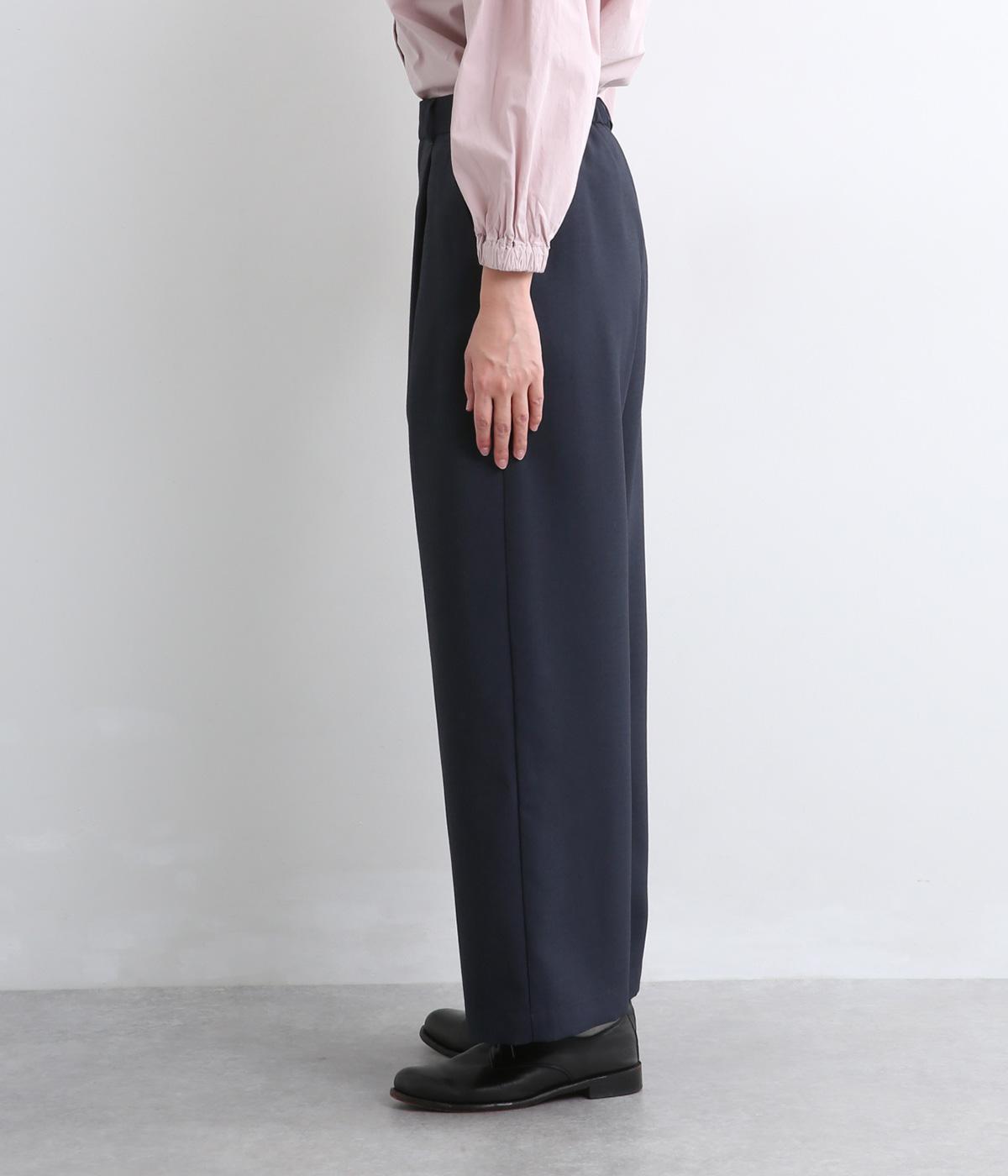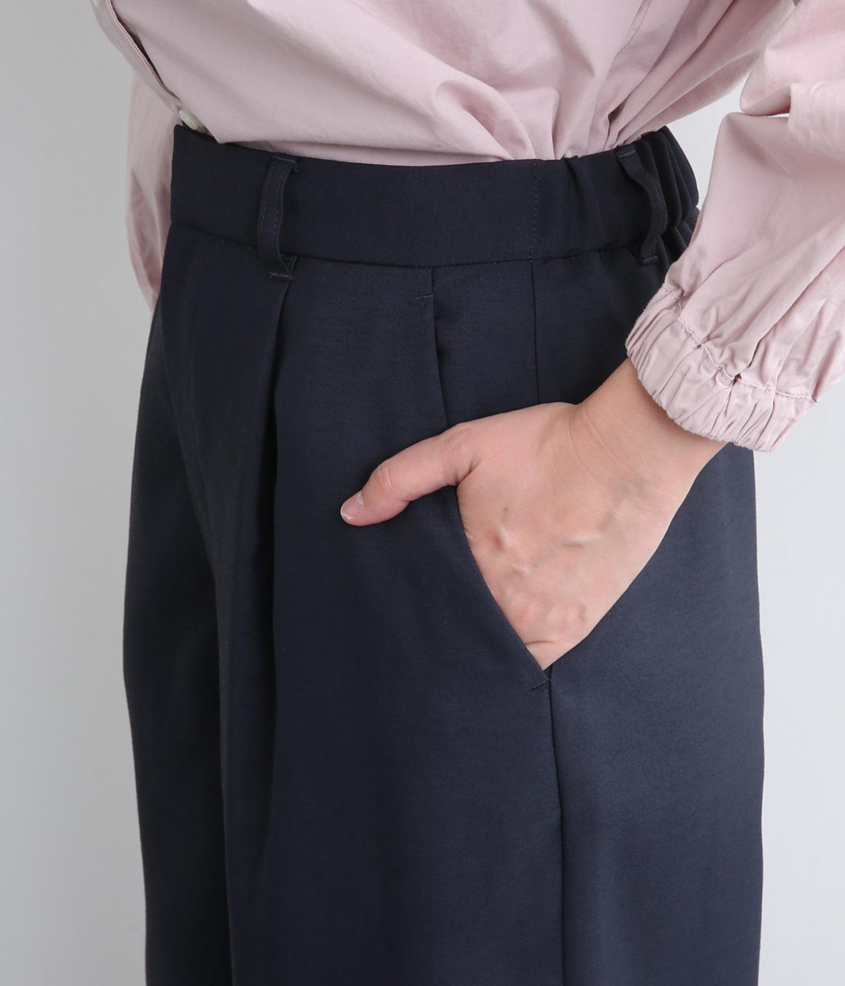 すっきりとしたストレートラインの美しさと適度なゆとりを備えたタックパンツ。もたつきのないシルエットはカットソーでカジュアルダウンさせても、ジャケット合わせでフォーマルに決めてもすてき。前ファスナーに後ろゴム仕様でフィット感も◎。