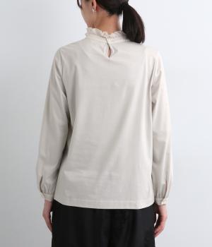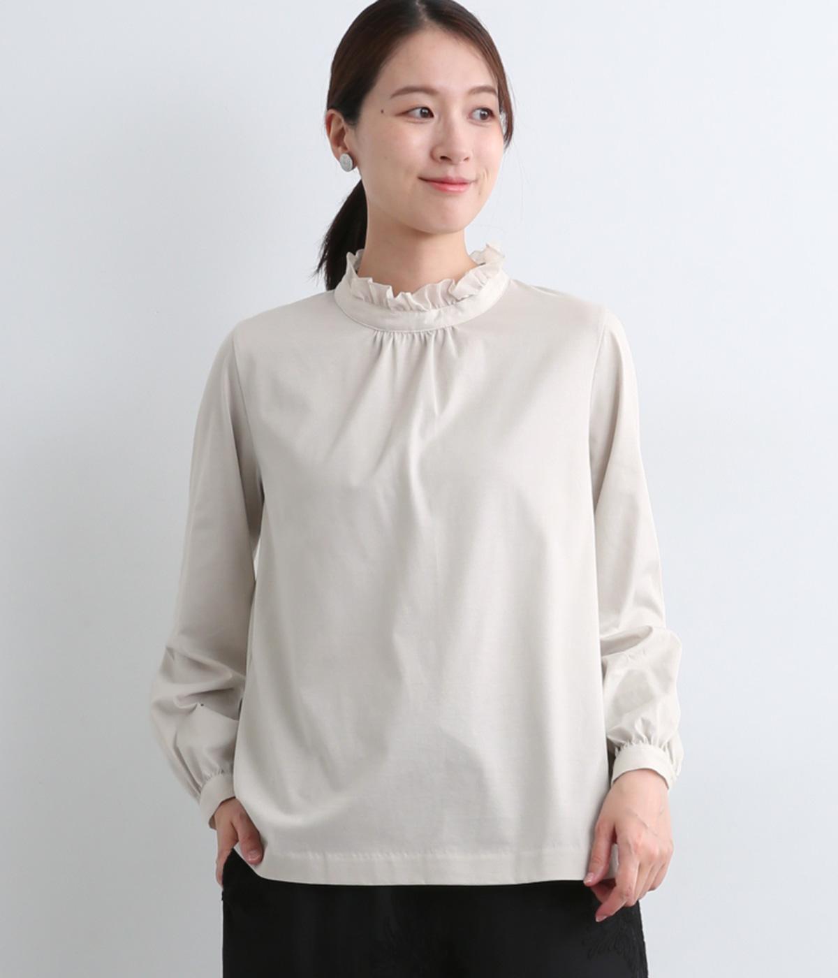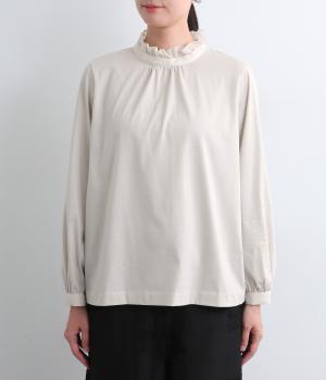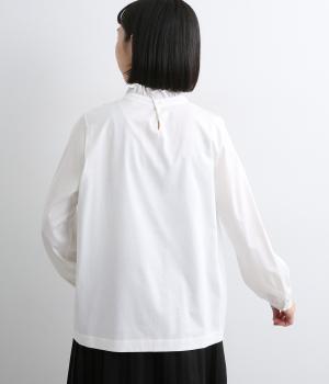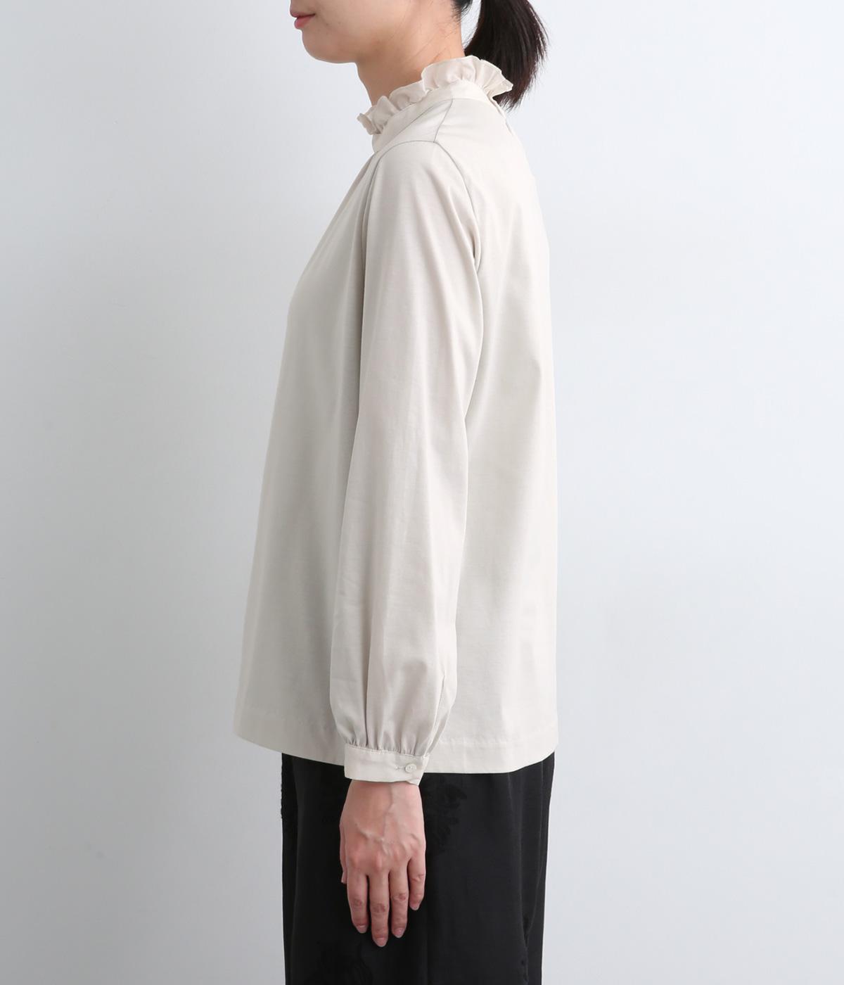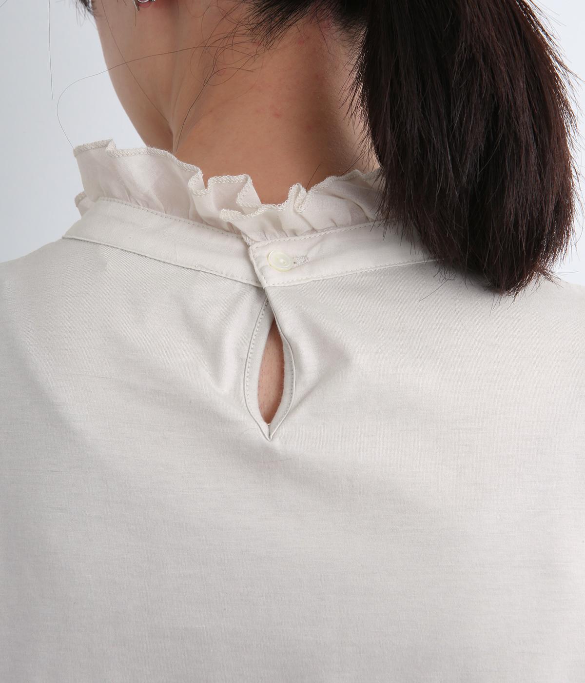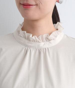 デイリースタイルに欠かせない天竺プルオーバーの首元に布帛フリルを配してフェミニンアイテムに仕上げました。ふわりとした袖も可愛らしく、メインにもインナーにもなる優れもの。着心地も快適でロングシーズン着まわせます。