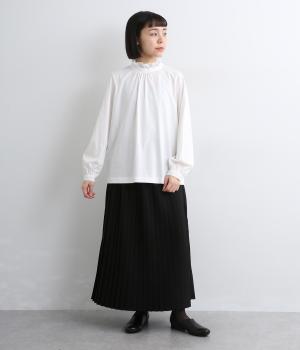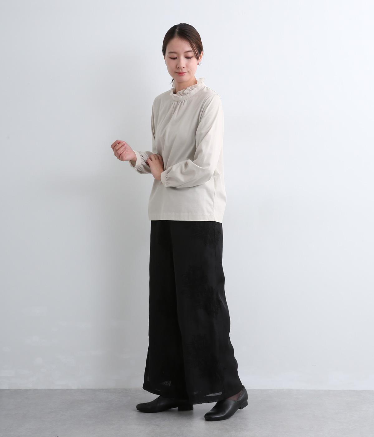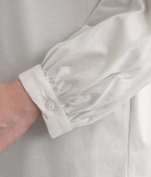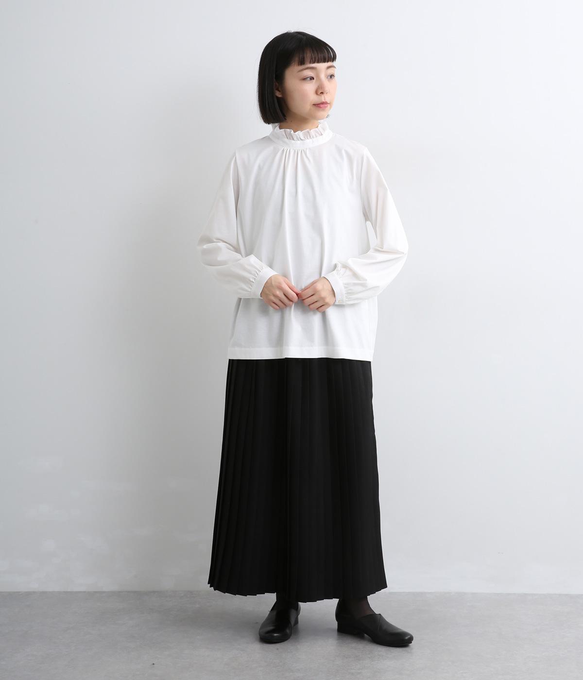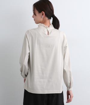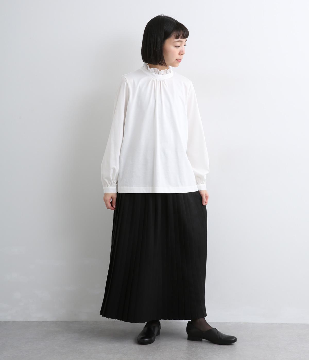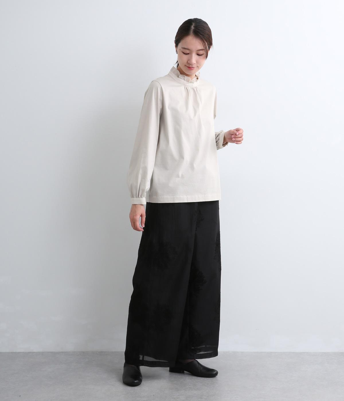 デイリースタイルに欠かせない天竺プルオーバーの首元に布帛フリルを配してフェミニンアイテムに仕上げました。ふわりとした袖も可愛らしく、メインにもインナーにもなる優れもの。着心地も快適でロングシーズン着まわせます。