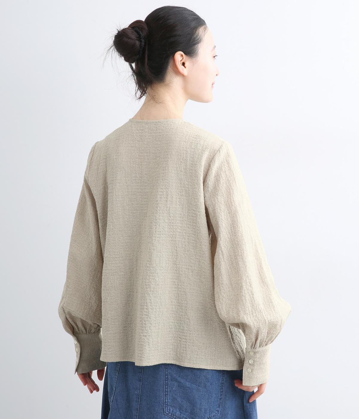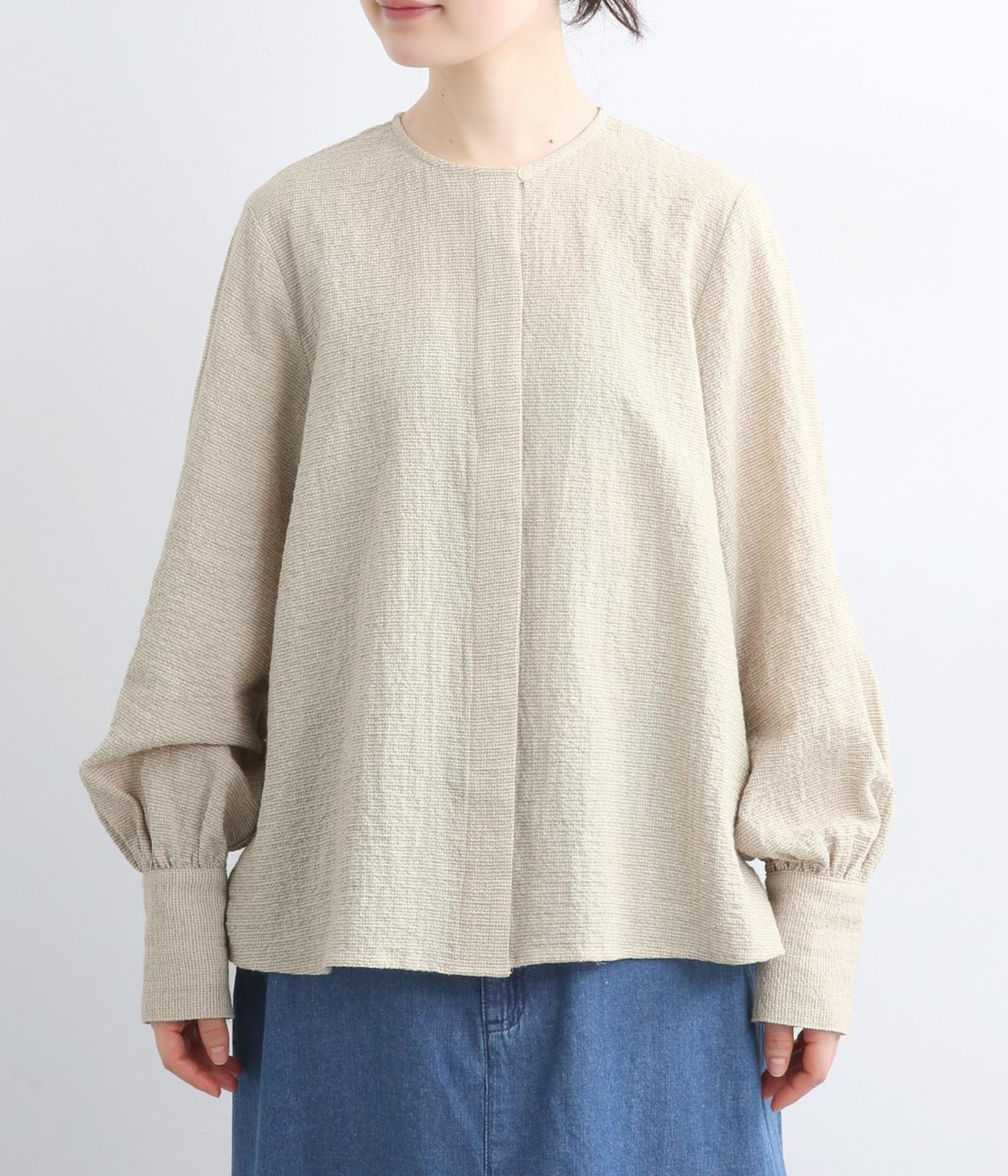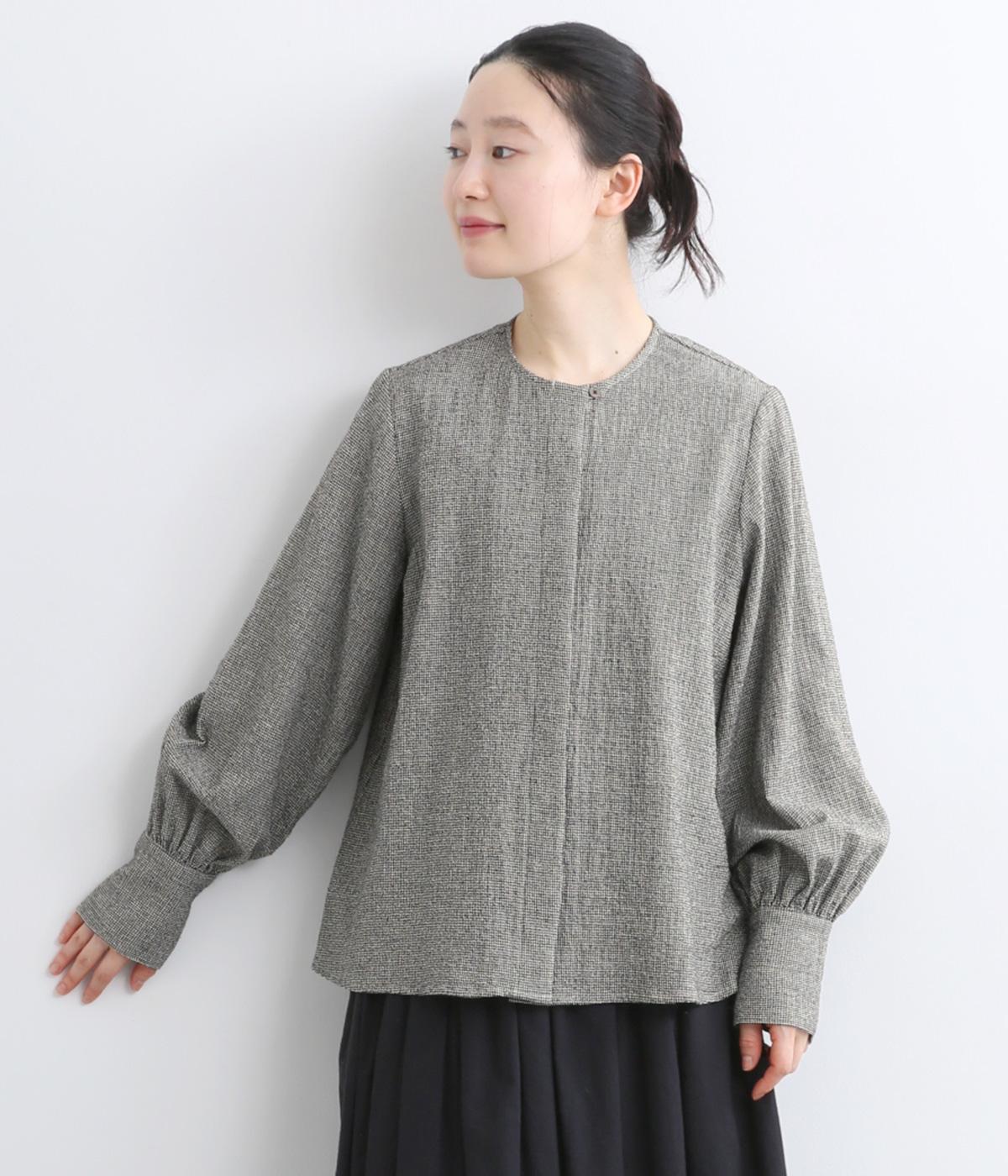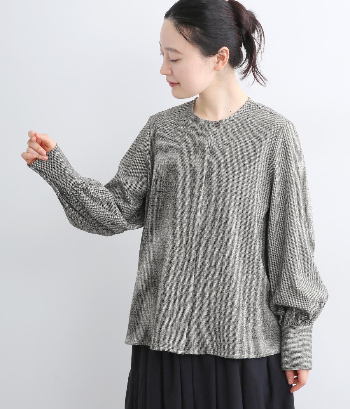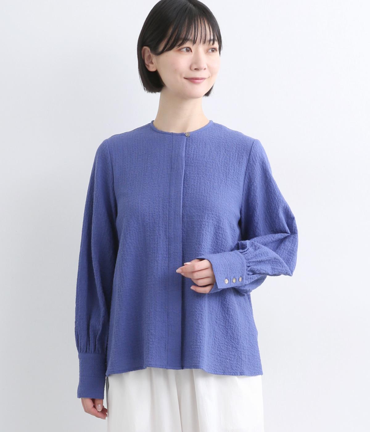 ふっくらとメリハリをつけたボリューム袖がポイントのブラウス。デザインを惹きたてるシンプルな比翼の前あき仕様で、カーディガン感覚でも着まわせます。ラウンドカラーで抜け感を持たせ、肩まわりもすっきりと。袖カフスはボタンをあけて折り返しても◎。