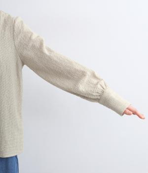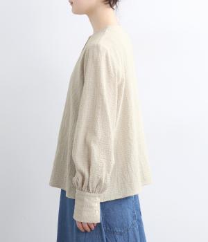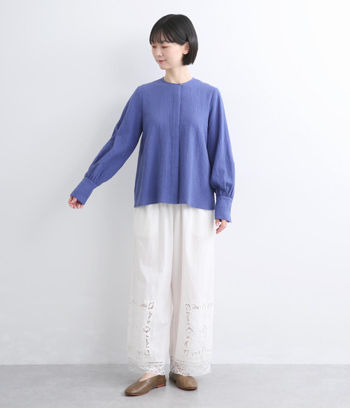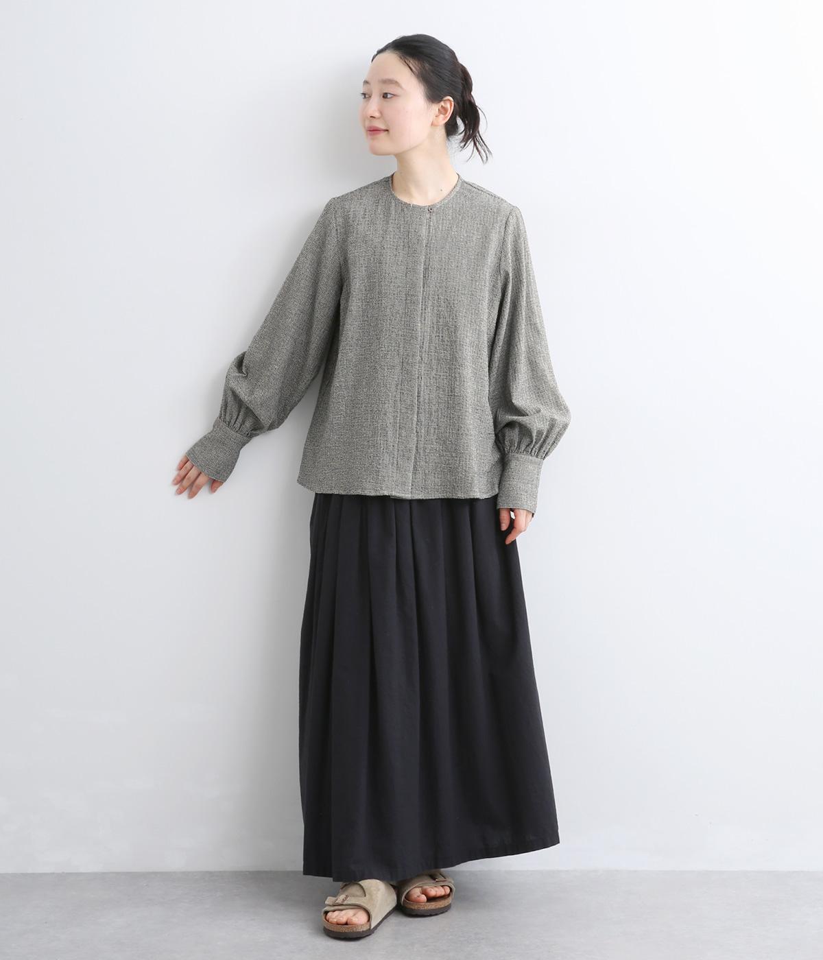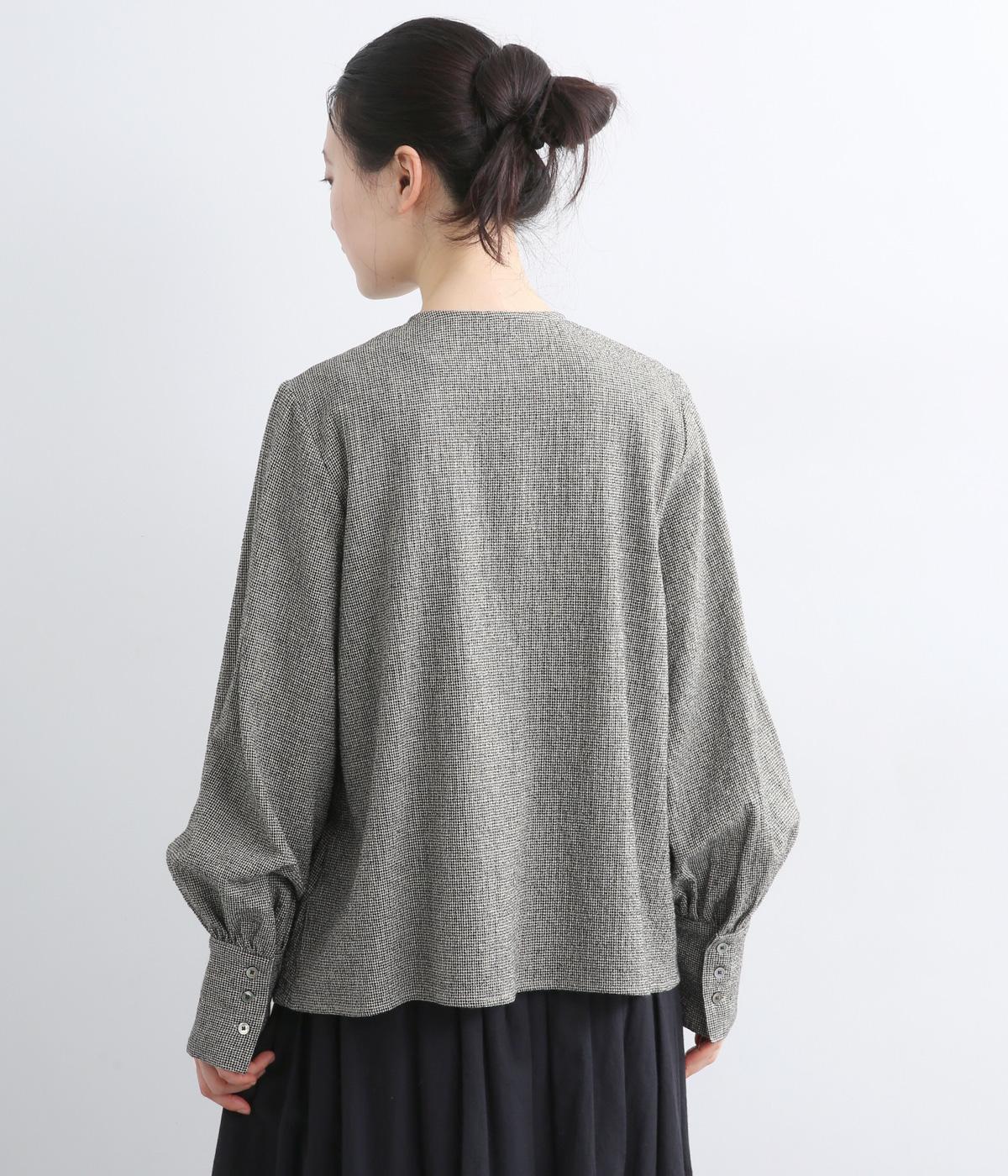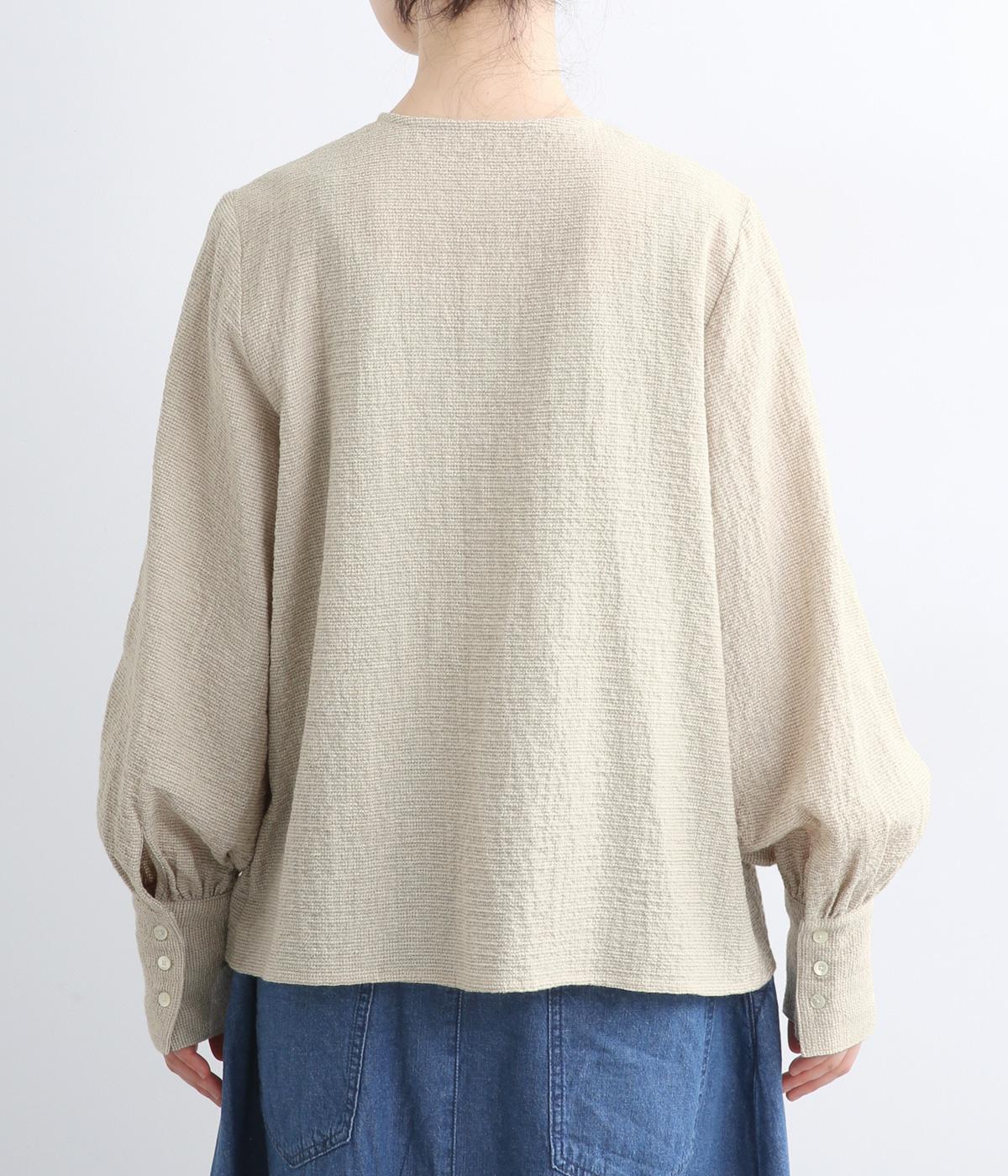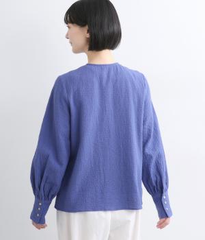 ふっくらとメリハリをつけたボリューム袖がポイントのブラウス。デザインを惹きたてるシンプルな比翼の前あき仕様で、カーディガン感覚でも着まわせます。ラウンドカラーで抜け感を持たせ、肩まわりもすっきりと。袖カフスはボタンをあけて折り返しても◎。
