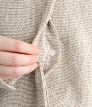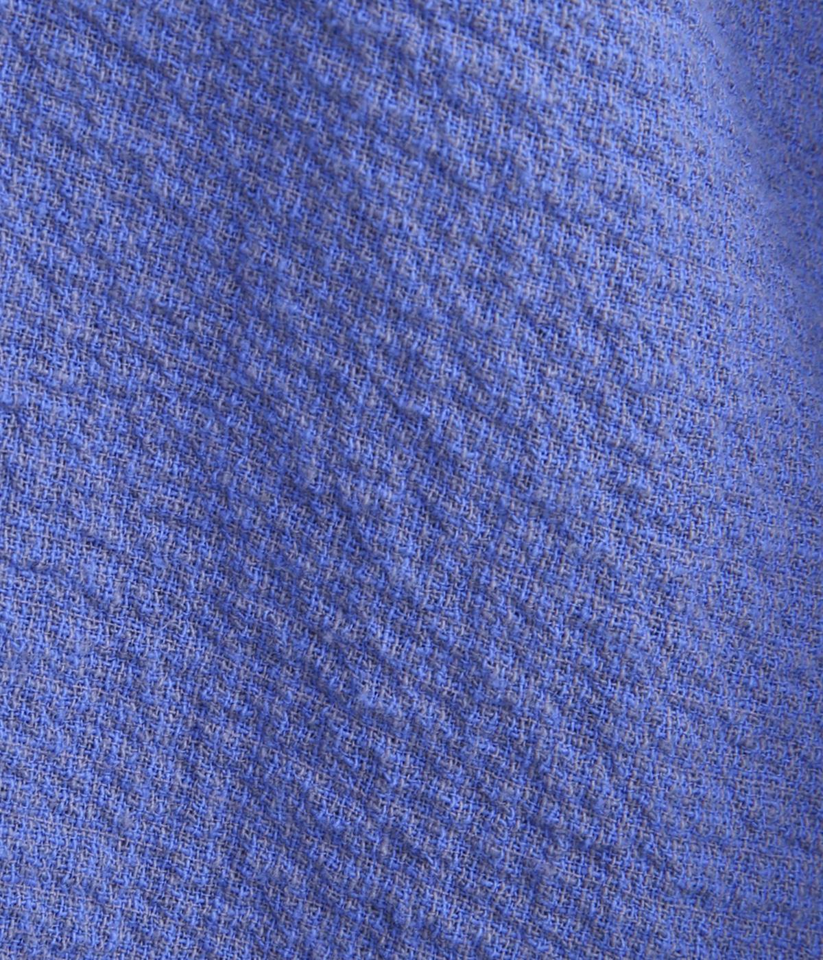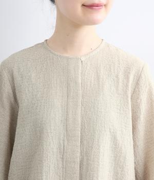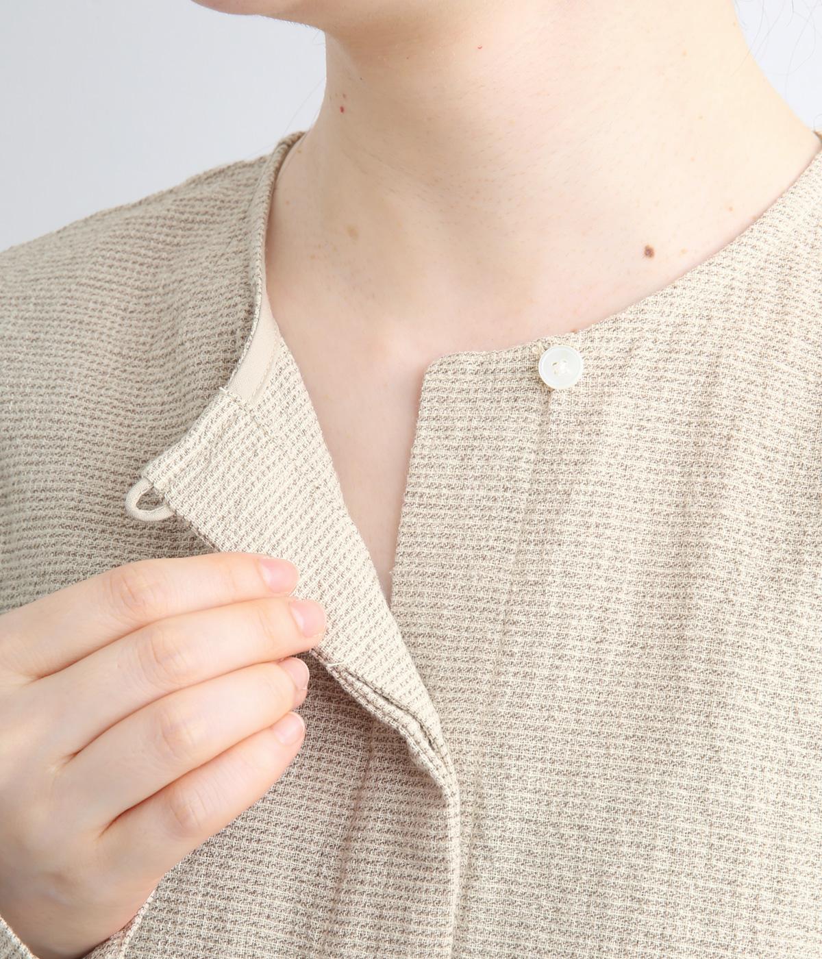 凹凸感のある格子状の織目が特徴的なワッフル生地を使用。立体的な構造で肌離れがよく、通気性・吸水性にも優れていて、ロングシーズン快適に着用できます。綿麻混のナチュラルな表情にも注目。