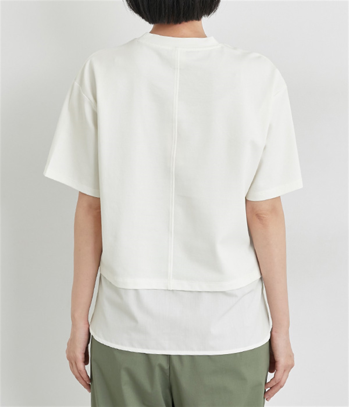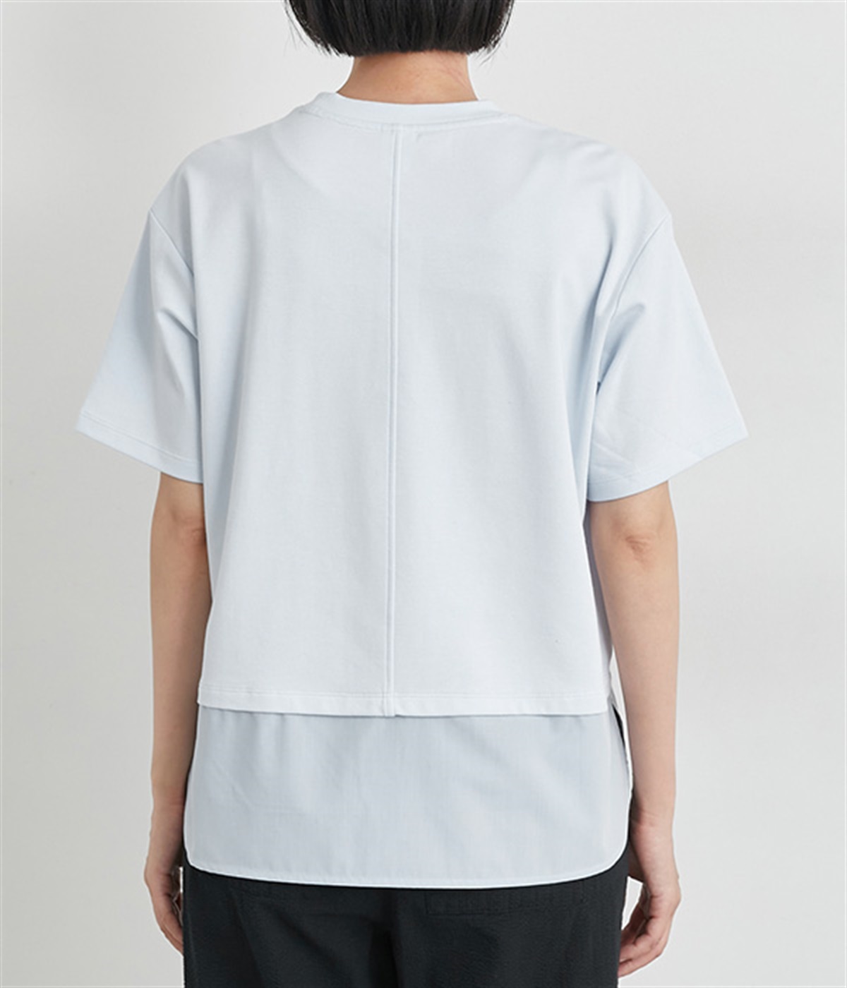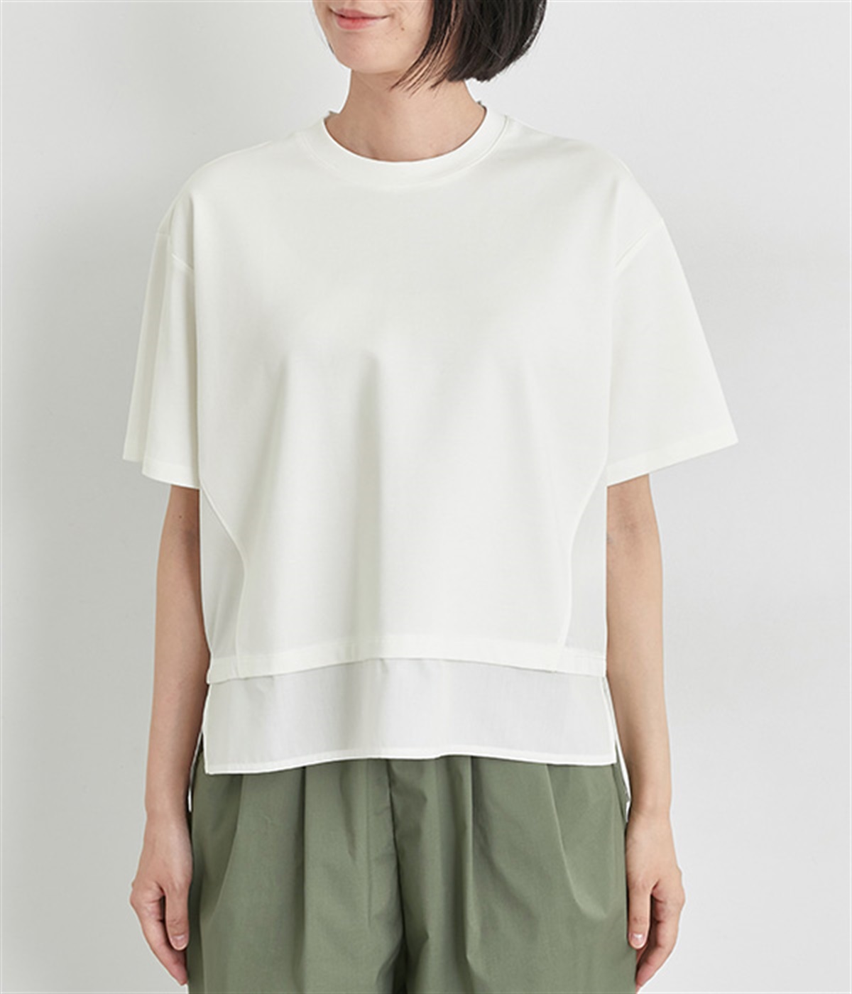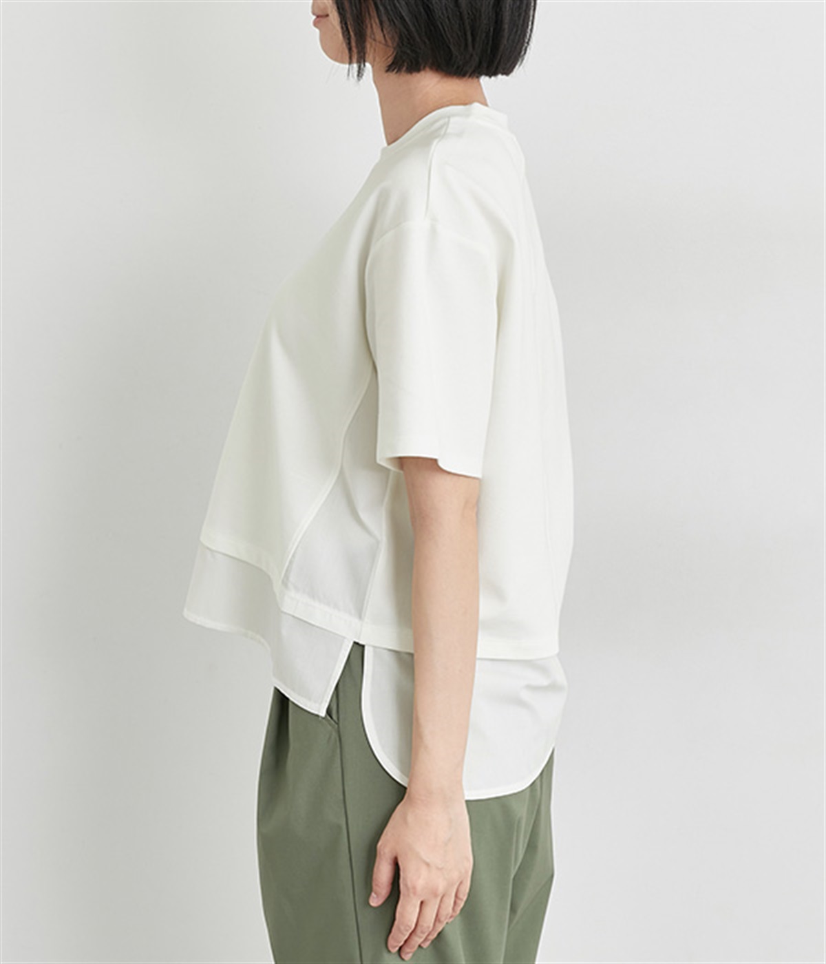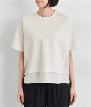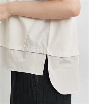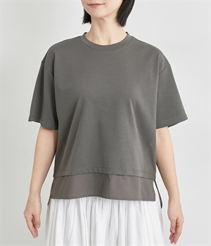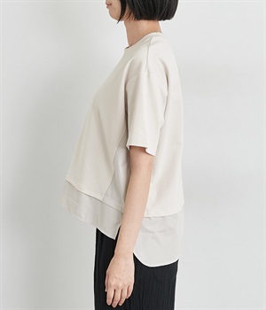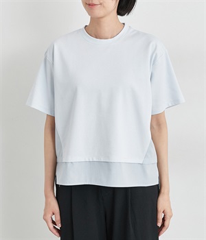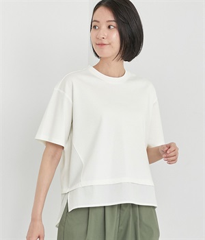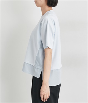 裾だけでなくサイドにも異素材を配したデザインが新鮮なプルオーバーです。前はカジュアルテイストなボックスシルエットに、後ろはシャツの裾をチラ見せしているかのようなデザインでおしゃれ感を高めました。