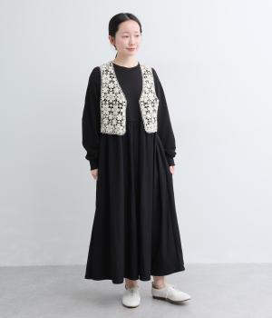 やわらかくさらりとした肌触りが快適なコットンレースで編み上げました。立体感のある編み柄に透け模様が表情に奥行きをもたらします。