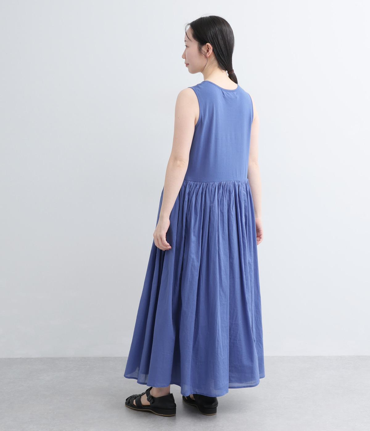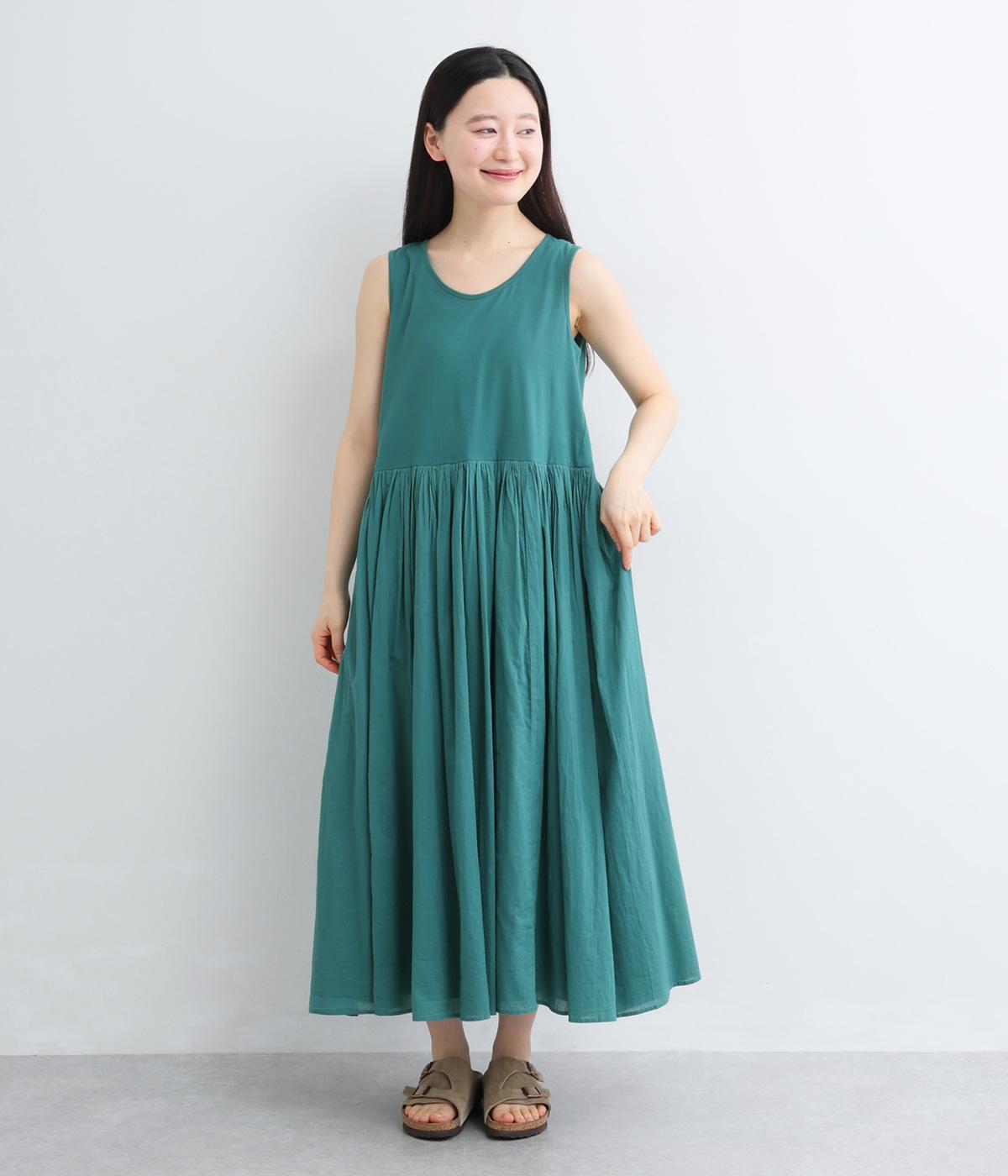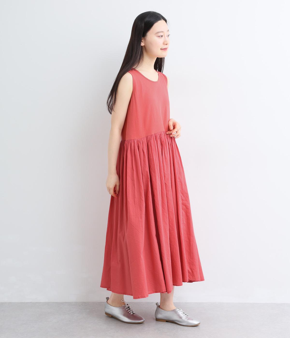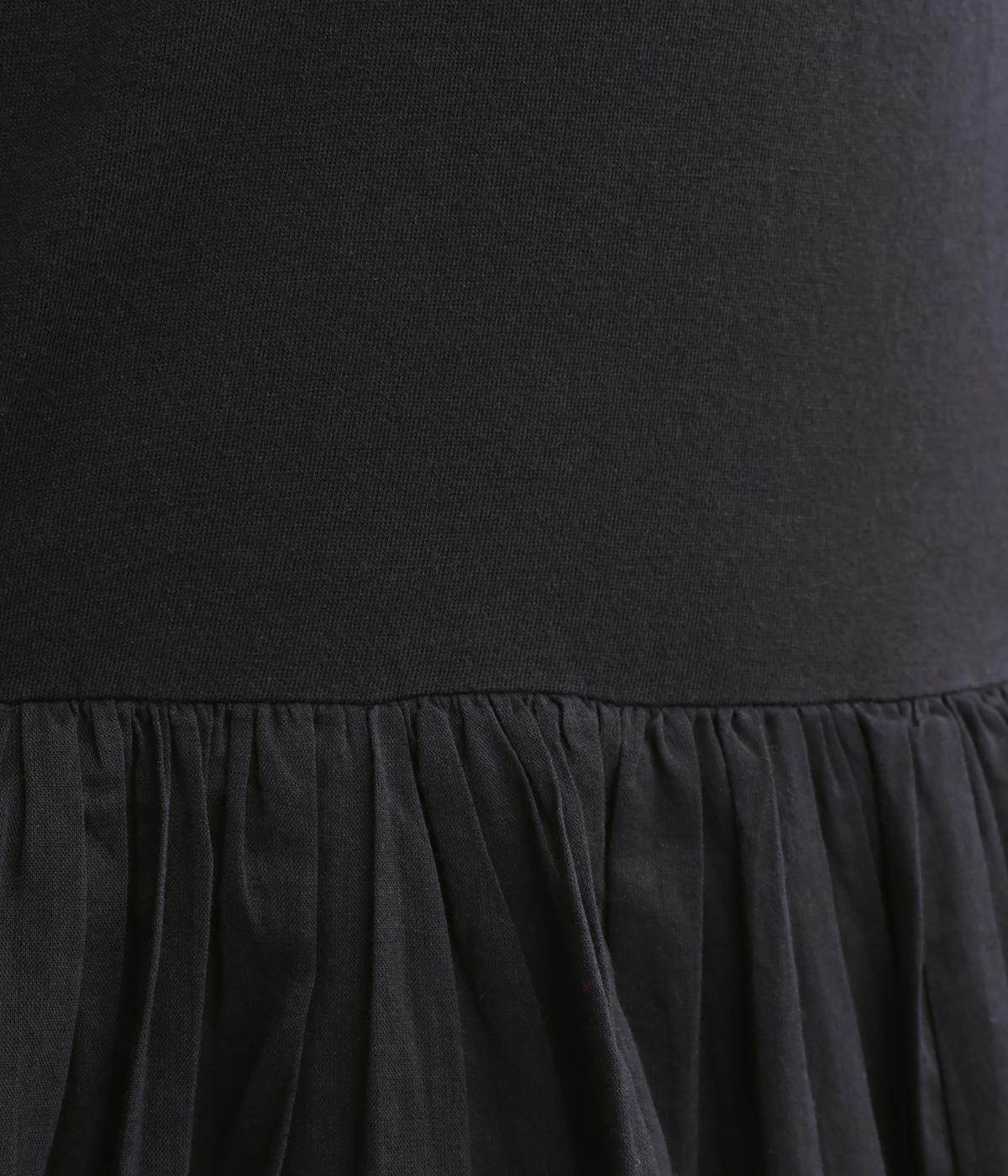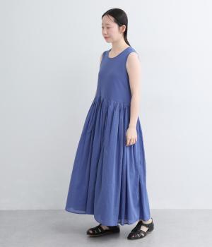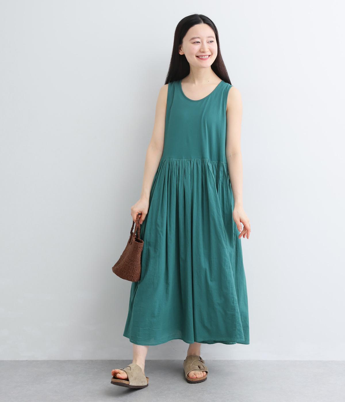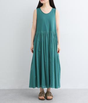 シンプルながらも異素材による変化で表情をつけたワンピース。動きの多い上身頃は天竺素材で着心地快適。軽やかな裾が歩くたびにゆらめいて着映え力も◎。すっきり一枚でさわやかに着たり、羽織りやインナーを合わせたりと着まわせます。