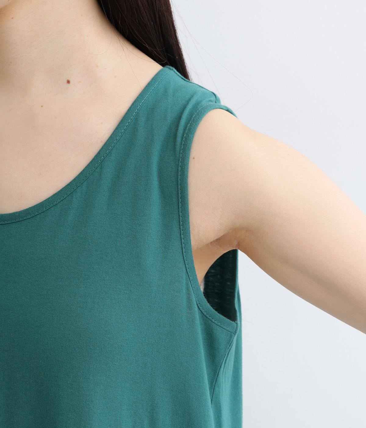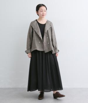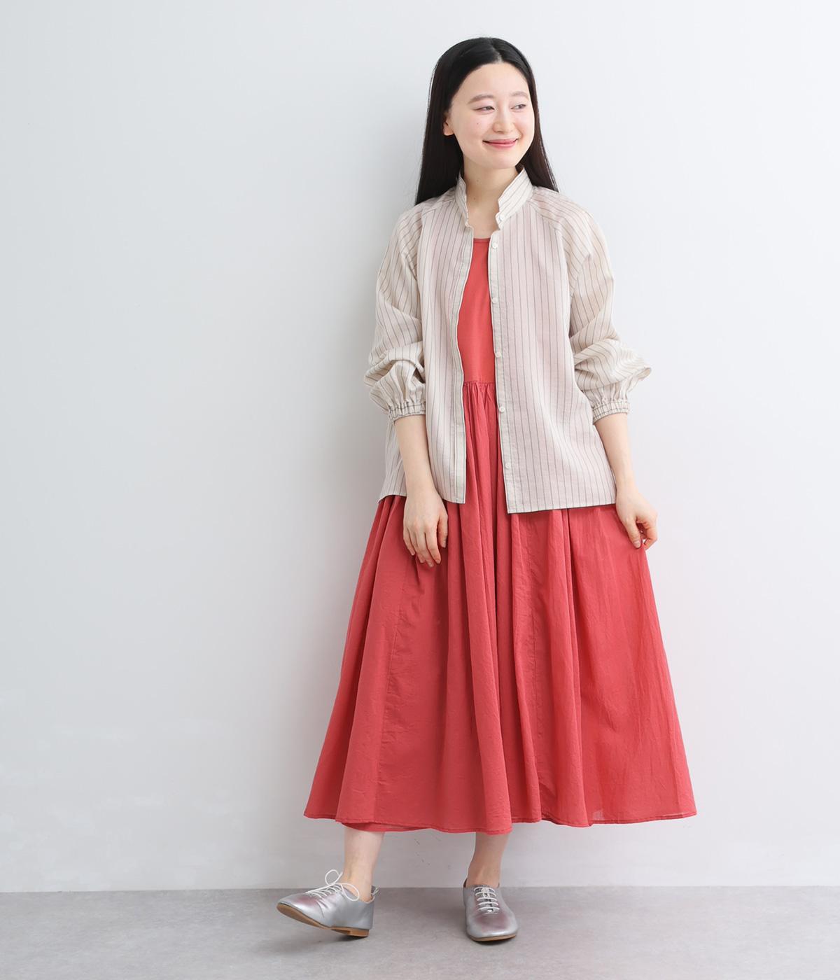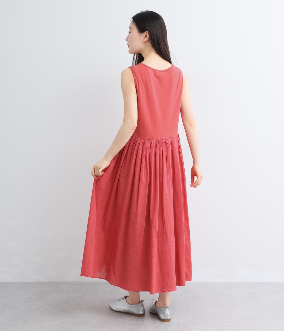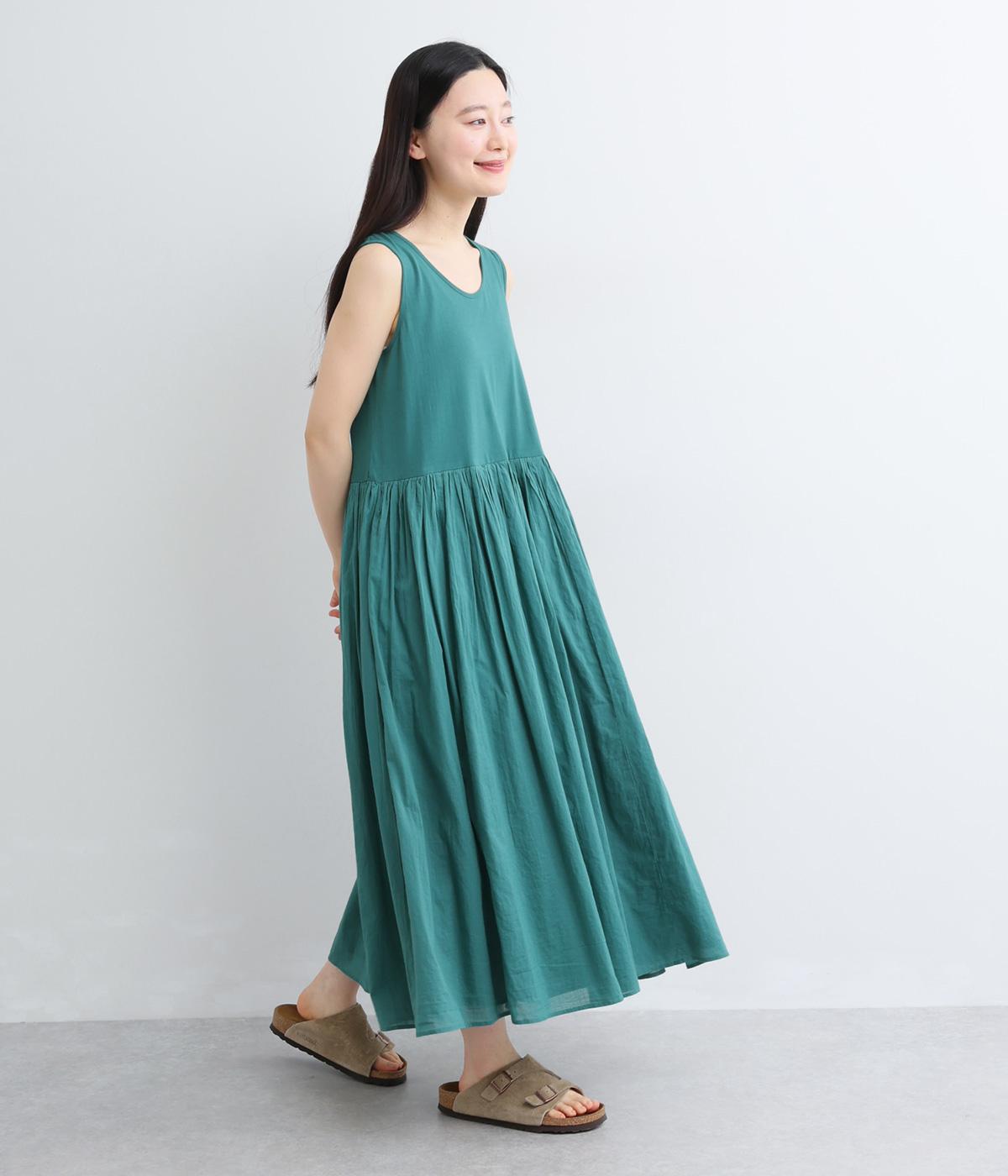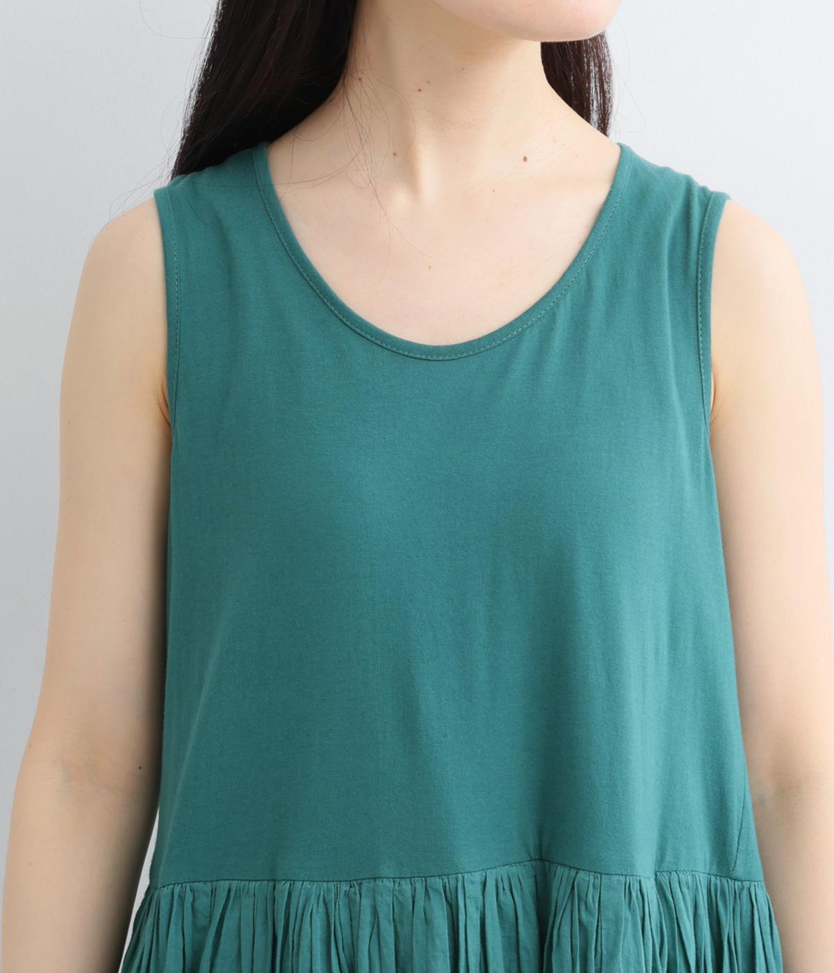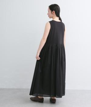 シンプルながらも異素材による変化で表情をつけたワンピース。動きの多い上身頃は天竺素材で着心地快適。軽やかな裾が歩くたびにゆらめいて着映え力も◎。すっきり一枚でさわやかに着たり、羽織りやインナーを合わせたりと着まわせます。