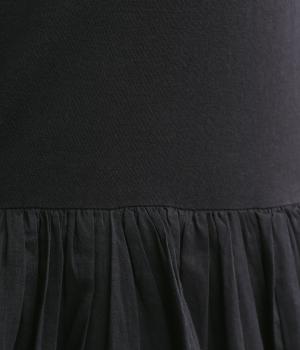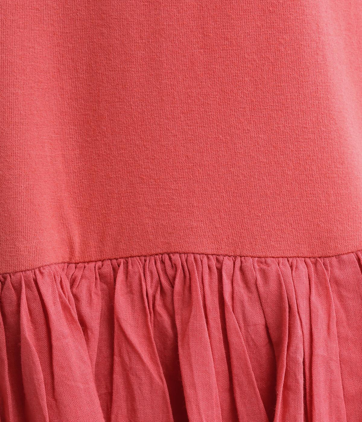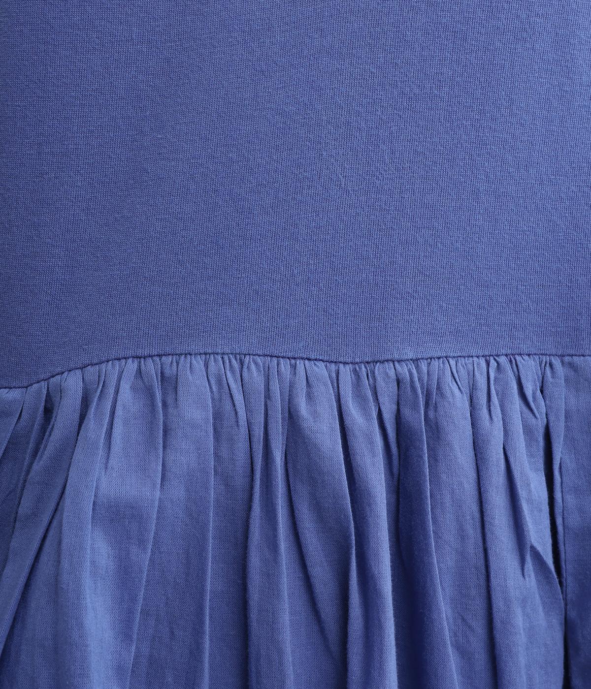 やわらかで伸びのいい天竺とふわりと軽やかなボイル生地をドッキング。どちらもコットンの天然素材によるやわらかな質感が魅力で、ワンカラーですっきりまとめました。