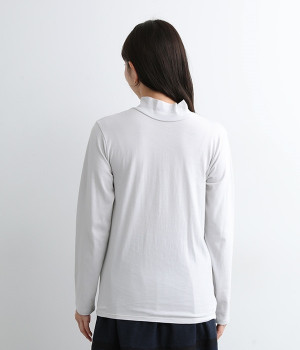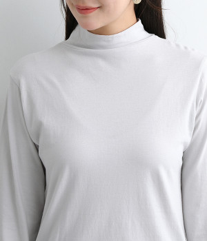 着まわし力抜群のベーシックなハイネックプルオーバー。適度な伸縮性がありながらも、生地がねじれにくくシワになりにくい編み方で仕立てています。コットン素材で着心地も良く、セットインスリーブにすることでニットやシャツのインナーユースでもごわつきがおさえられるのも◎。アームホールや袖巾のサイズ感など、パターン設計にもこだわったアイテムです。