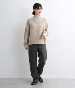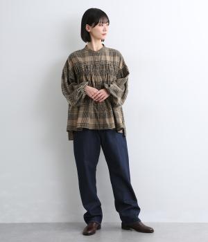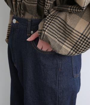 ほどよい厚みで硬さの少ないコットンデニム生地です。きちんとしたハリがきれいなシルエットを後押し。毎日のスタイリングに取り入れやすい素材感です。