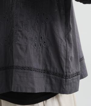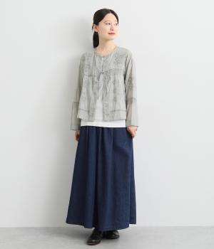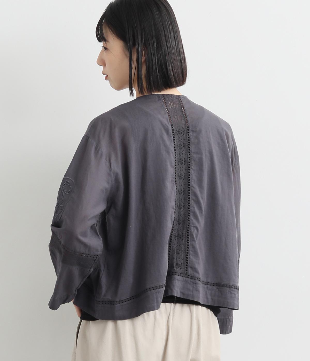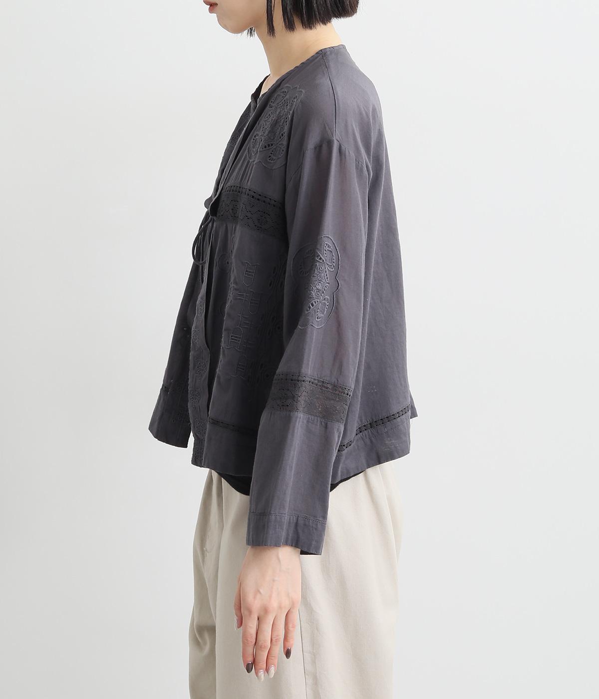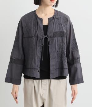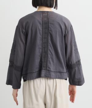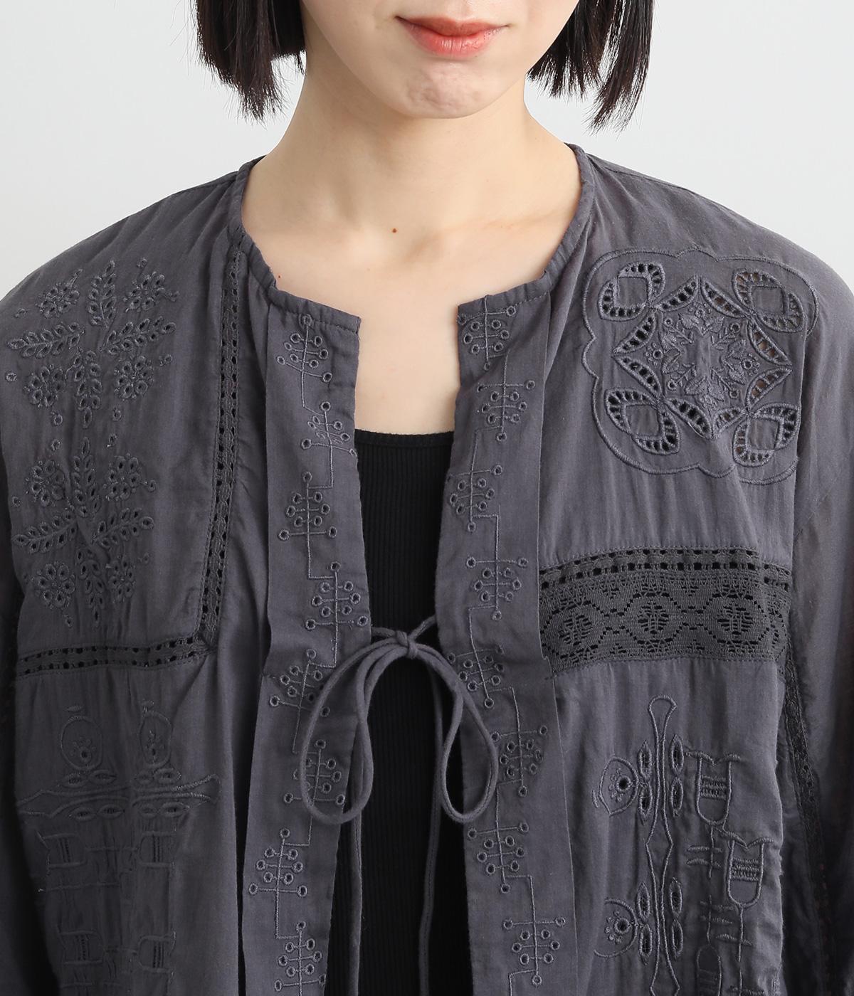 繊細なレースや刺しゅうを取り入れた大人フェミニンなブラウス。パッチワークのようにランダムに配置したデザインがポイントです。フロントの紐をきゅっと結ぶディテールも愛らしさたっぷり。インナー次第でロングシーズン着まわせます。