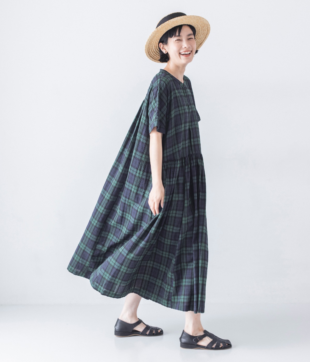 柄で気分を上げる、夏の柄ワンピース。定番柄で日々の装いに馴染みつつ、ほどよく個性を引き立ててくれるストライプ、ギンガムチェック、ブラックウォッチの3柄をご用意しました。