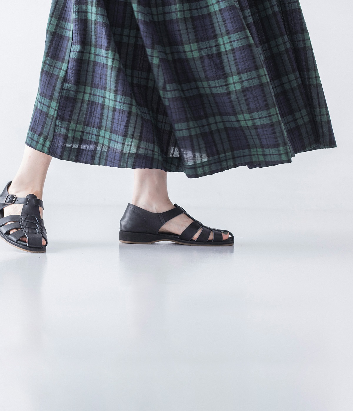 グリーンとネイビーをベースにしたブラックウォッチ。落ち着いたトーンながらほどよく存在感があり、コーディネートにこなれた雰囲気を添えてくれます。