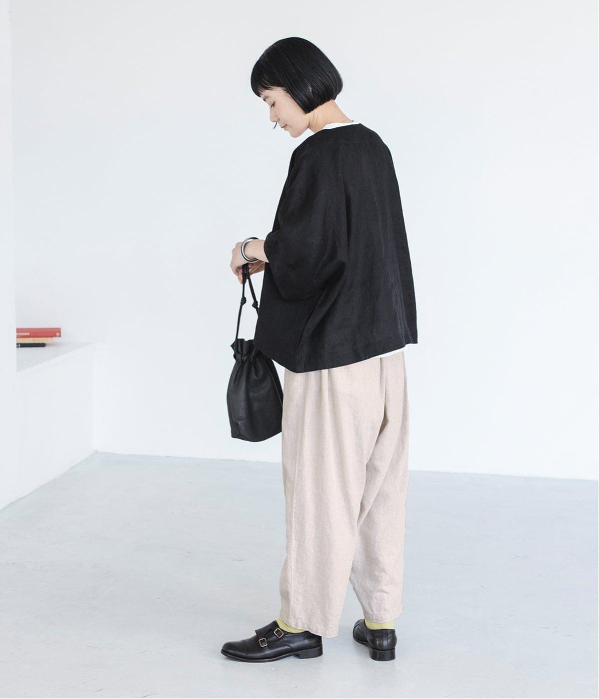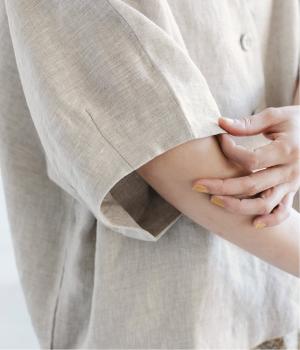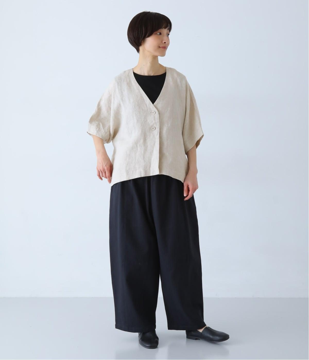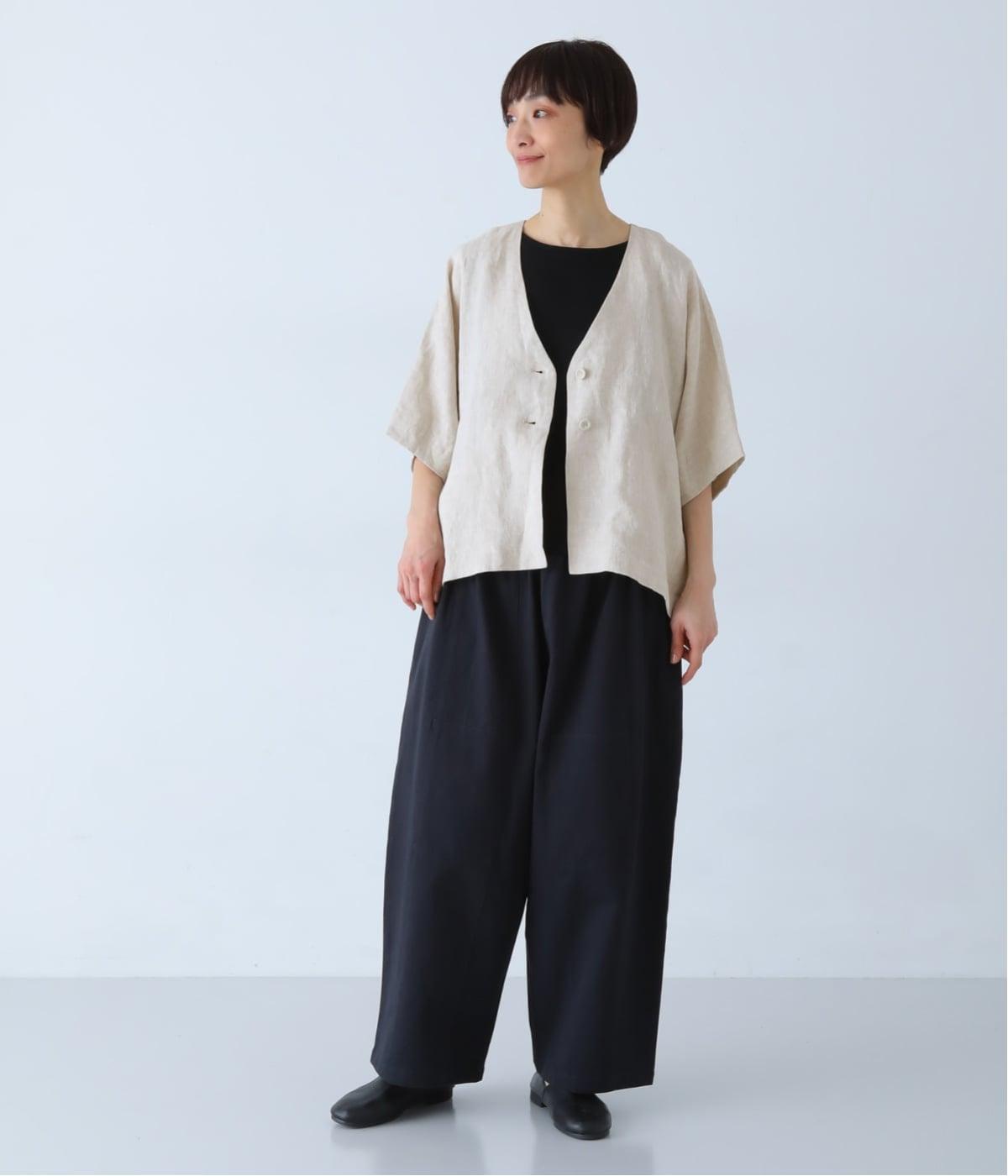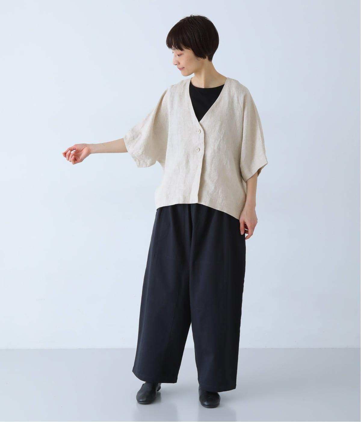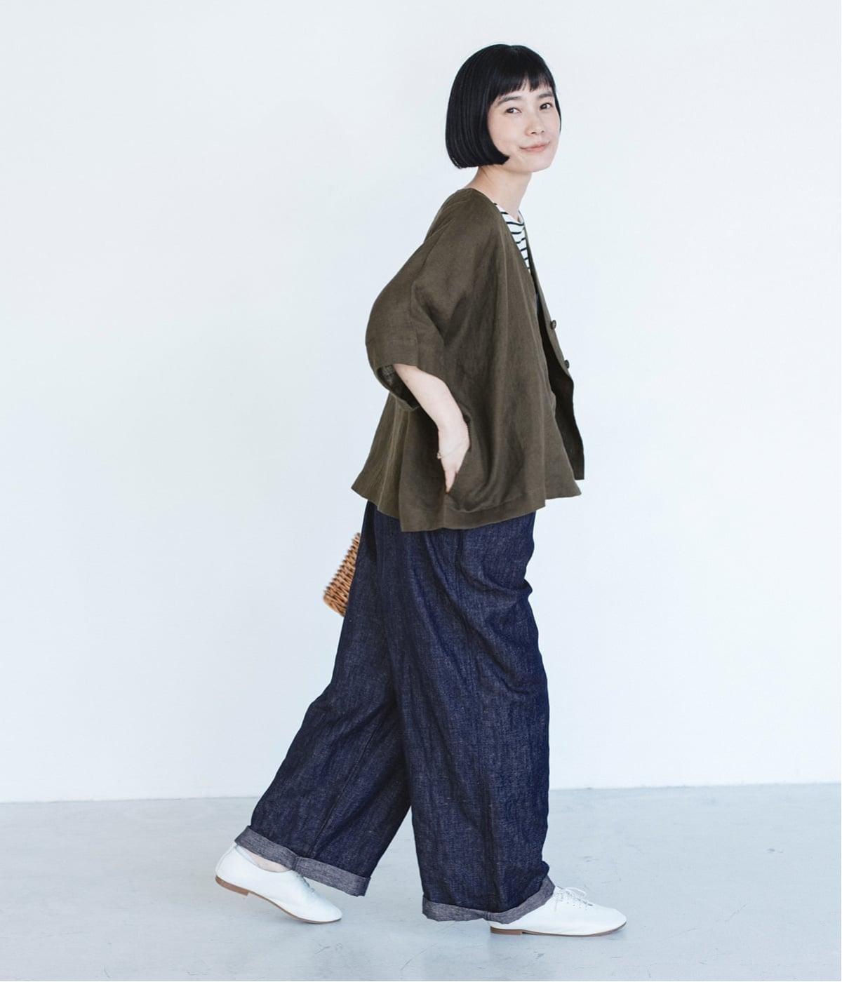 重たさを感じさせず、ふわりと軽やかに着こなせるのは、リネンならではのやさしい風合いのおかげ。