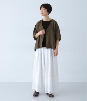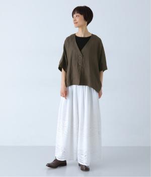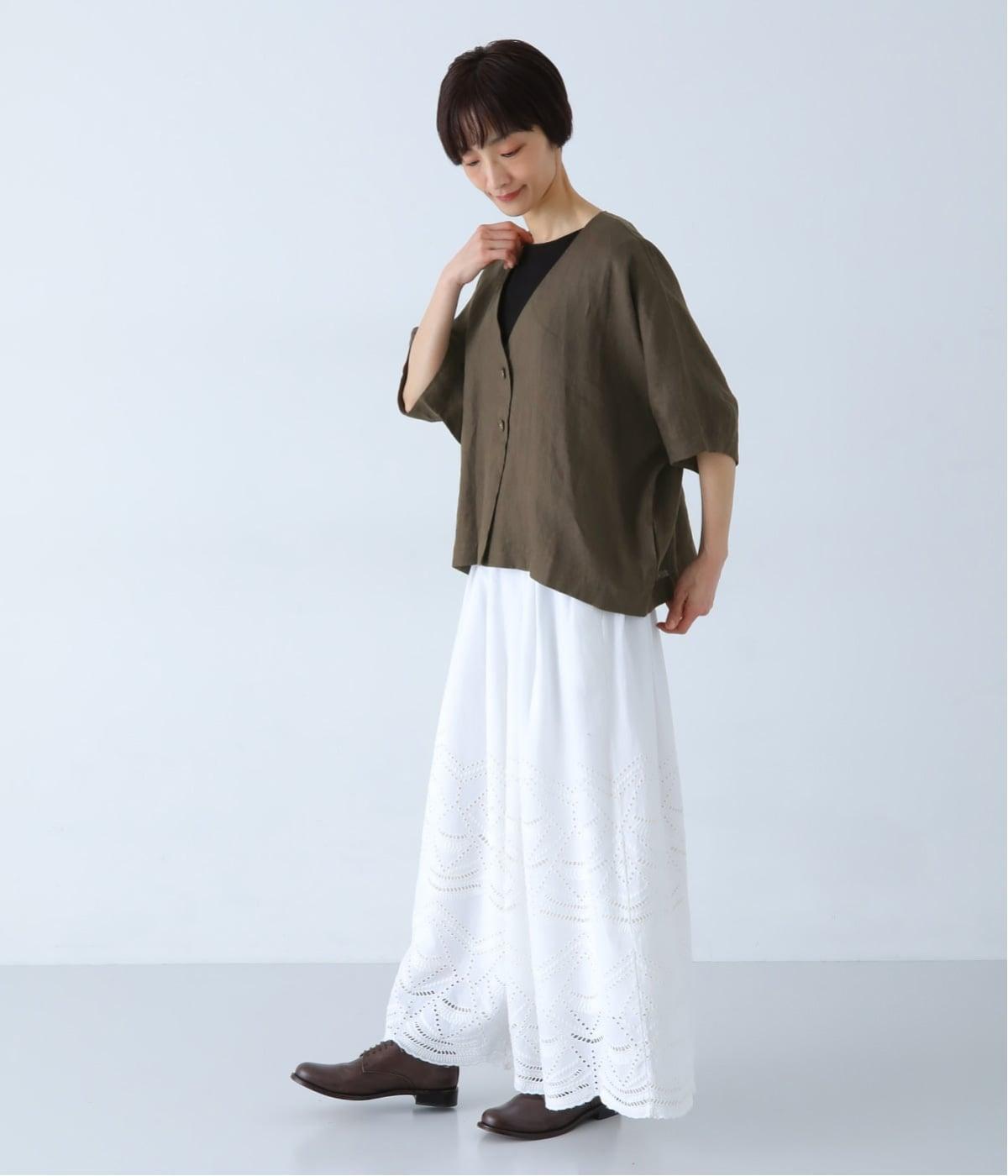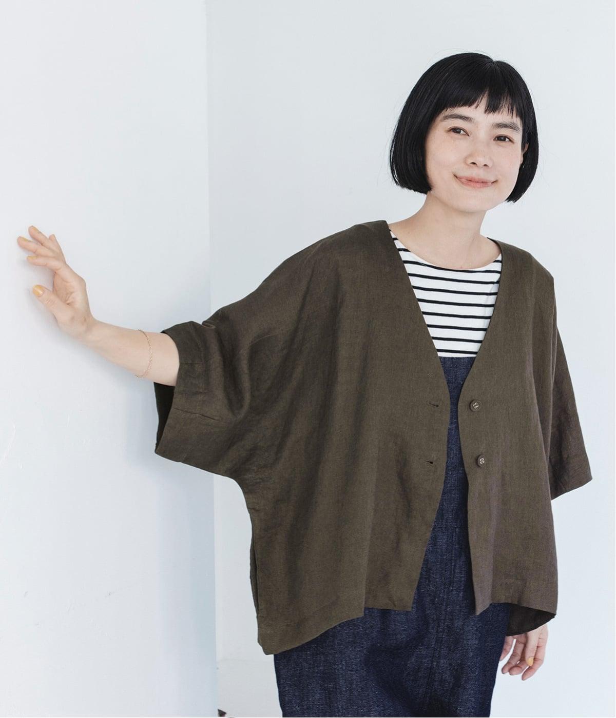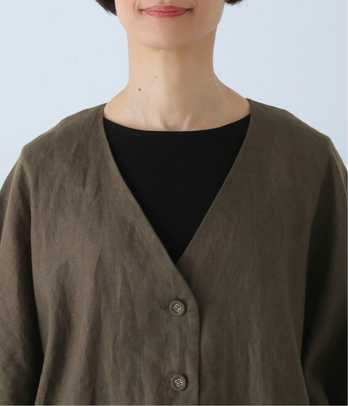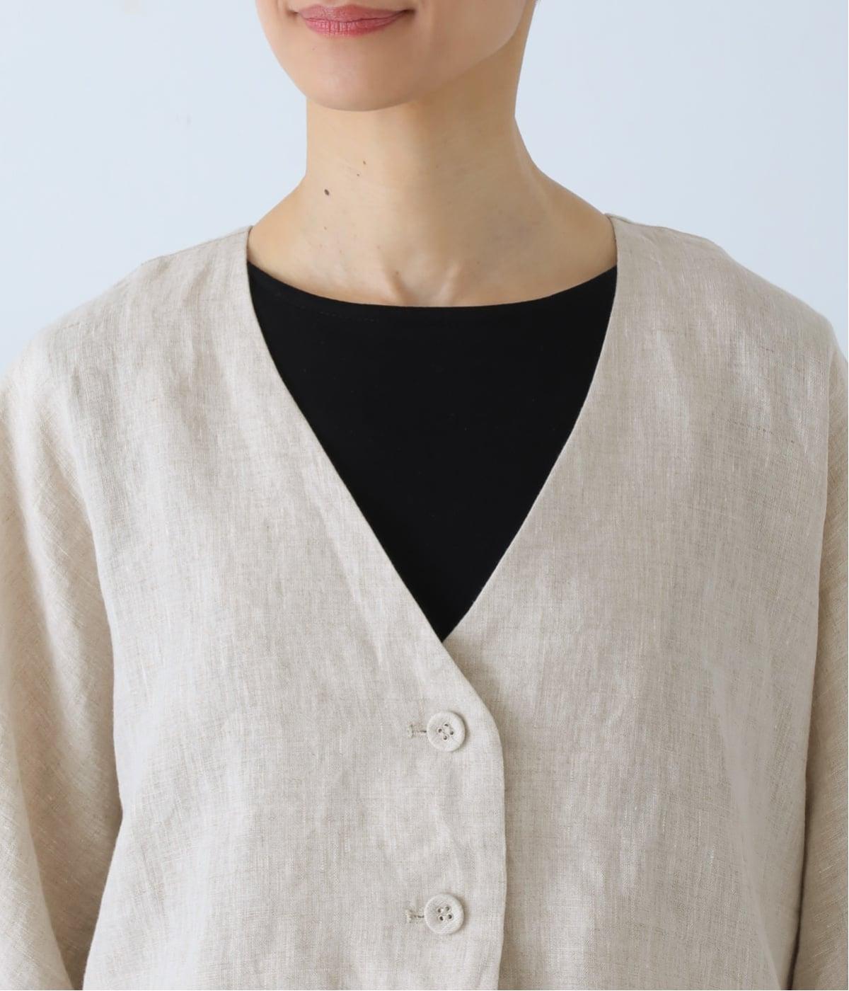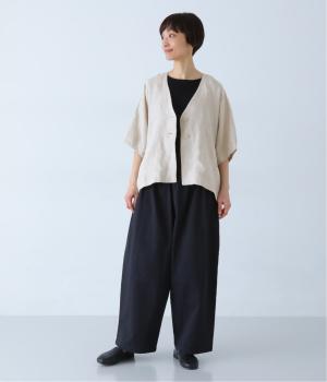 重たさを感じさせず、ふわりと軽やかに着こなせるのは、リネンならではのやさしい風合いのおかげ。