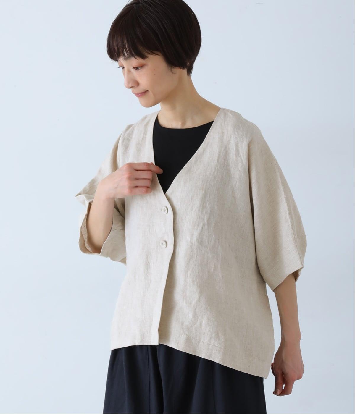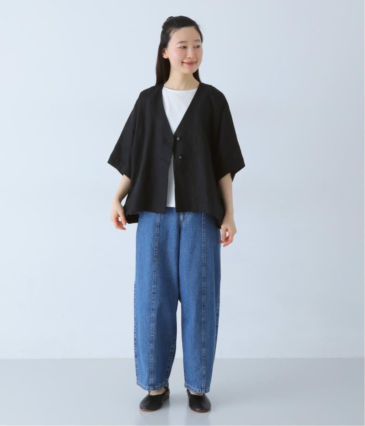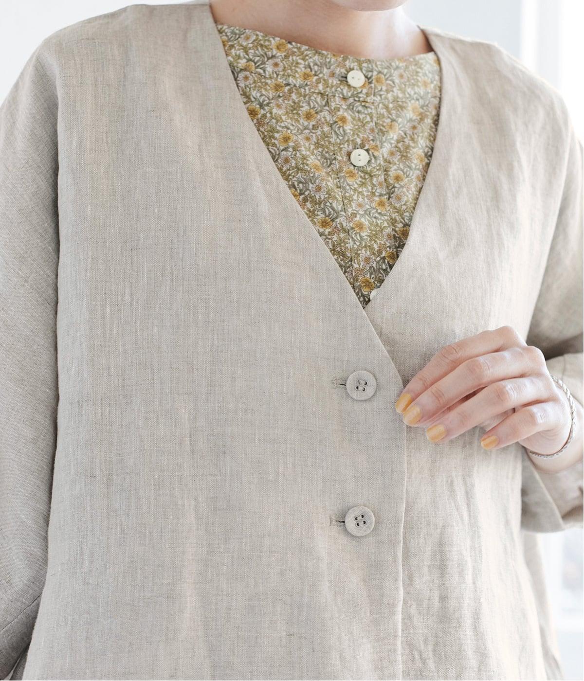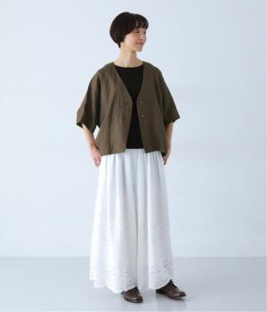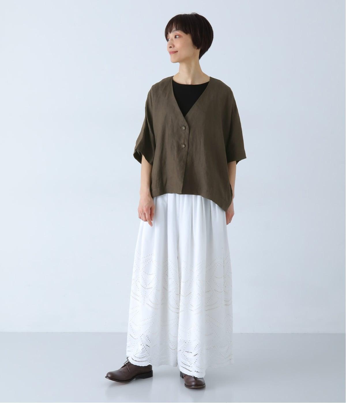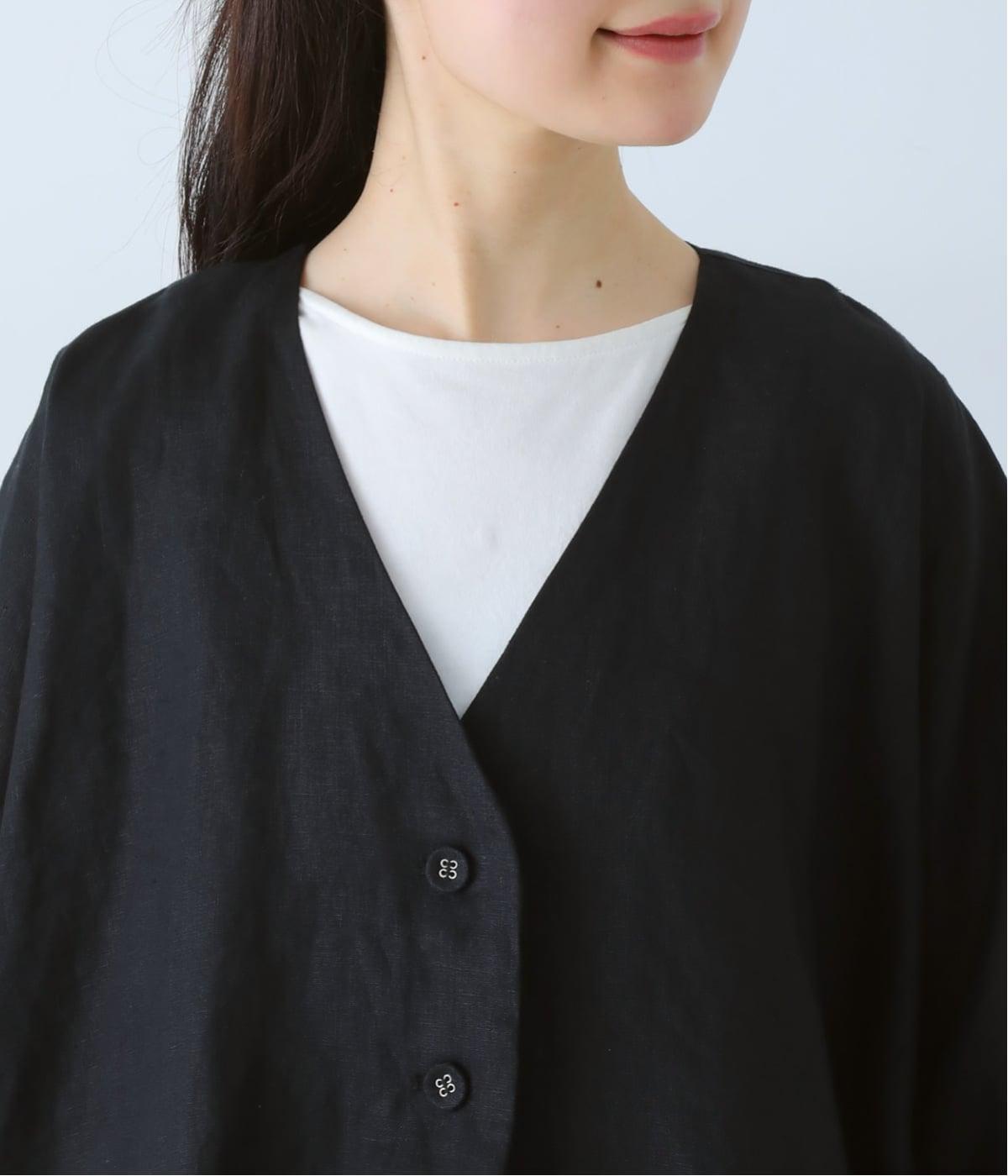 重たさを感じさせず、ふわりと軽やかに着こなせるのは、リネンならではのやさしい風合いのおかげ。
