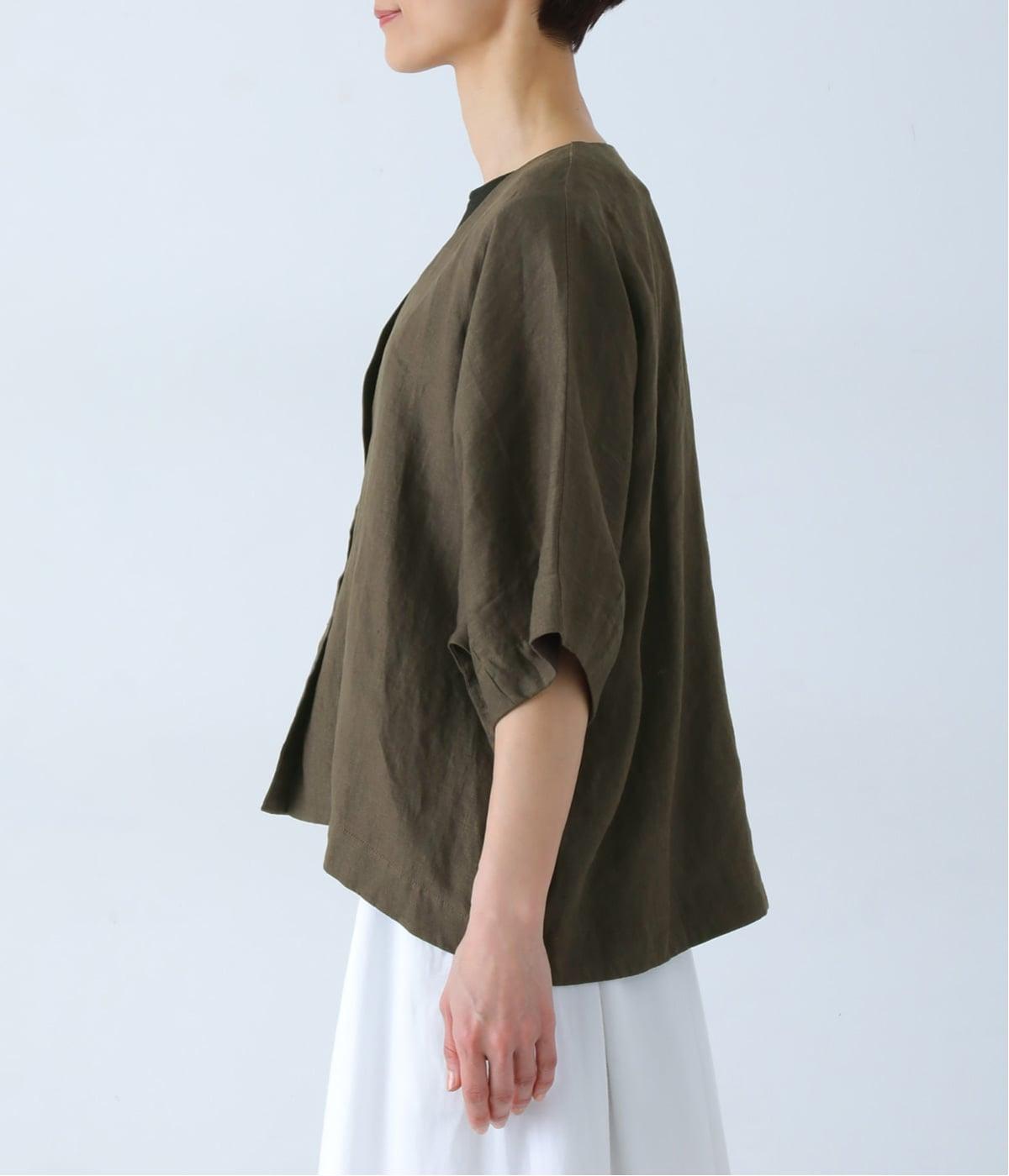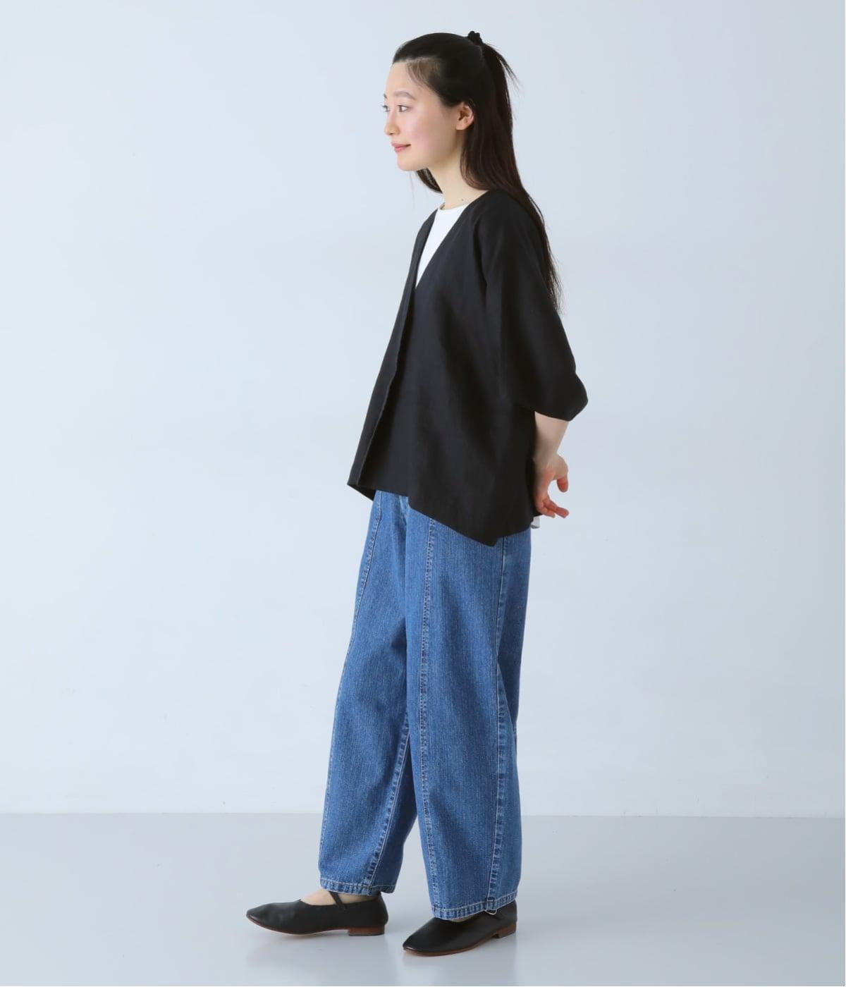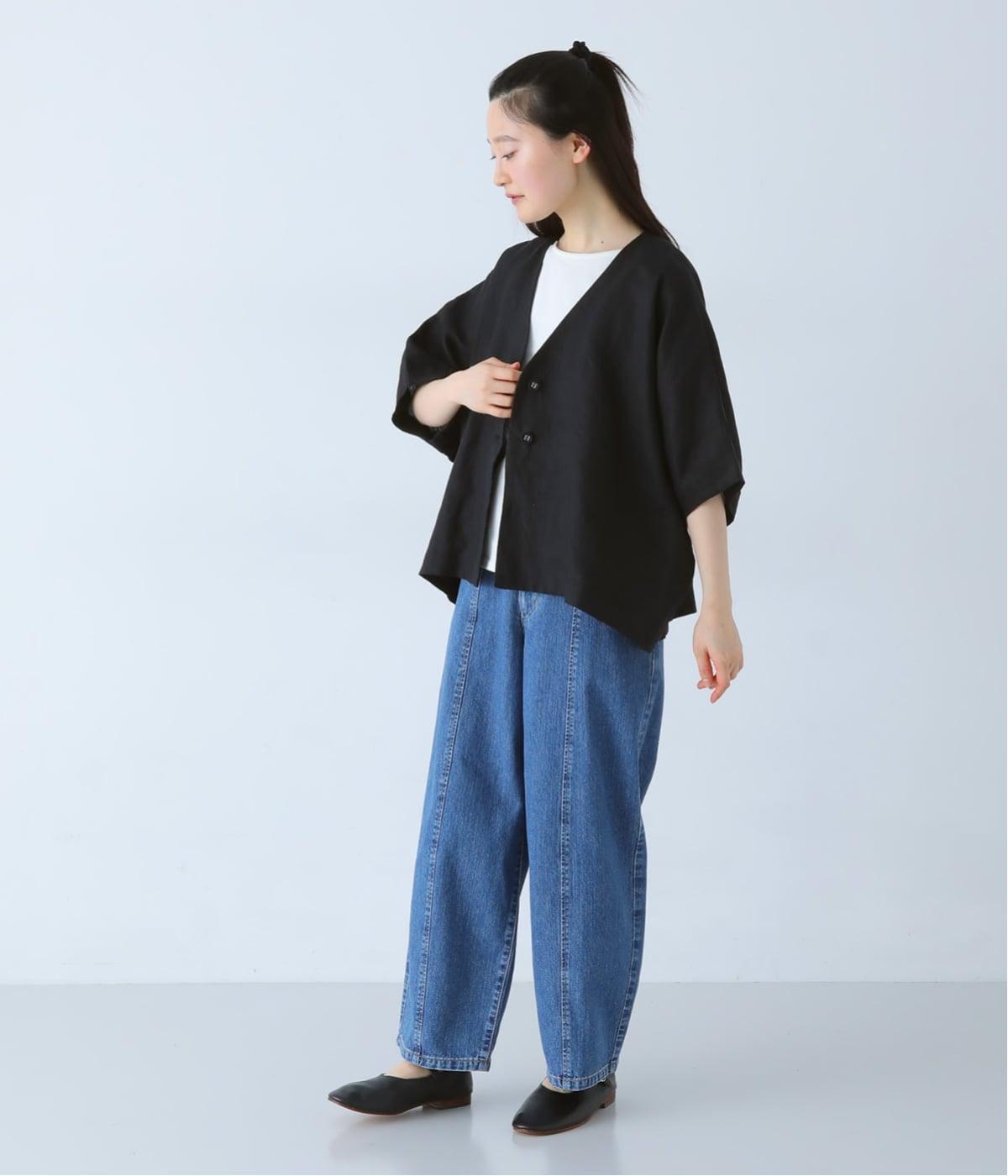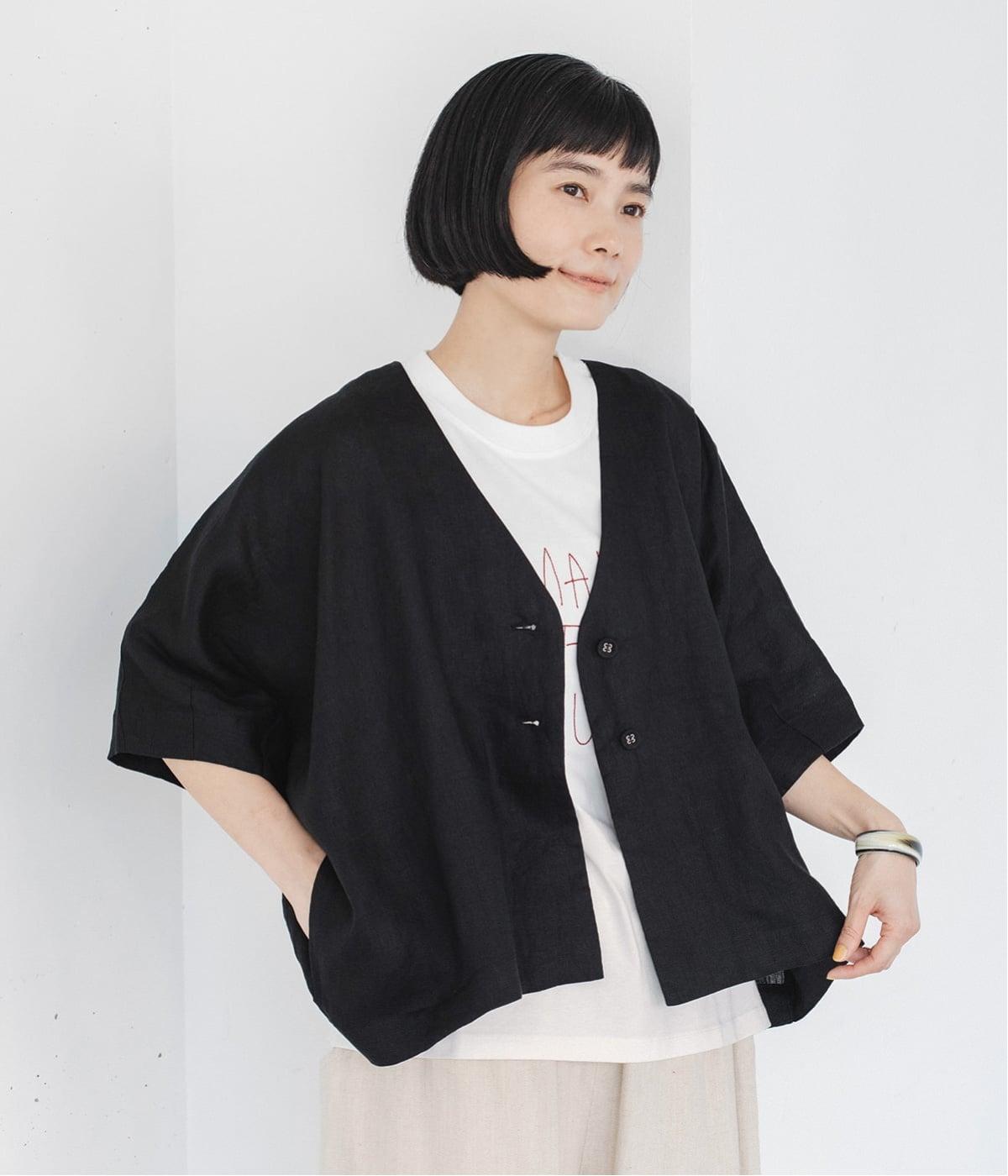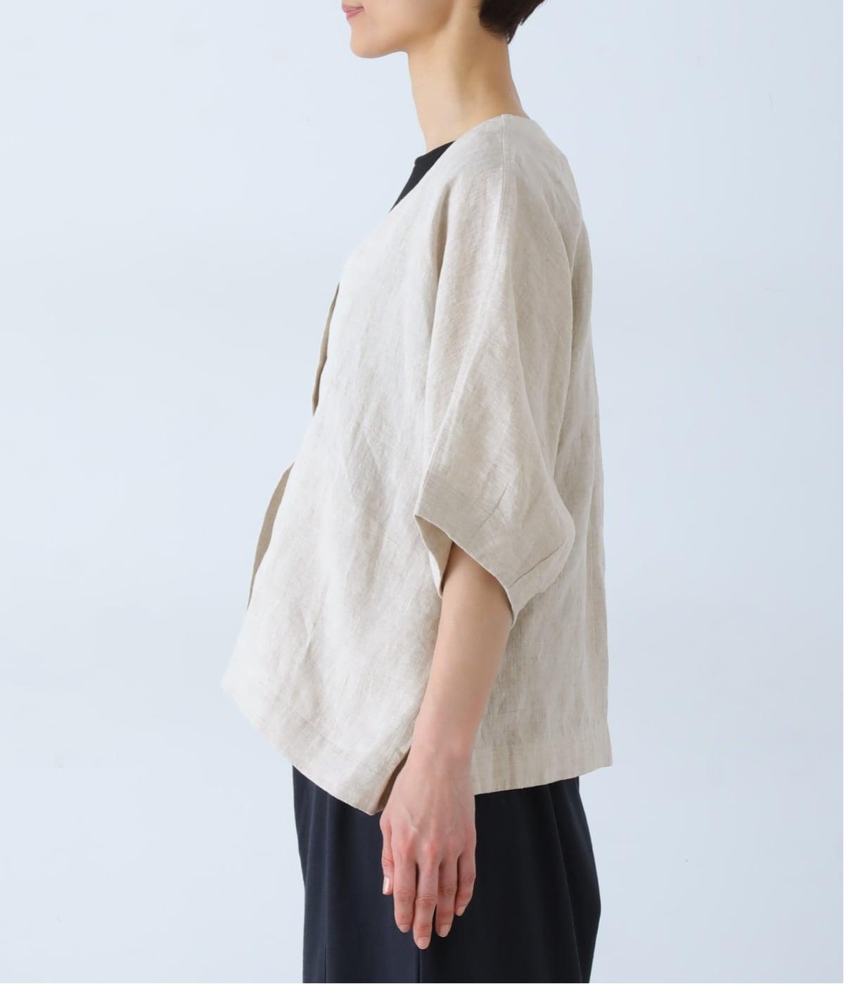 重たさを感じさせず、ふわりと軽やかに着こなせるのは、リネンならではのやさしい風合いのおかげ。