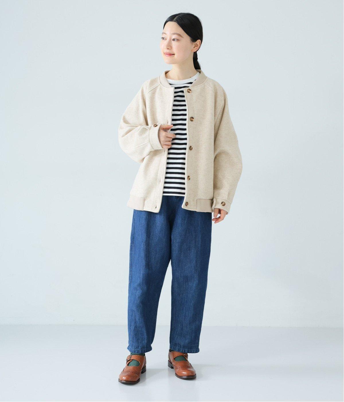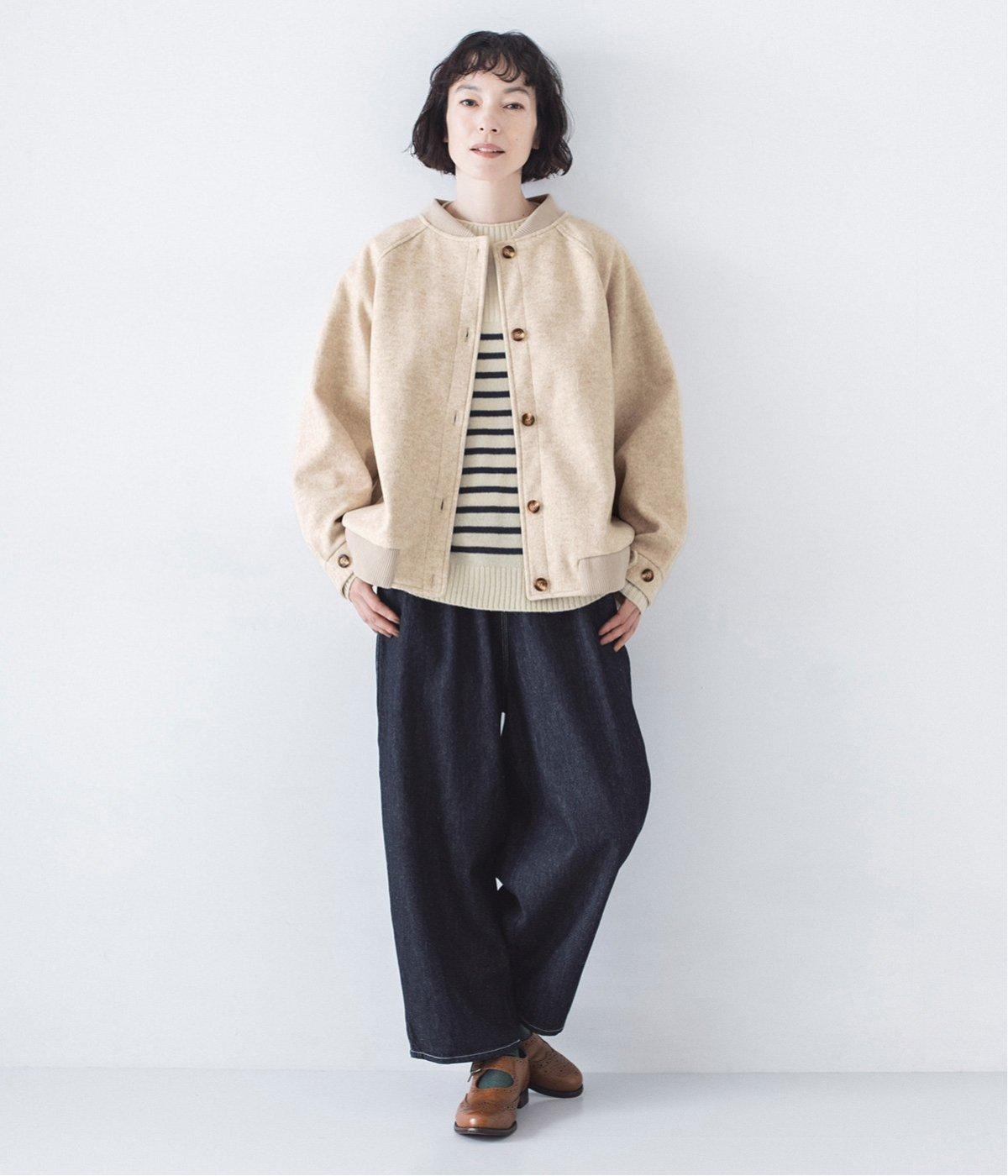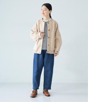 >は、自然体の装いに溶け込む穏やかなカラー。ボーダーニットにワイドデニムを合わせてさらりと羽織れば、大人の余裕を感じるこなれたコーデが完成。