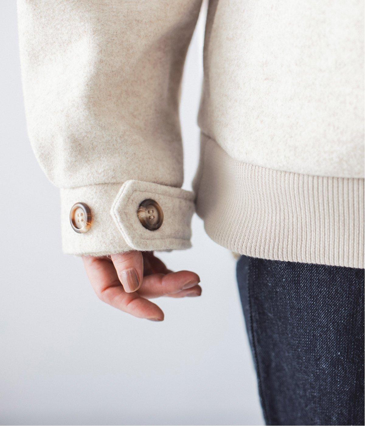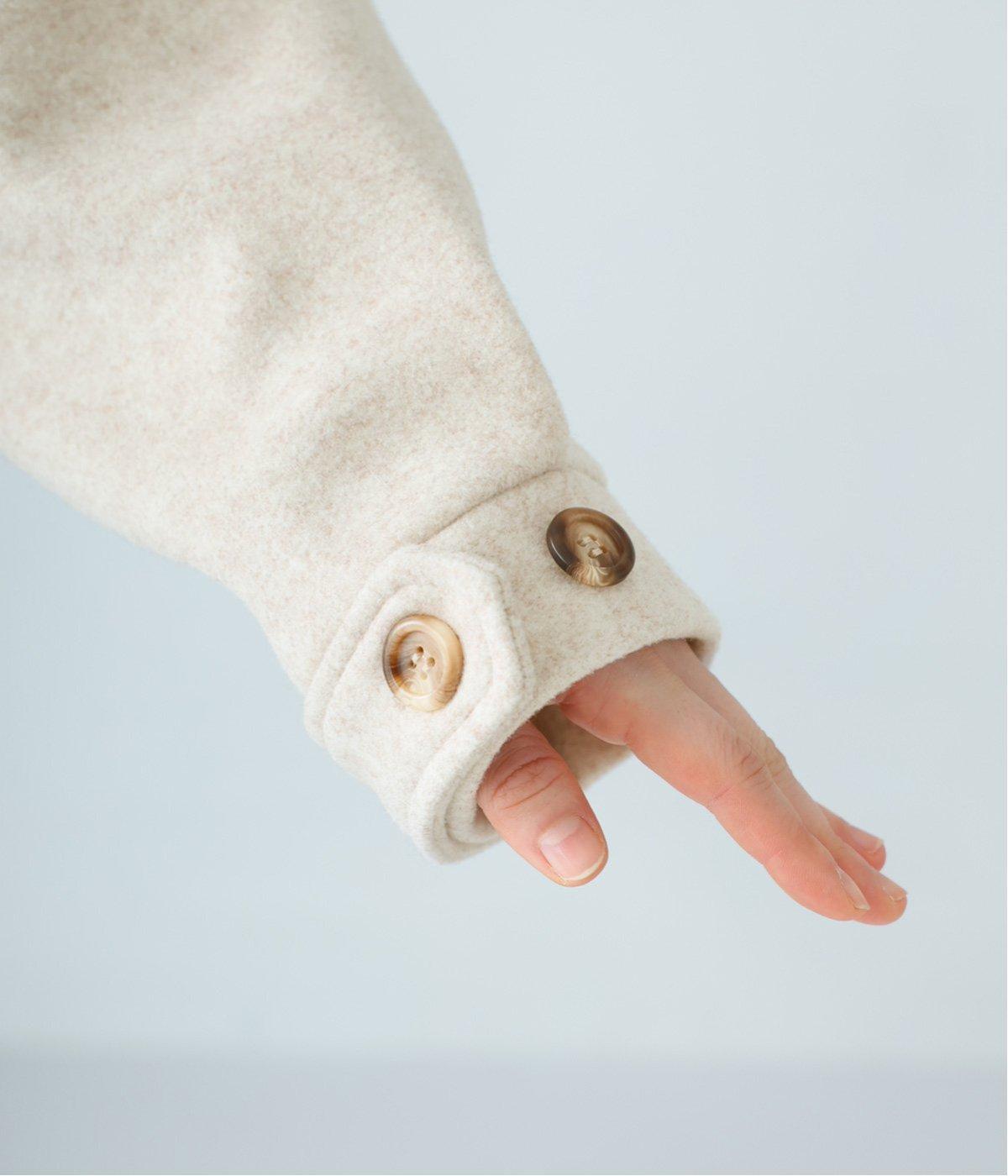 袖口はあえてリブではなく、カフスとボタンで仕立てることで、上品な印象をプラス。袖口をほんのり絞ったデザインが、冷たい空気の入り込みを防ぎ、あたたかさをしっかりキープしてくれます。