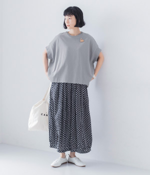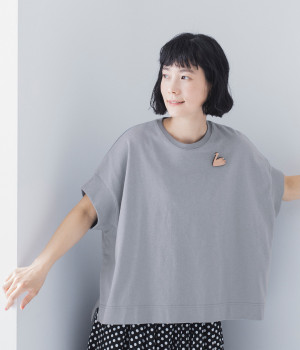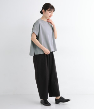 高い着まわし力が自慢の無地仕立て。難易度の高い柄ボトムとのコーディネートもさらりときまります。袖口のリブは広く作られ、さり気ないアクセントに。着心地のいいゆったりとしたワイドシルエットに仕上げています。