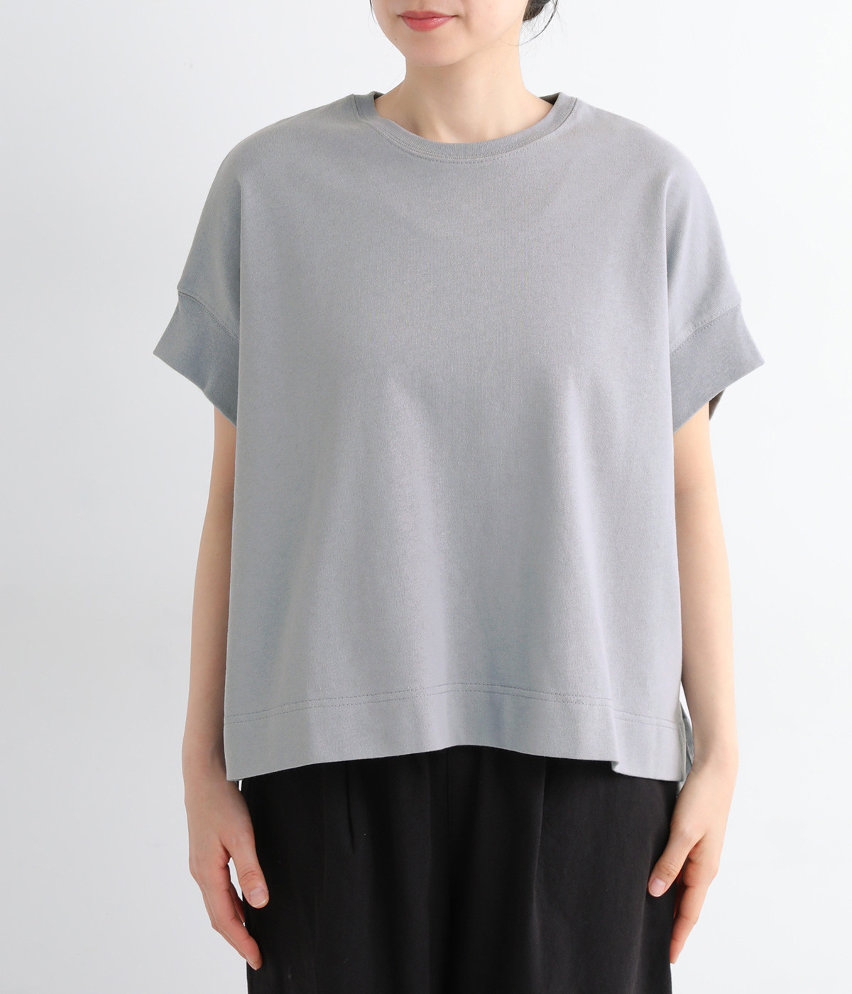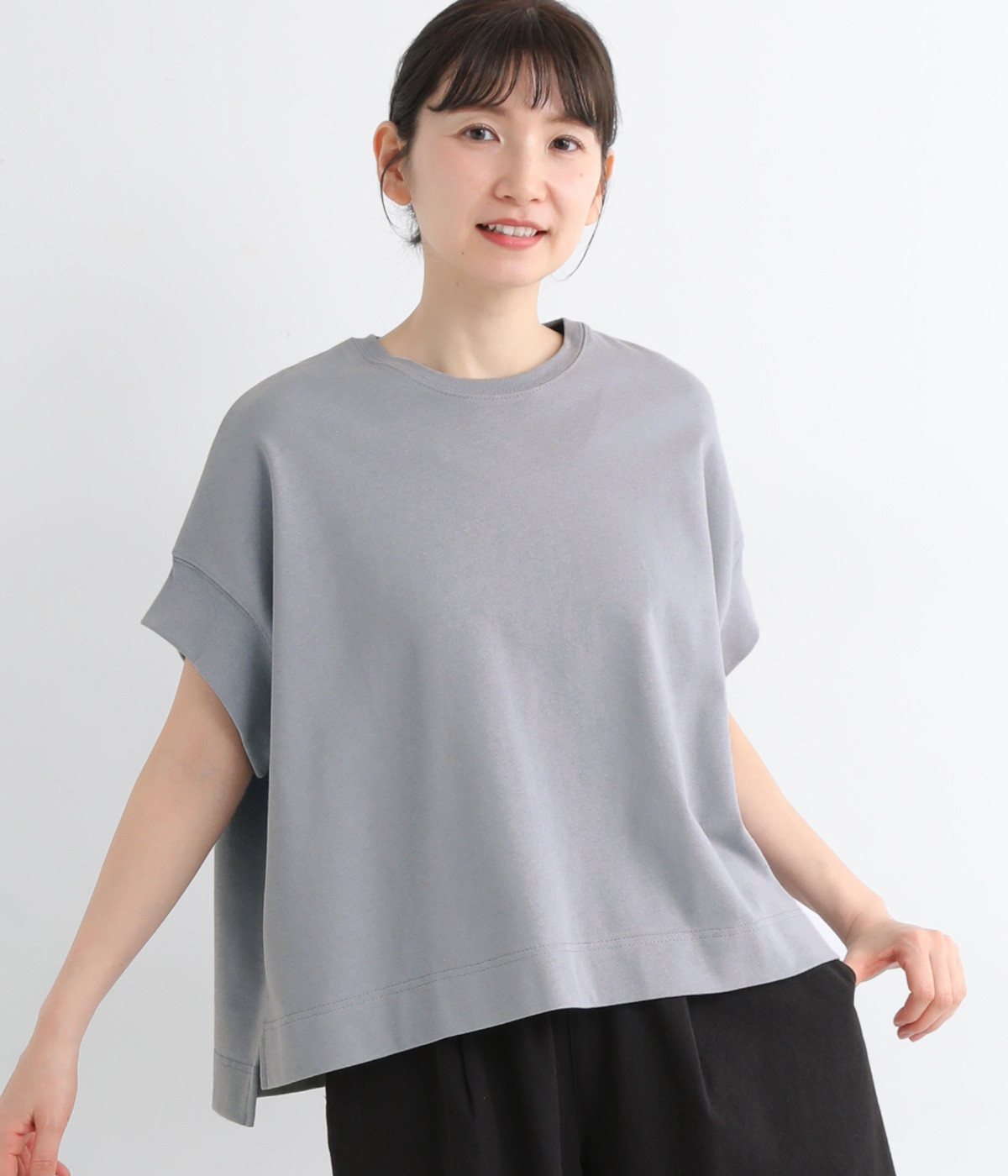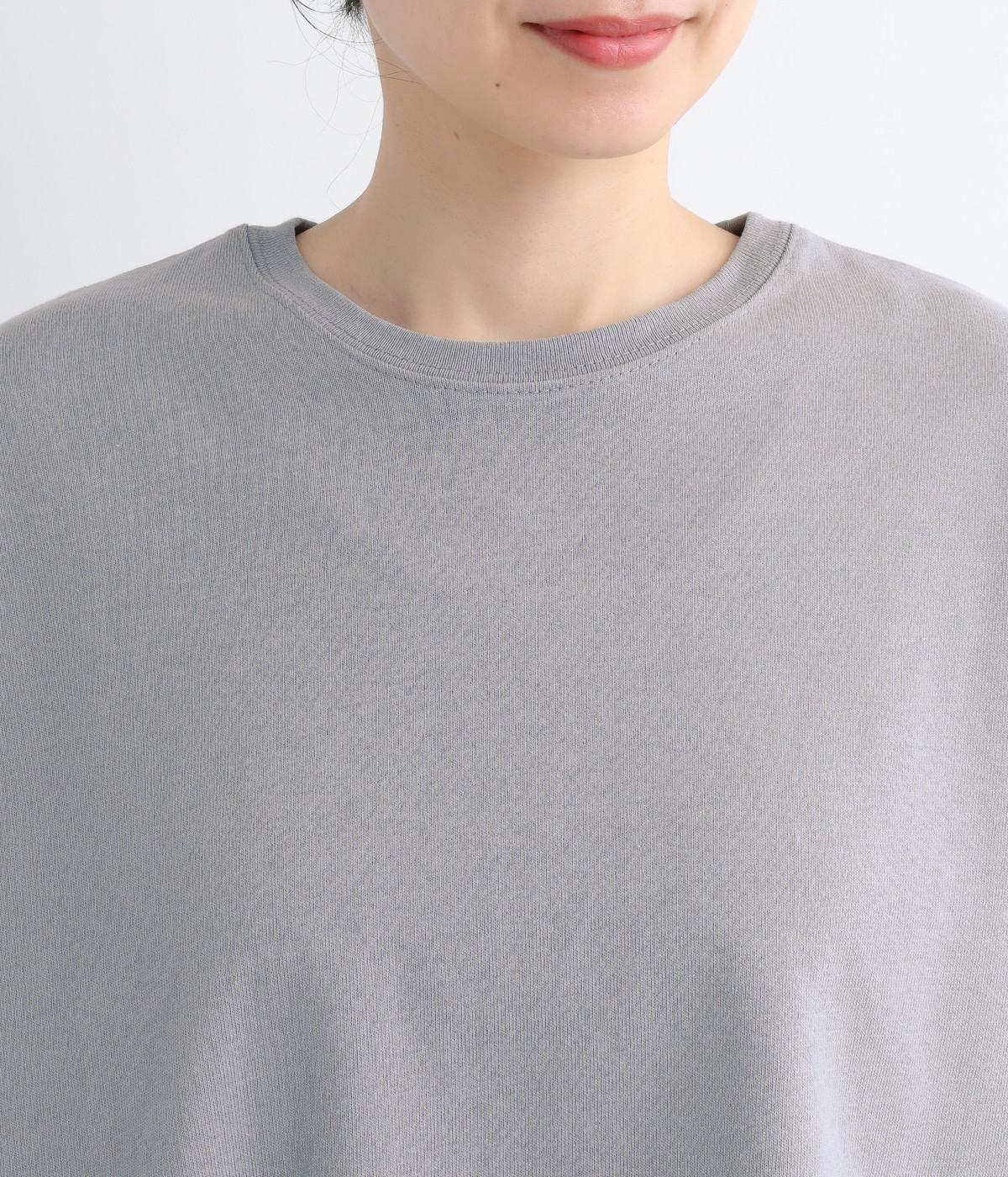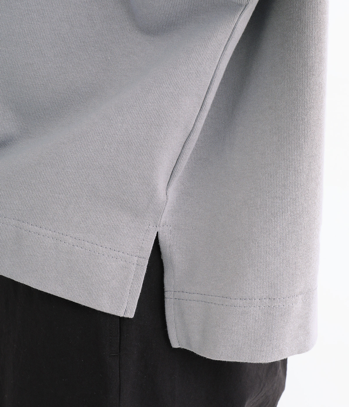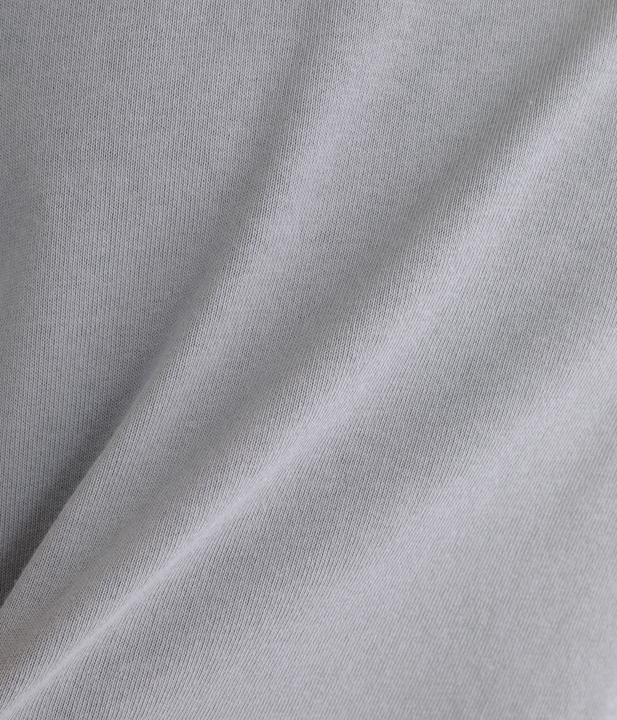 Tシャツとスウェットの間のような、やや厚みを感じるコットン生地を使用しています。UVカット機能がほどこされ、日差しが強い日の紫外線予防をアシスト。ホームケアしやすく、デイリー使いにぴったりです。