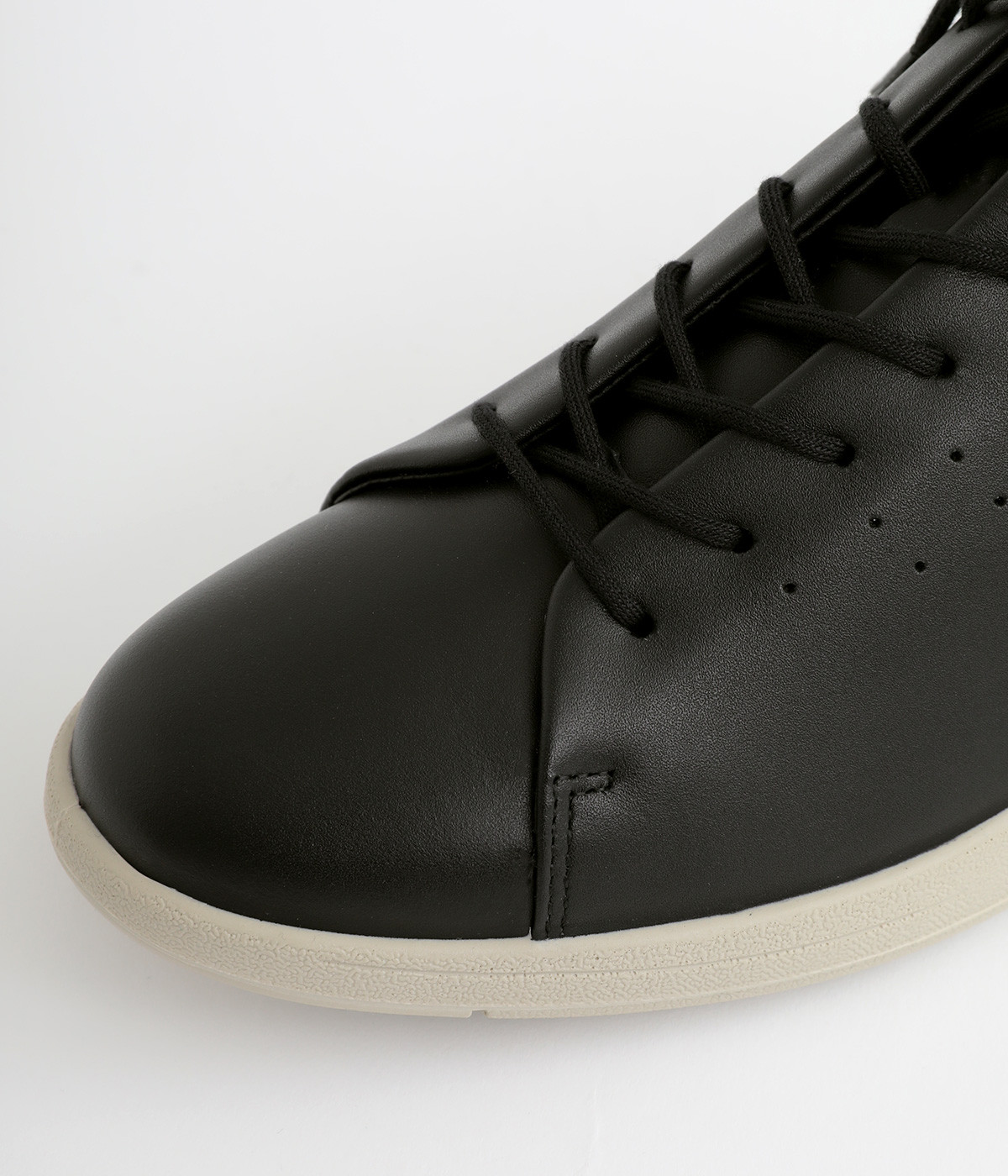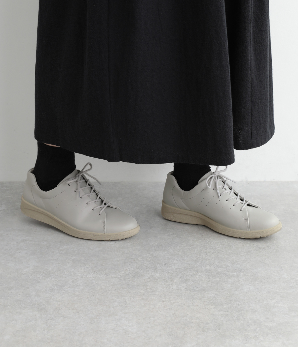 すっきりとしたフォルムがさまざまなスタイリングに合わせやすいつくり。かかと部分は足をしっかりホールドしてくれるドッグイヤー形状、カップインソールではき心地にも妥協していません。外羽根タイプで靴紐の調整もイージー。
