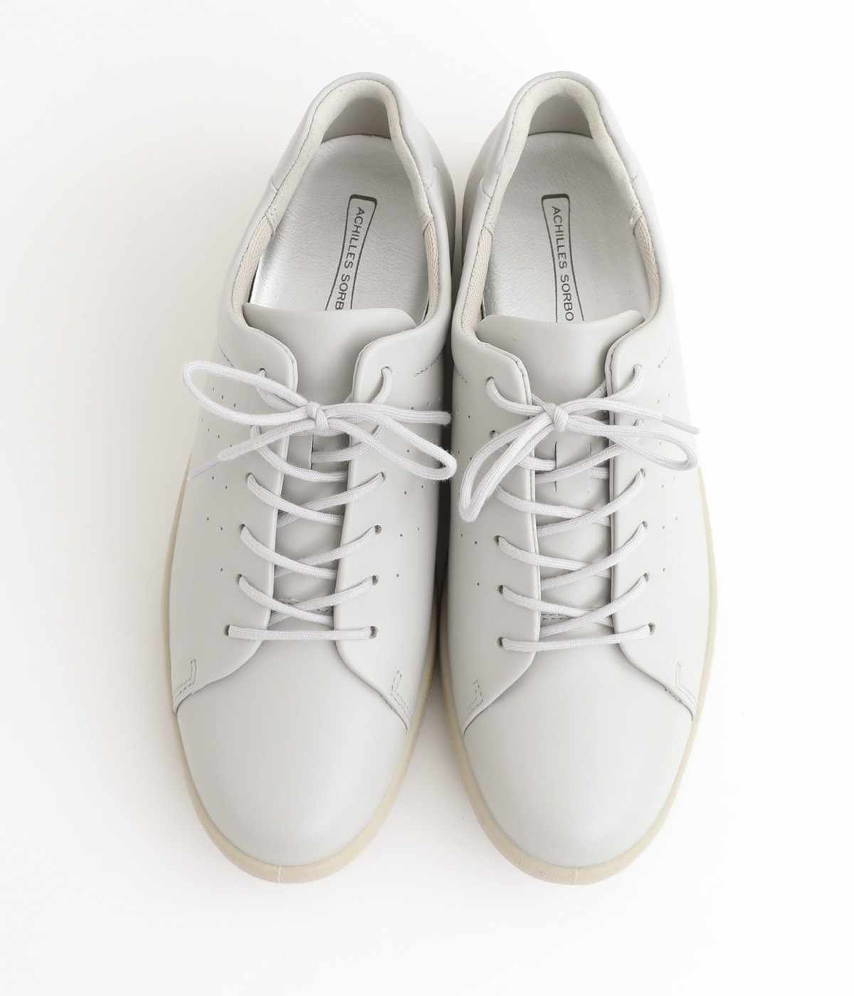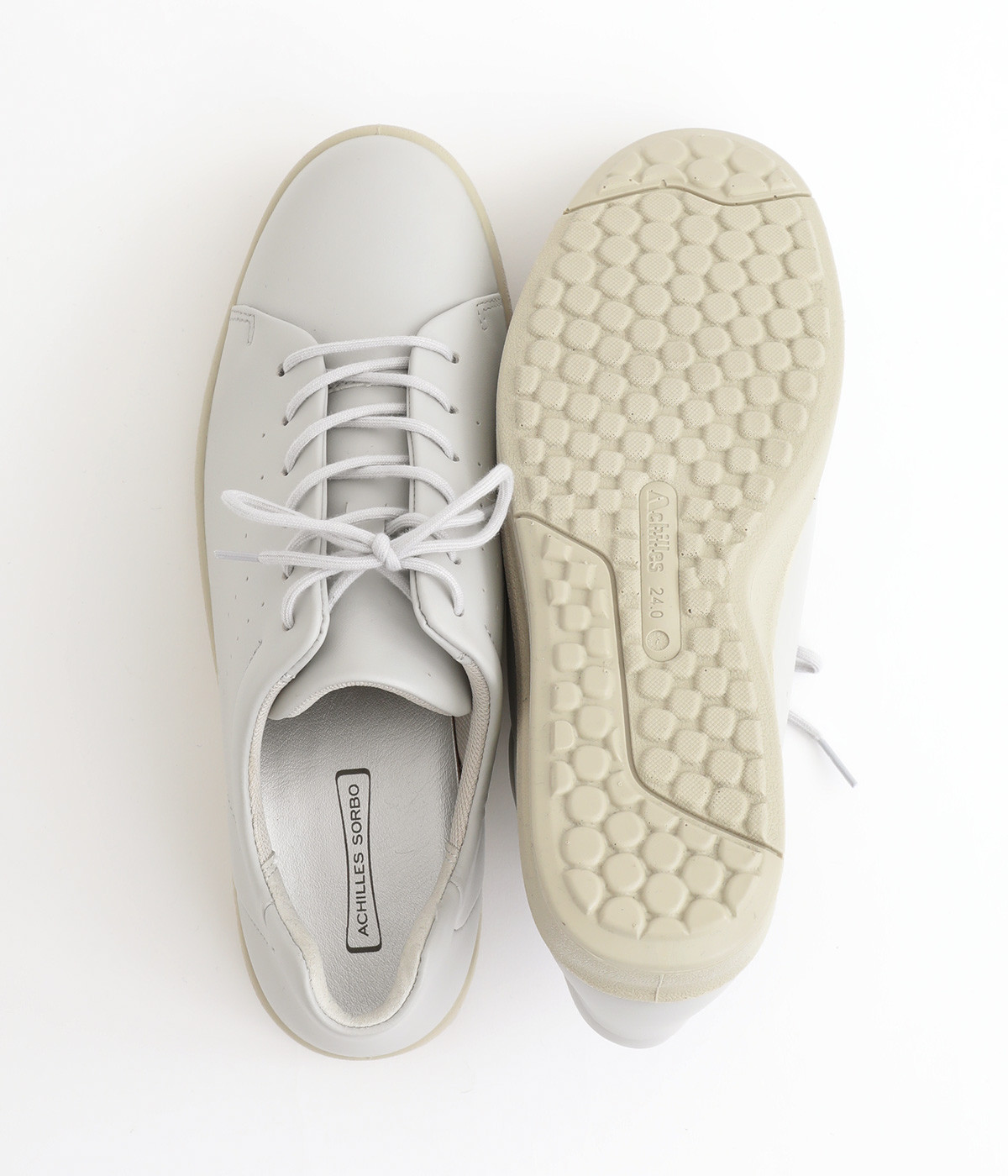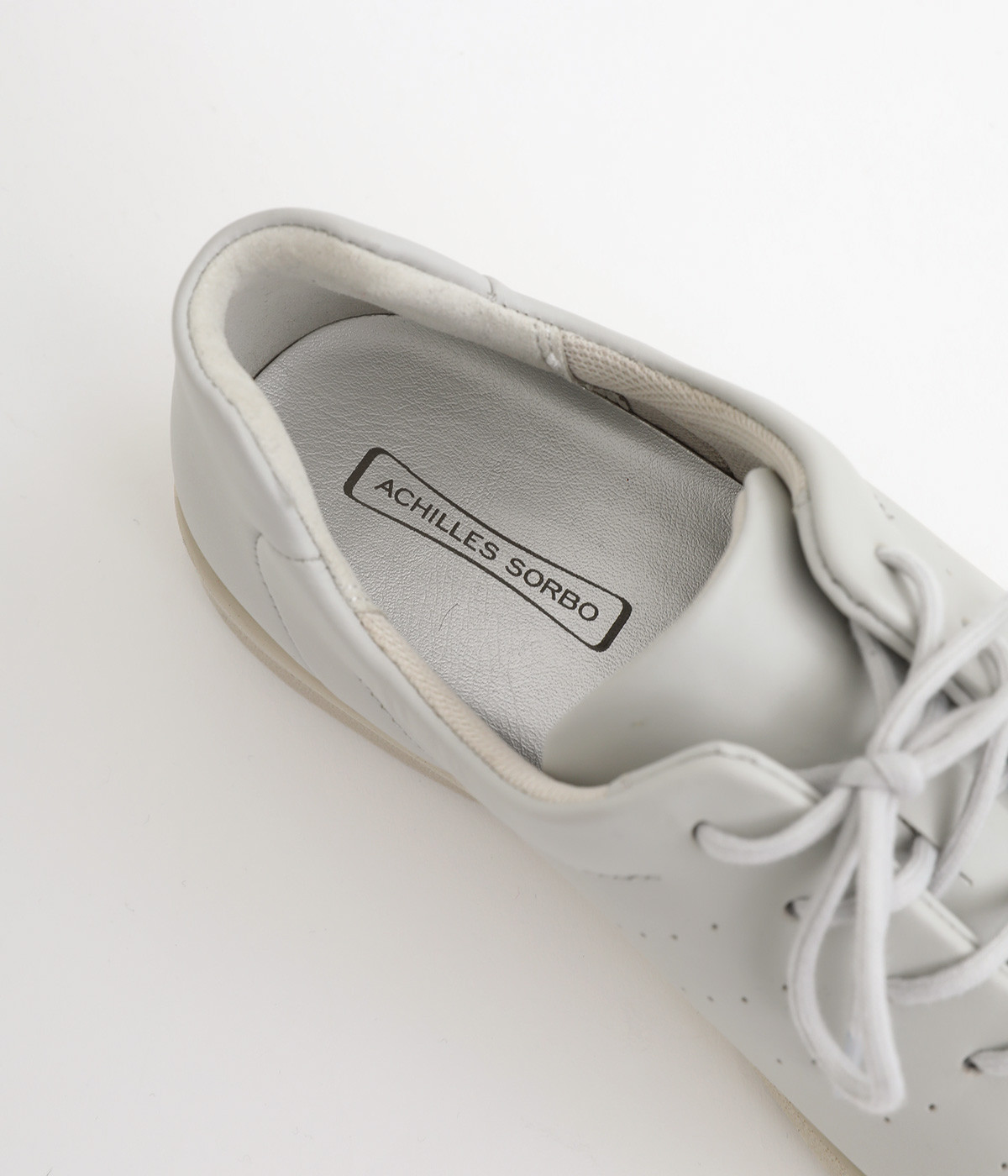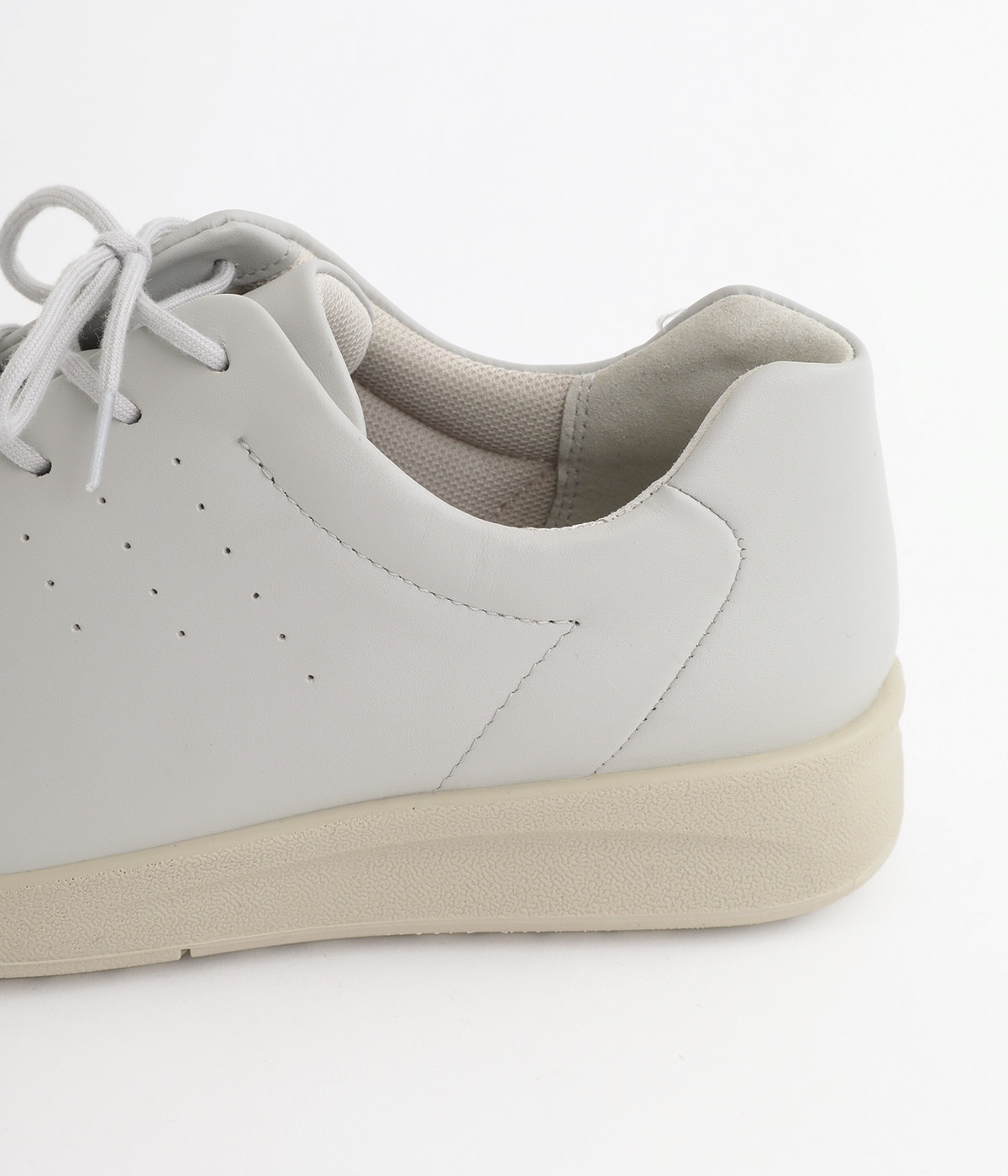 アッパーにはひかえめばツヤ感が上品で大人仕様な本革を採用。上質なレザーにパンチングをほどこして奥行きを持たせています。
