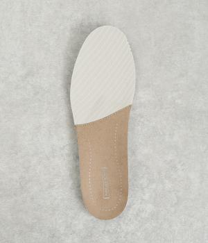 ほどよい光沢をまとったアッパーは本革を使用。つま先部分の、おだやかな輝きを放つラメ革のあしらいがポイントです。ソールには柔軟性、弾力性、軽量性、耐水性に優れた合成樹脂を使用。足あたりもやわらかく、はき心地抜群の一足です