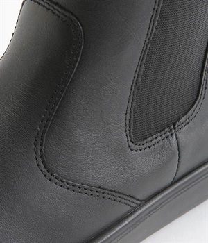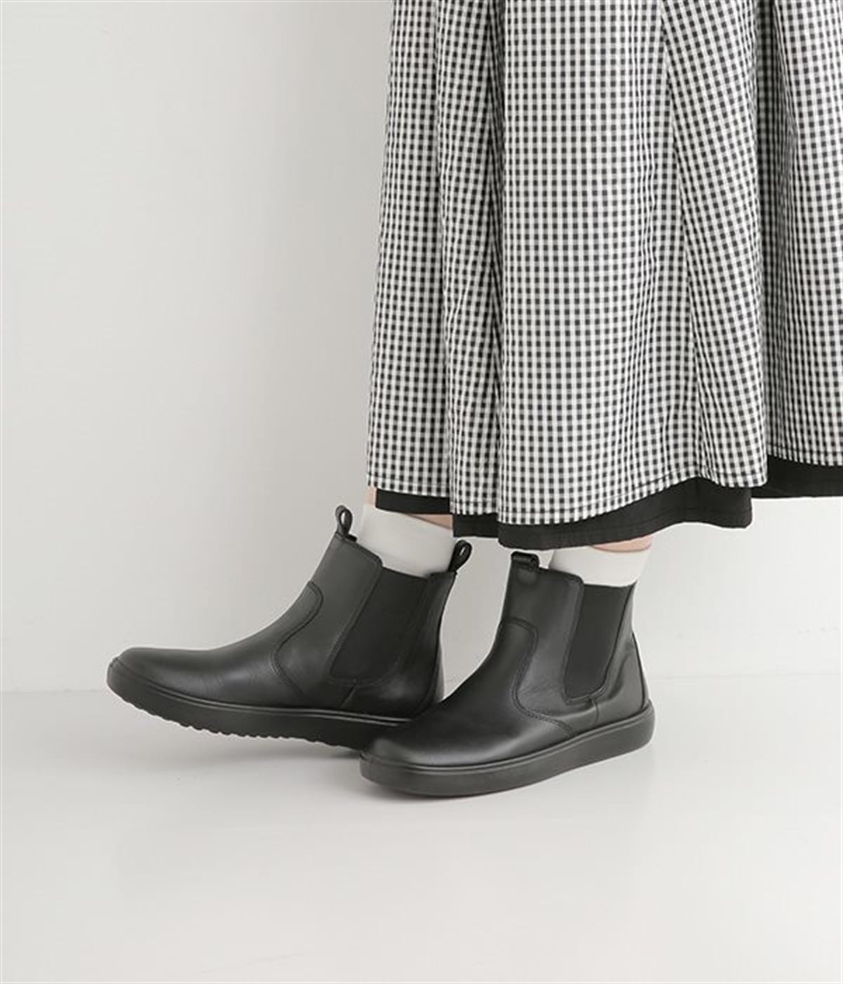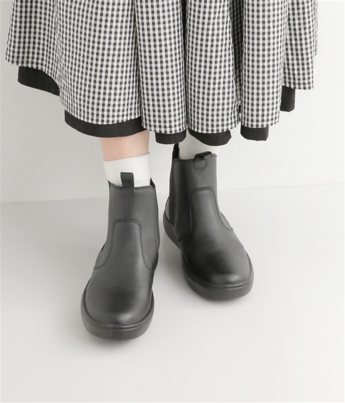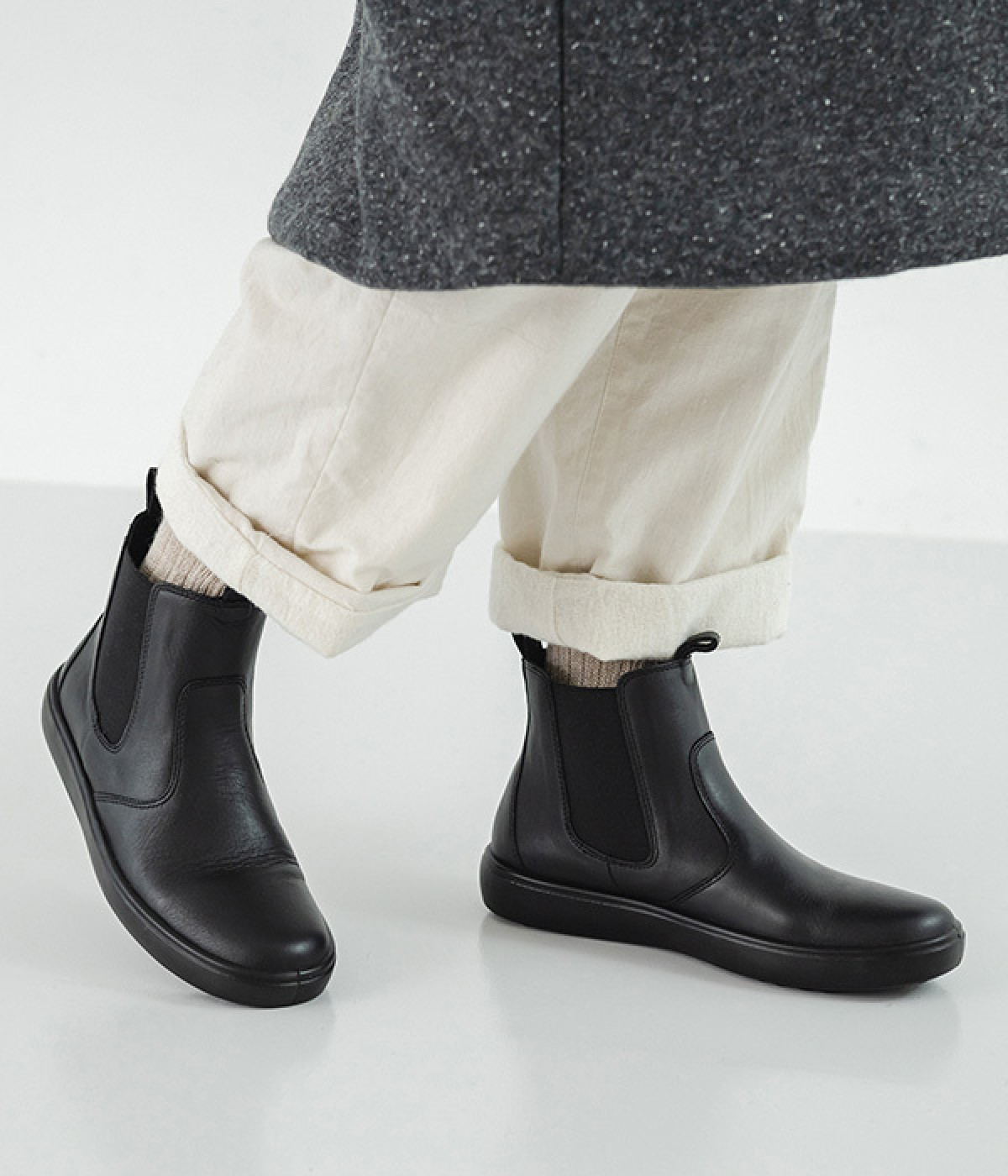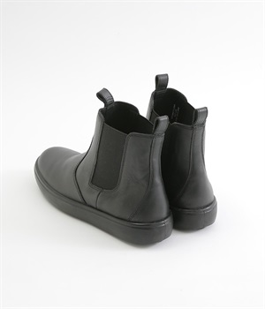足首にフィットするようなシンプルなデザインのサイドゴアブーツ。すらりとした足もとを作り、カジュアルにもきれいめな装いにも使える万能な一足です。アッパーにはツヤのある上質な風合いの牛革を採用。はき続けるほどにやわらかくなじみ、自分だけの一足に育っていきます。前後のタブと両サイドのゴムで、脱ぎはきがスムーズなのもうれしいポイント。