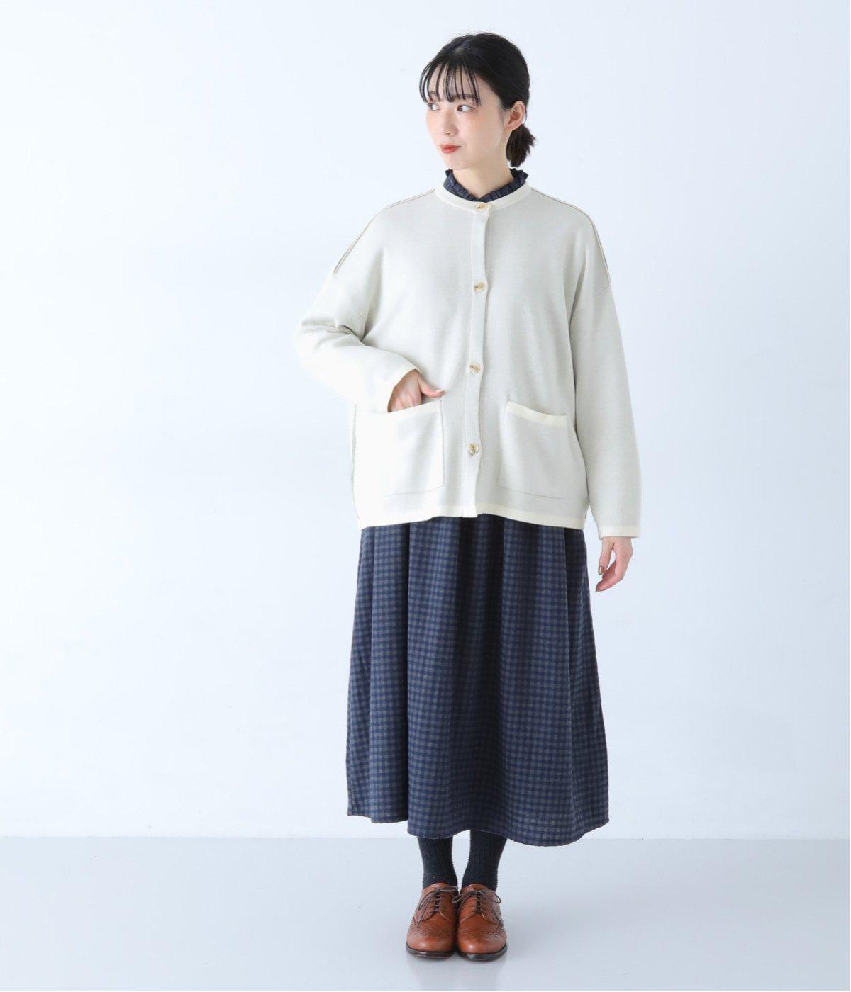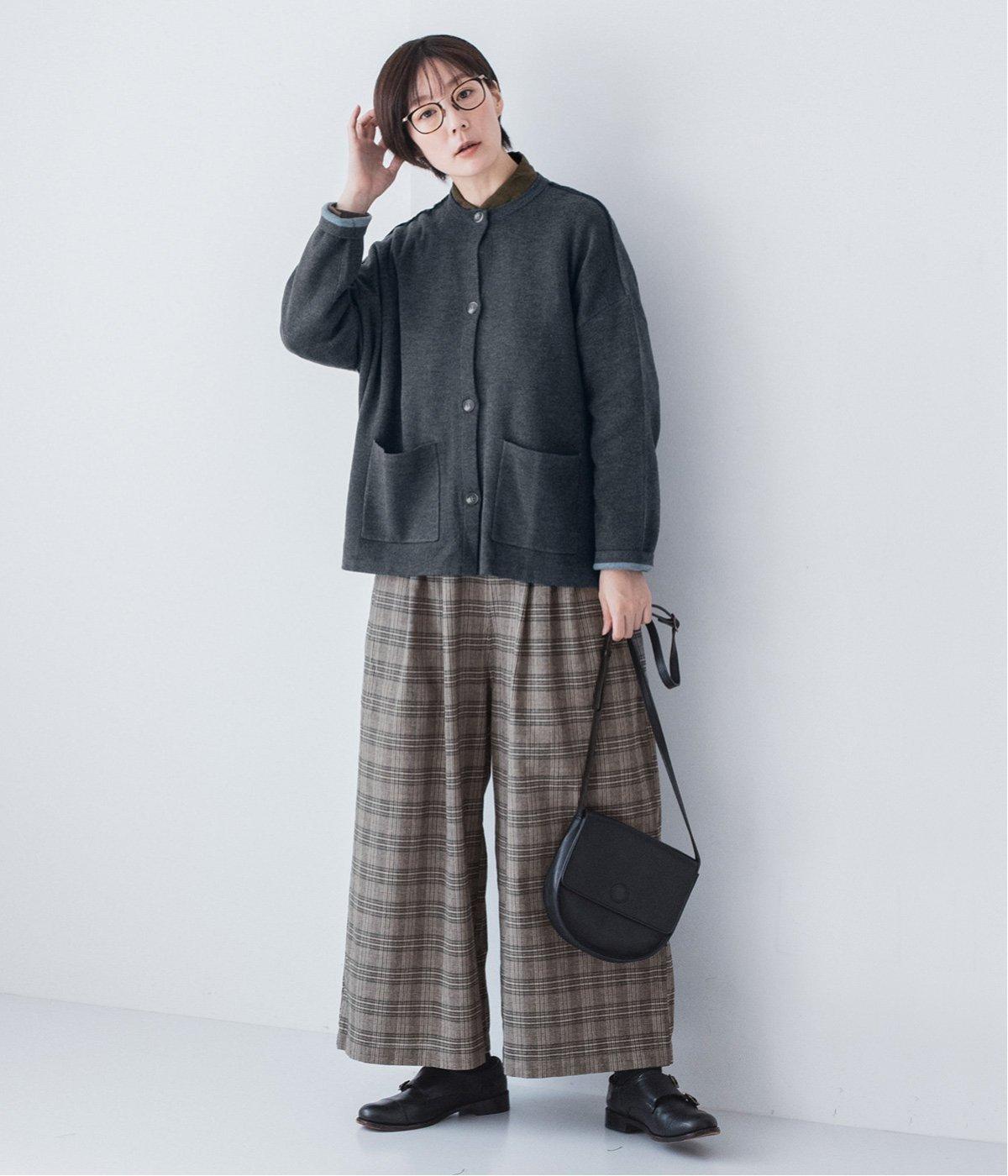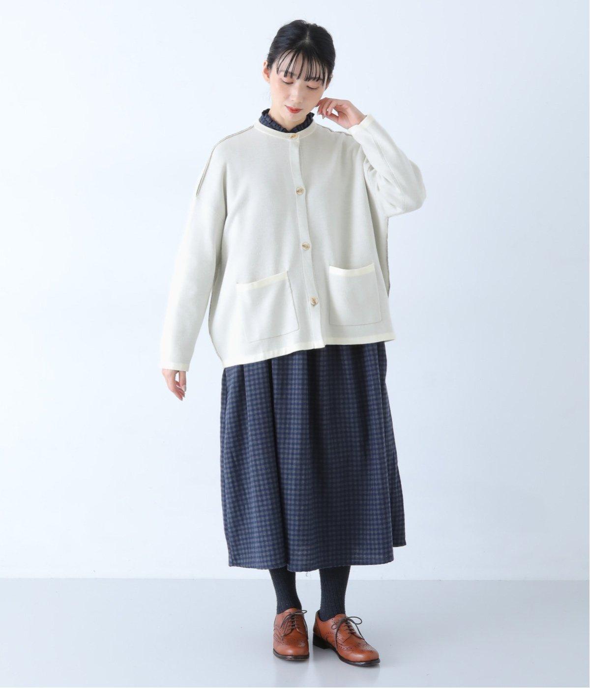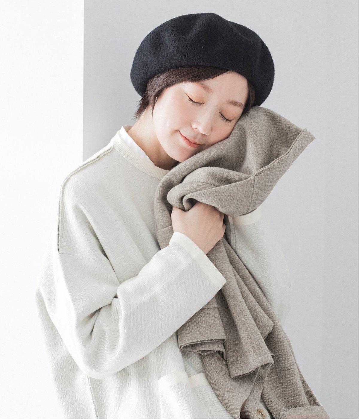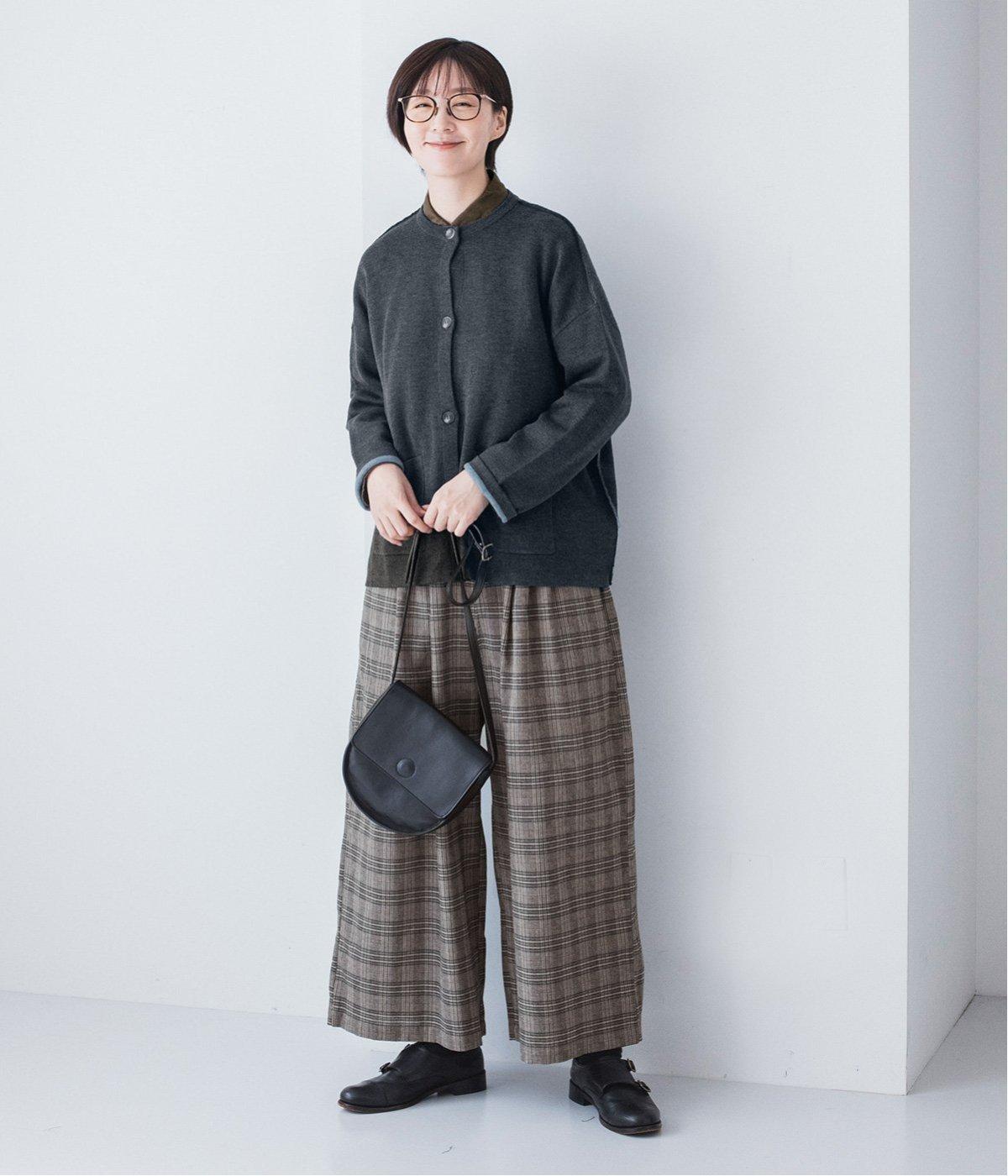 ウール混のあたたくソフトな風合いのニットを使用。チクチクしにくい混紡素材なので、素肌に触れても安心です。落ち感があるので、体のラインを拾いにくいのもうれしいポイント。