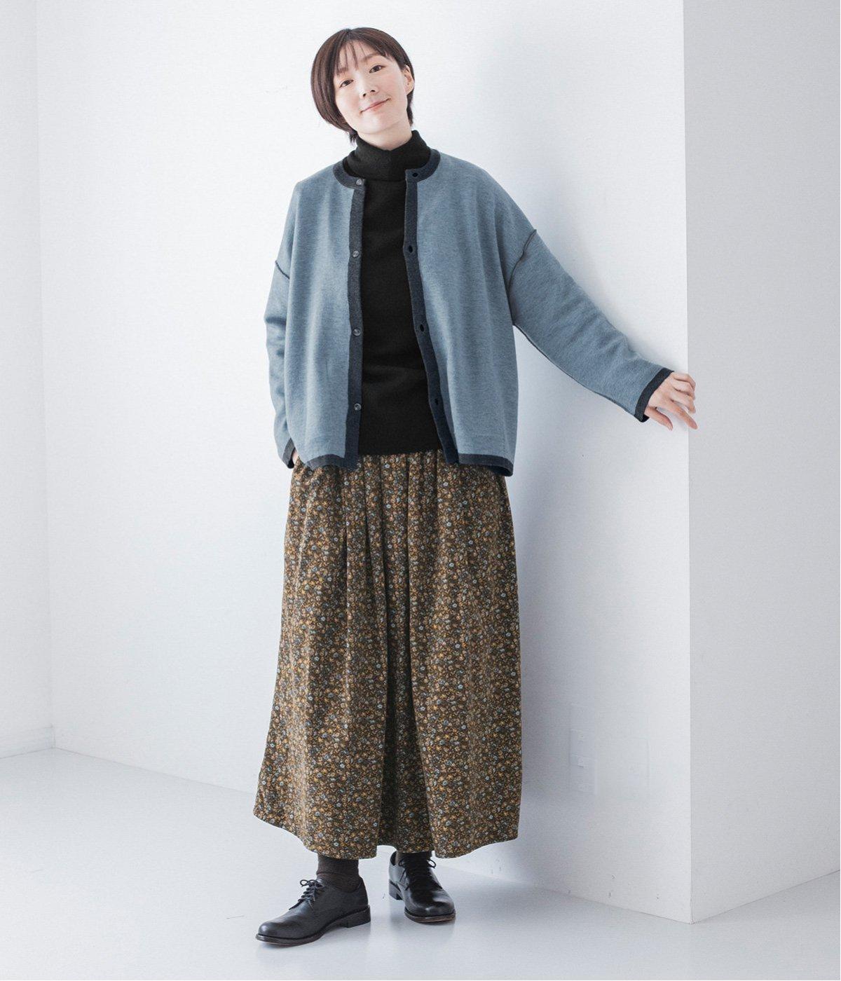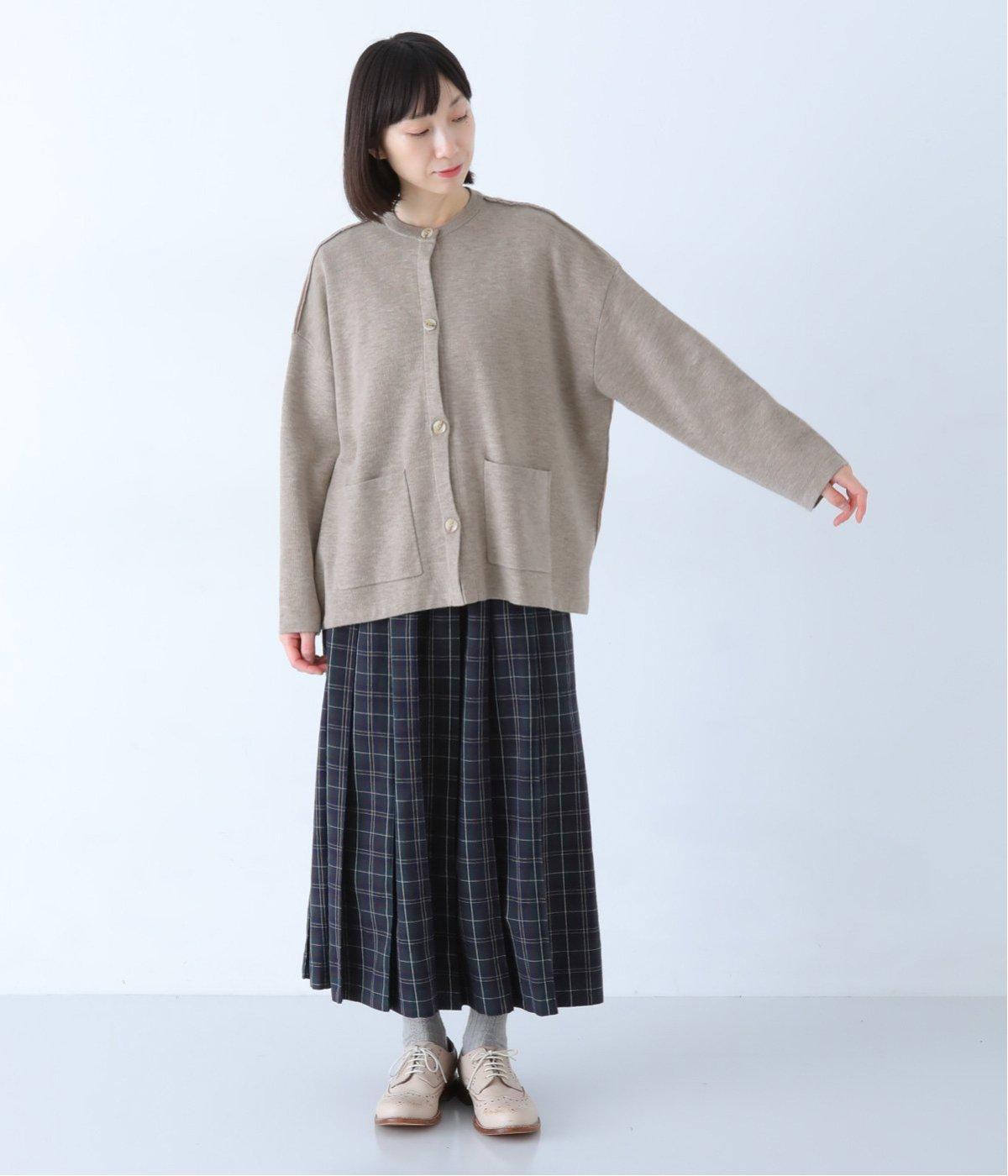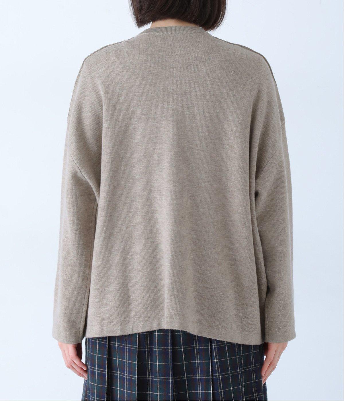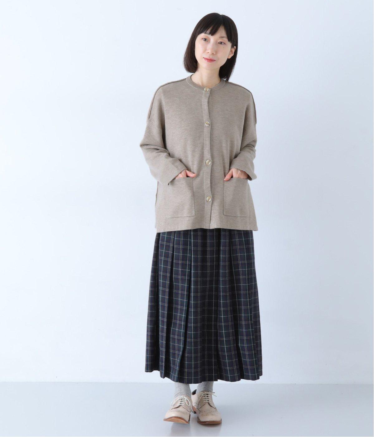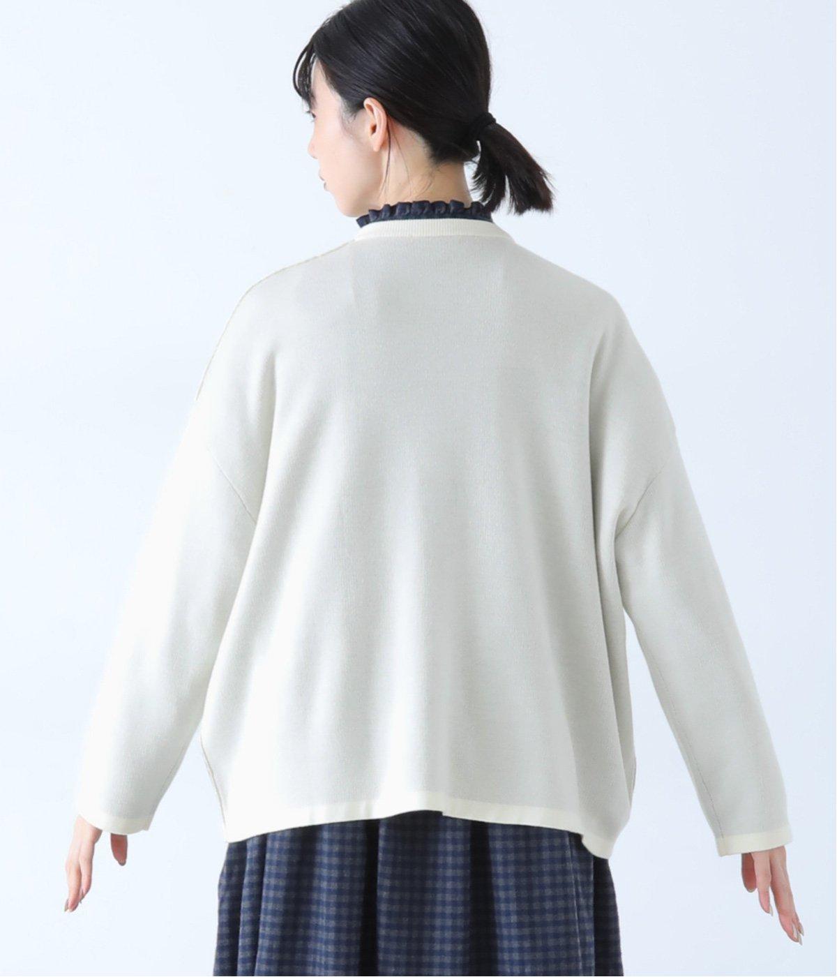 ウール混のあたたくソフトな風合いのニットを使用。チクチクしにくい混紡素材なので、素肌に触れても安心です。落ち感があるので、体のラインを拾いにくいのもうれしいポイント。