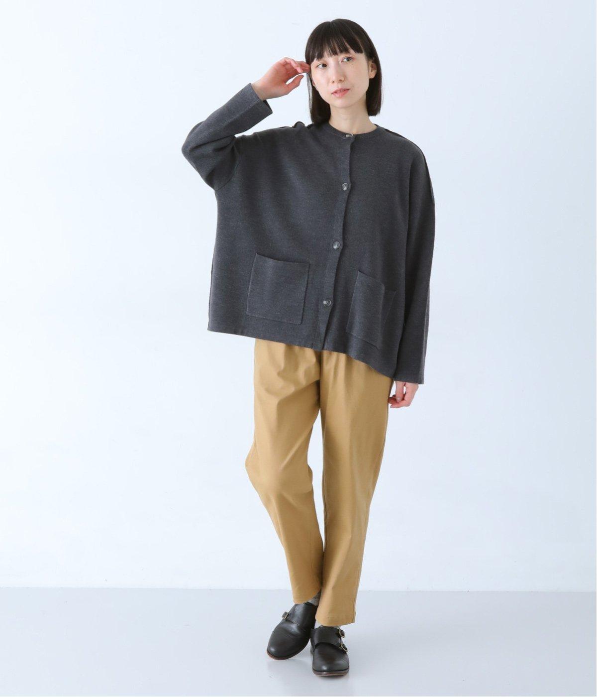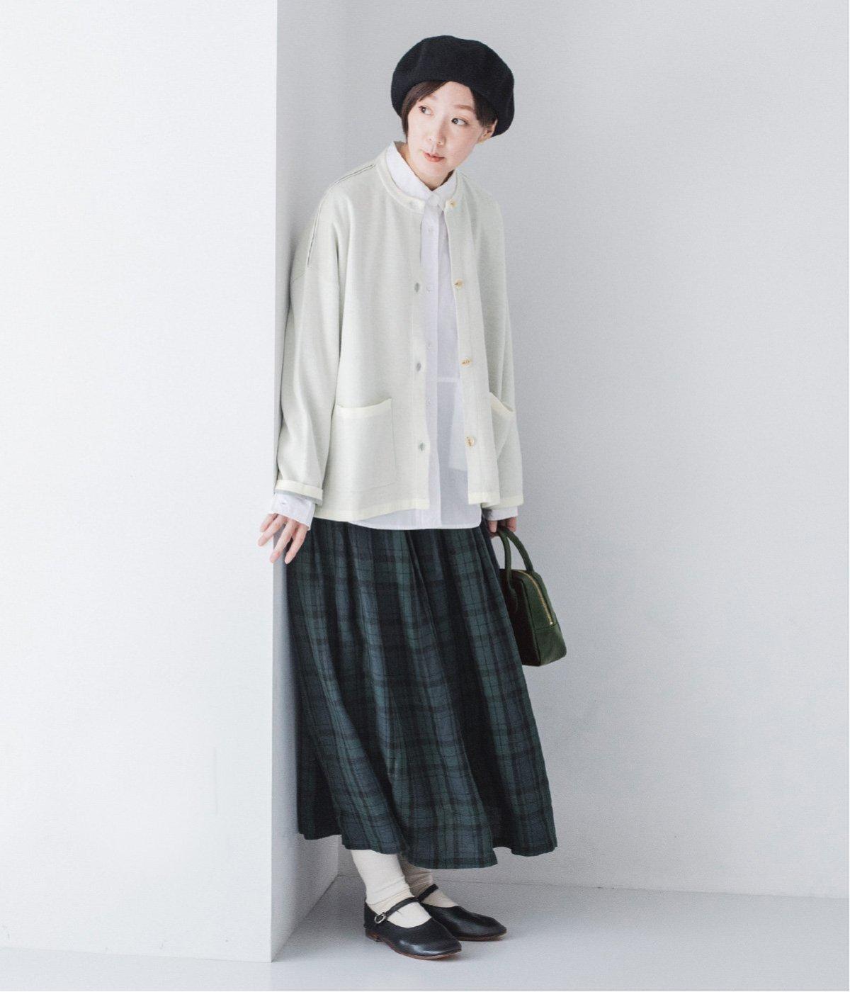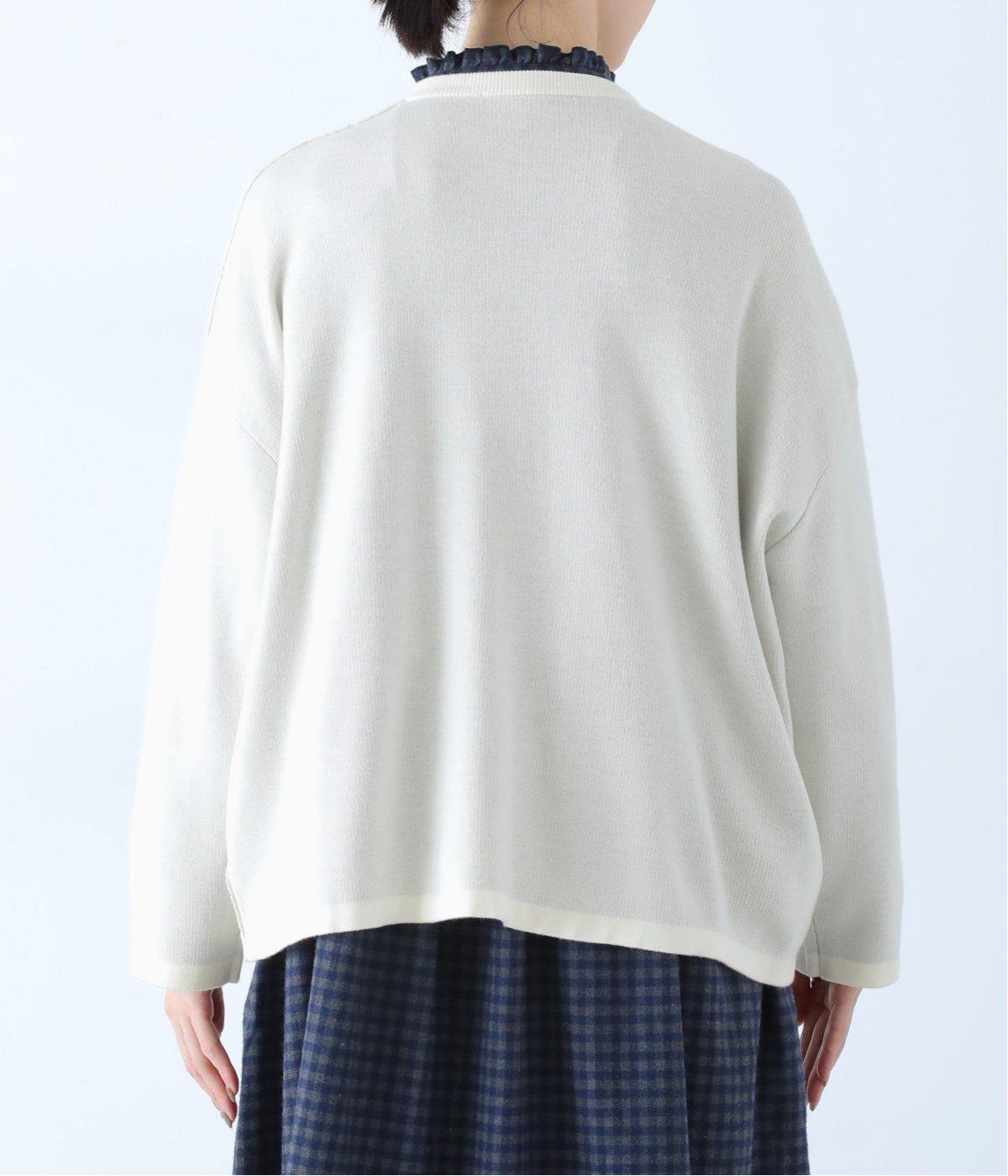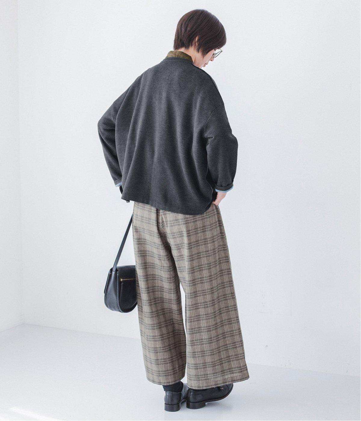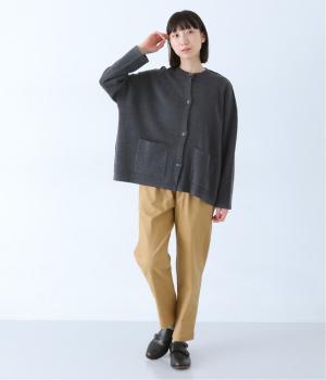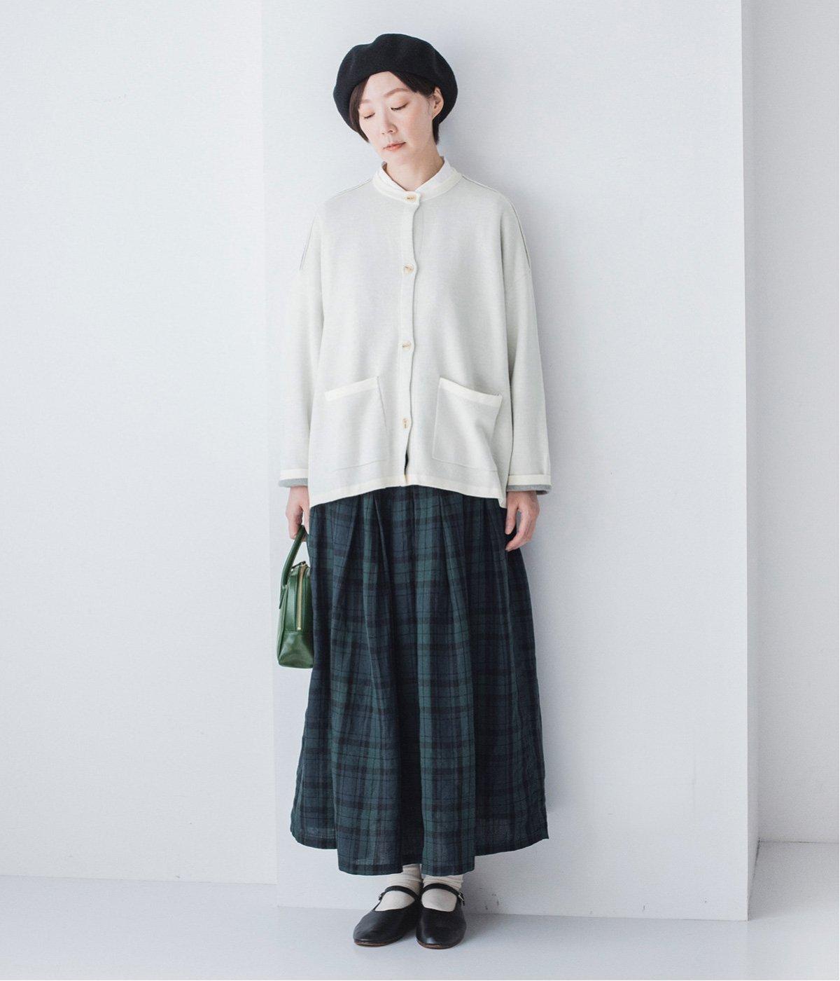 ウール混のあたたくソフトな風合いのニットを使用。チクチクしにくい混紡素材なので、素肌に触れても安心です。落ち感があるので、体のラインを拾いにくいのもうれしいポイント。
