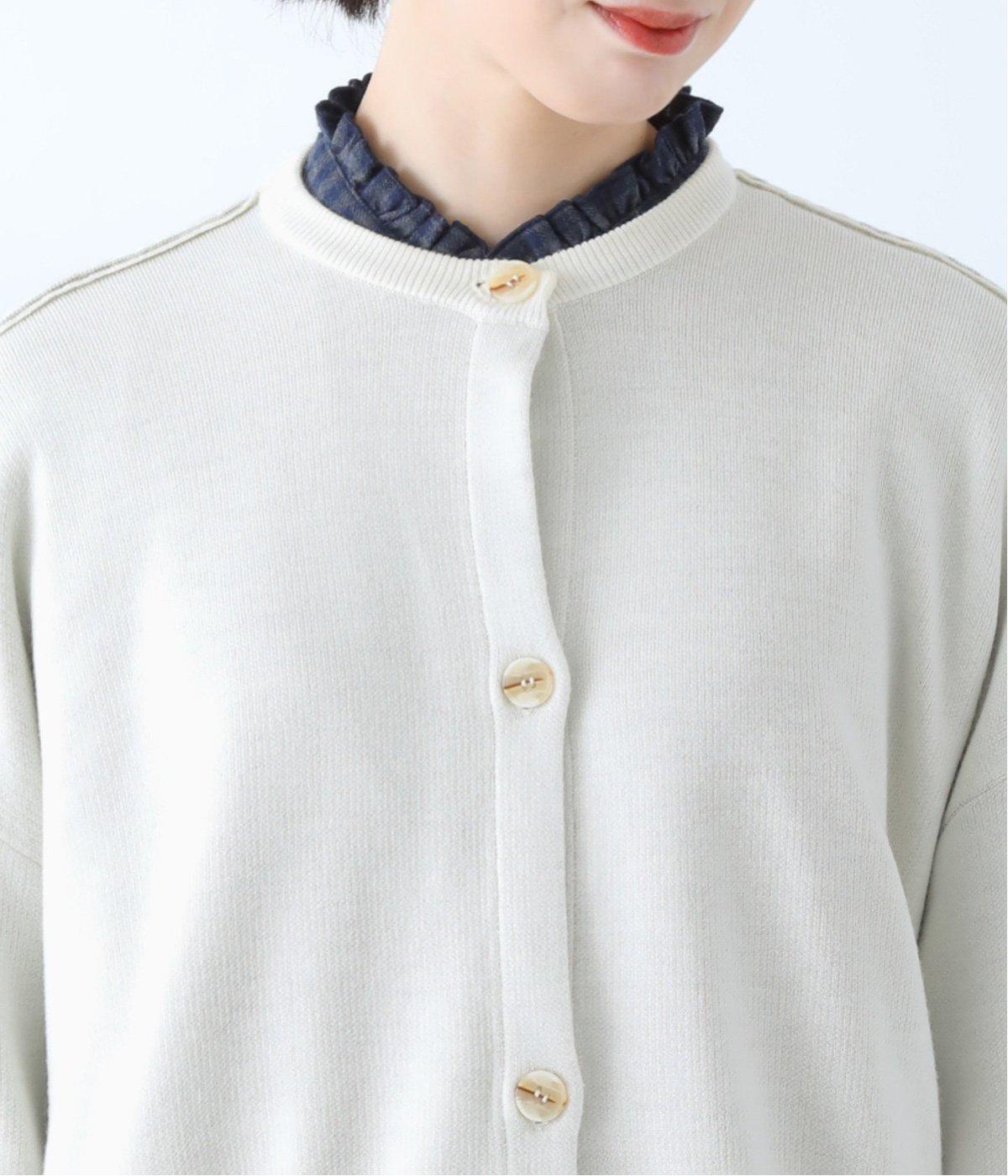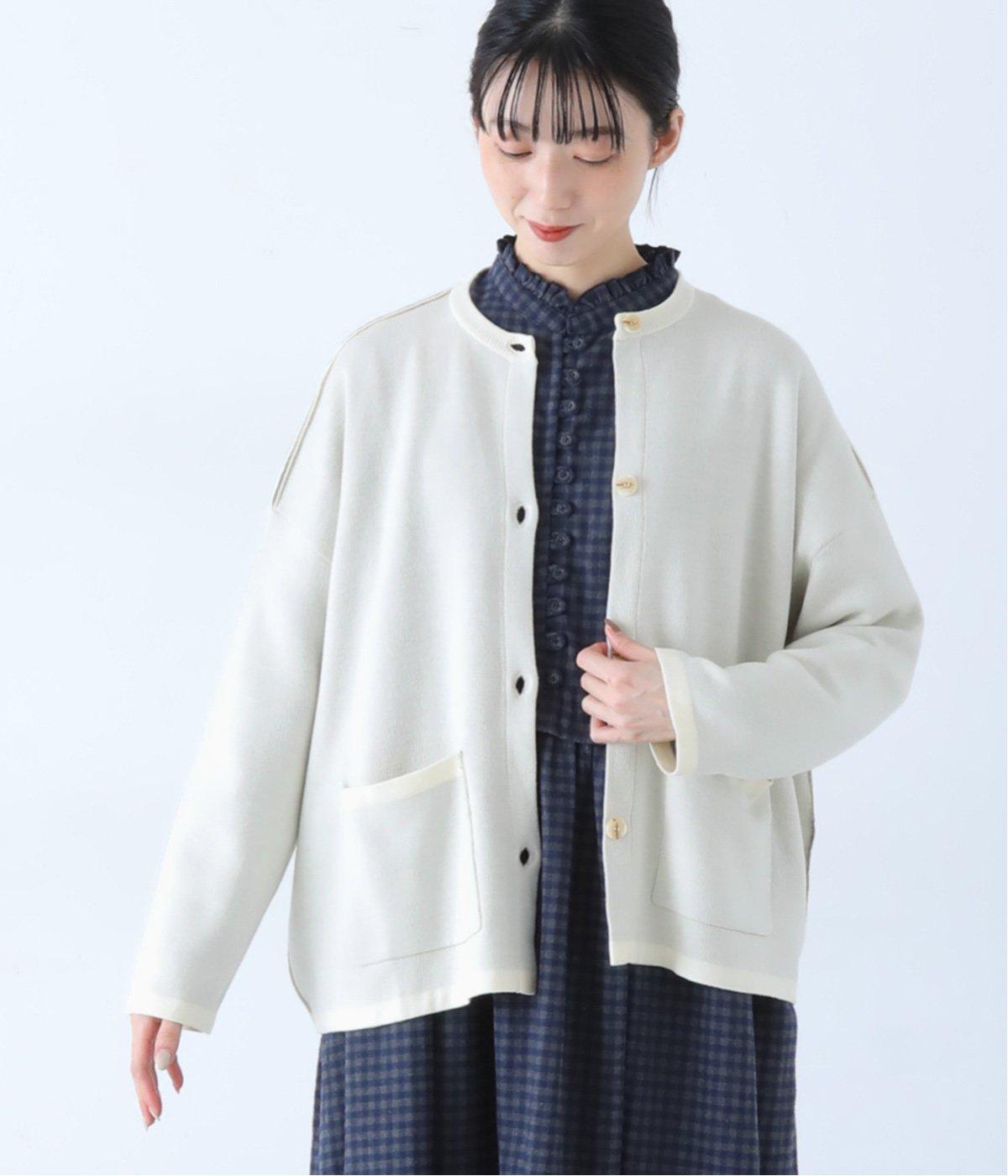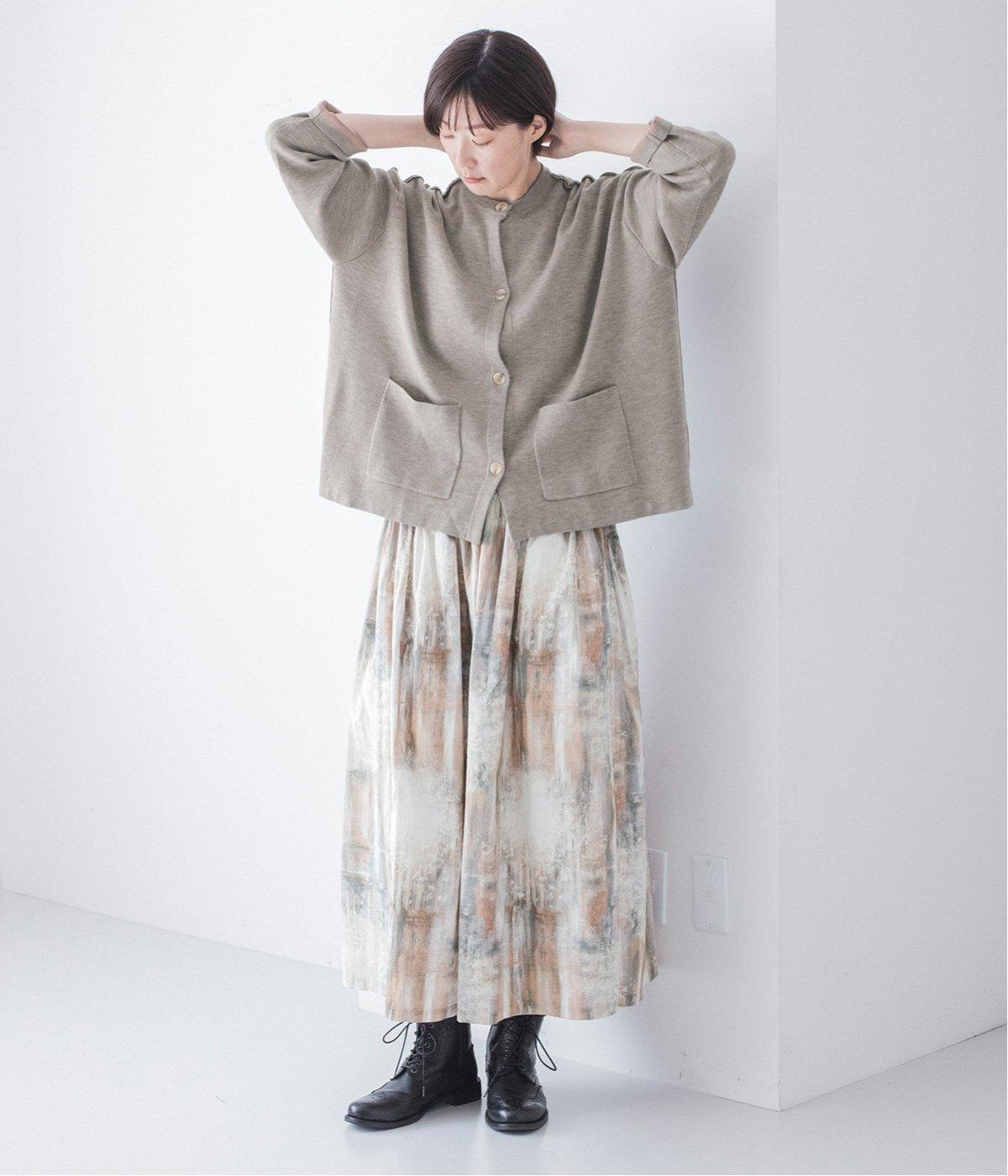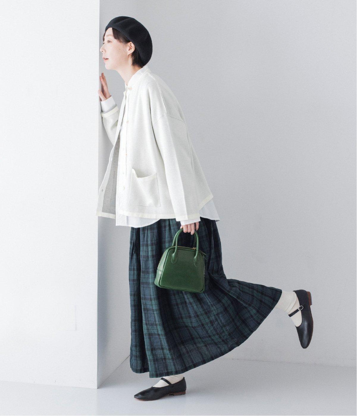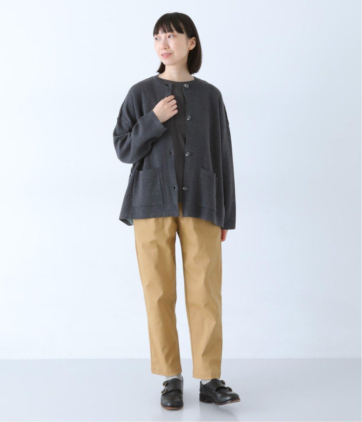 ウール混のあたたくソフトな風合いのニットを使用。チクチクしにくい混紡素材なので、素肌に触れても安心です。落ち感があるので、体のラインを拾いにくいのもうれしいポイント。